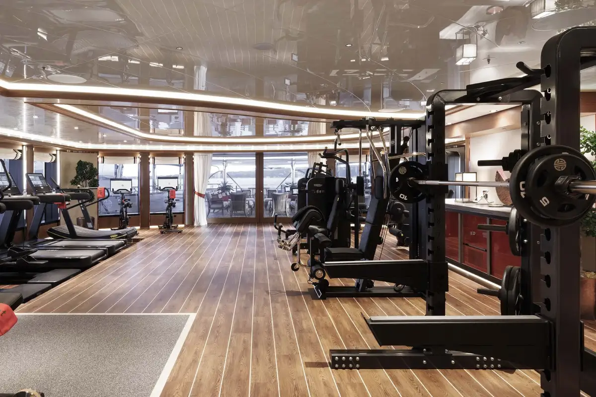 - A fully-equipped gym on the owner’s deck