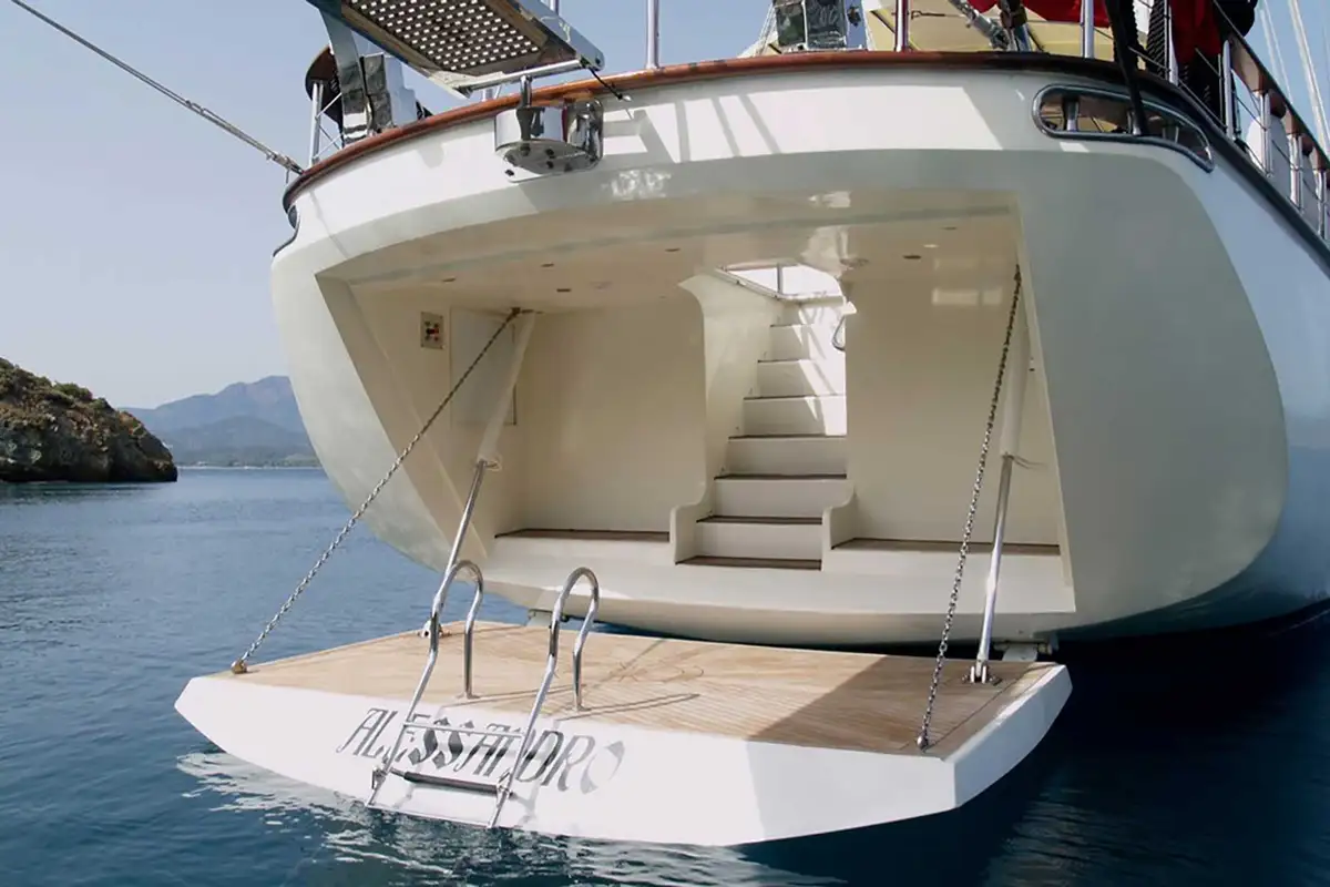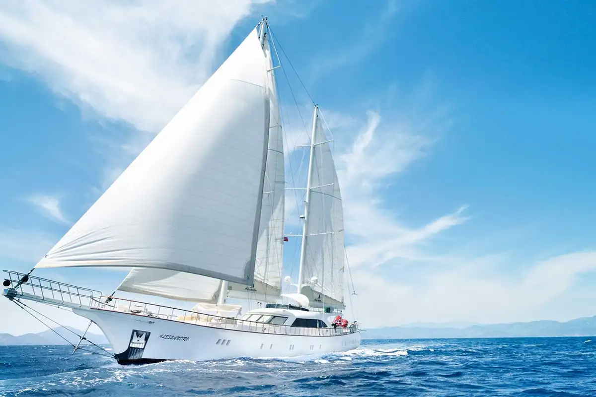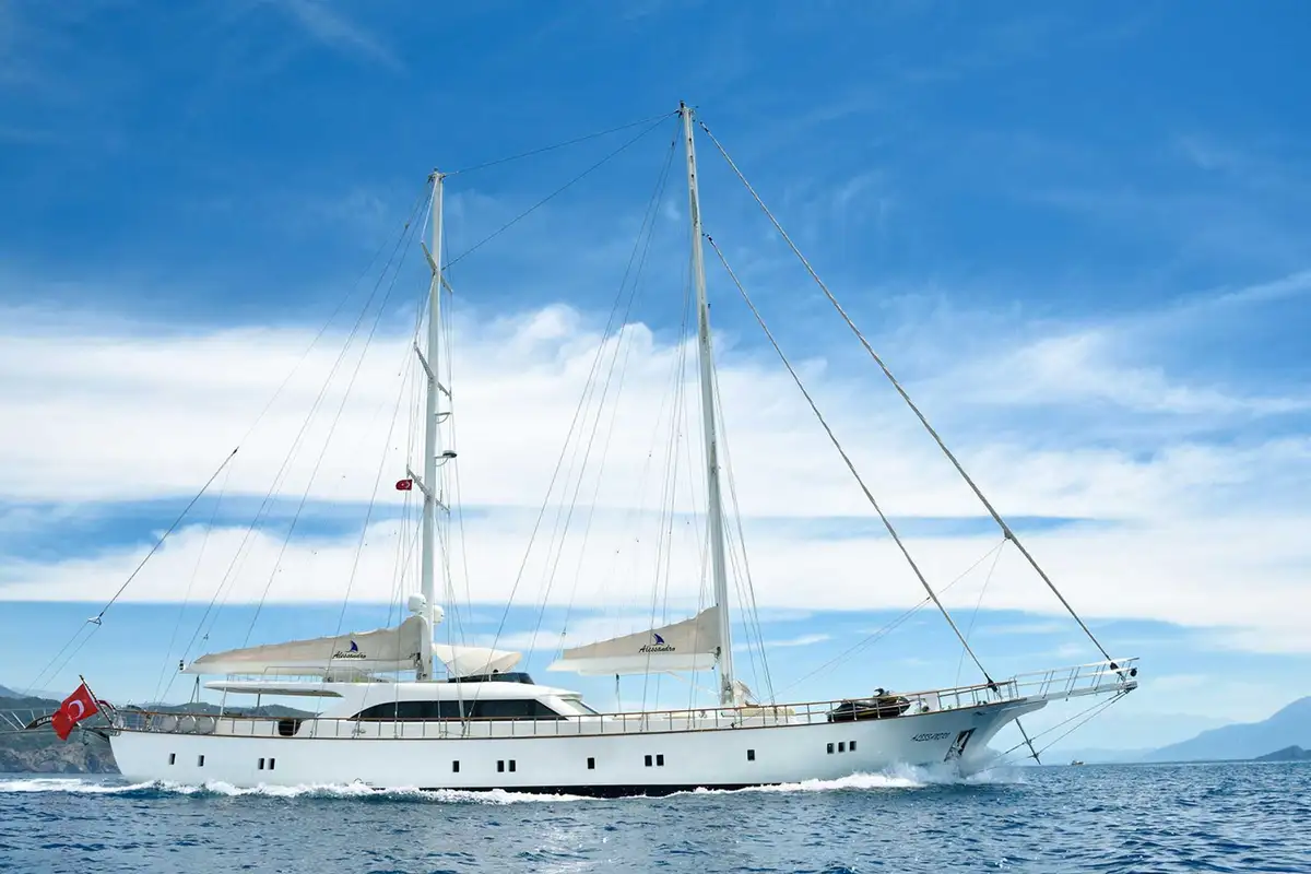 Step aboard ALESSANDRO and embark on a sailing odyssey in the Mediterranean. This 40-metre (131ft) luxury cruising ketch combines classic features and some elegant details with a notably large amount of deck space dedicated to guests and plenty of interior volume. She’s designed to host groups of up to 10 people on board in five cabins, with a crew of six at your service.