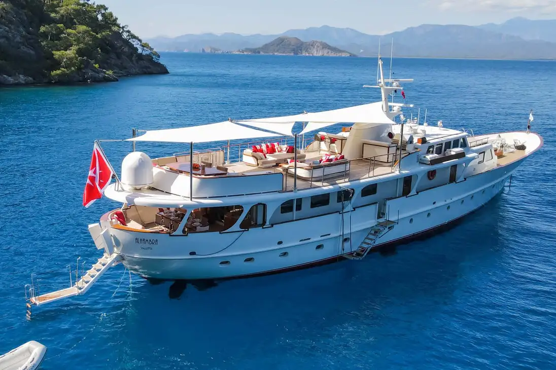 ALHAMBRA is a real treat. This 35m (116ft) yacht is a handsome classic with an aristocratic pedigree, built and finished to the highest standards with exquisite details that will add a touch of historic glamour to your yachting holiday. Brought up to contemporary standards of luxury in an extensive programme of refit works a few years ago, her gorgeous interior is a tasteful blend of modern styling and original features.