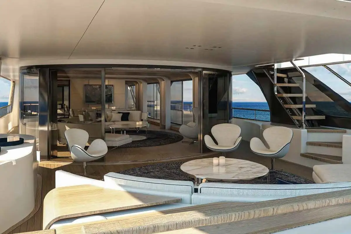 Another secluded space is found above the sun deck. ALLURIA’s observation deck rests on the hardtop above the sun deck bar and al fresco dining area. Elevated for the greatest of privacy and views, it’s a hidden retreat for mid-afternoon sun worship or midnight star gazing. There’s another large sun pad to the rear of the sun deck, where you can relax, taking in your surroundings while enjoying cocktails from the bar a few steps away.