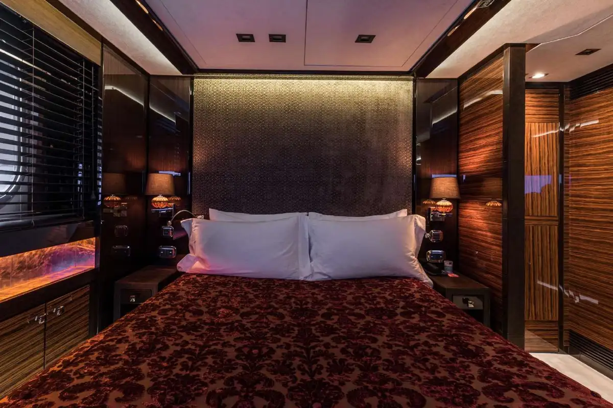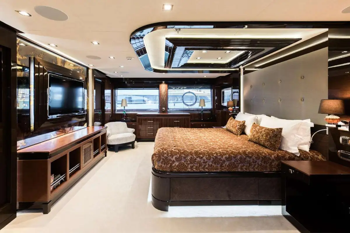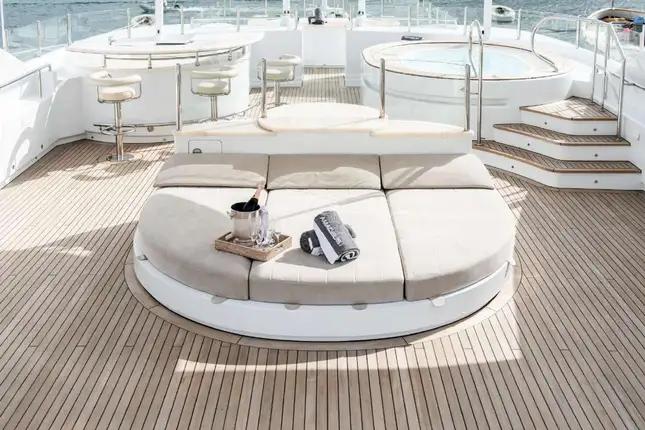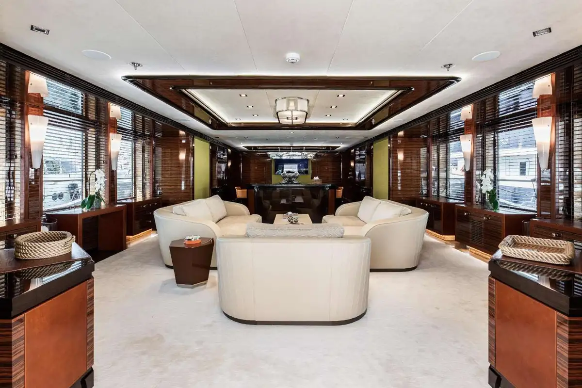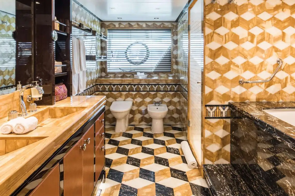 The exquisite craftsmanship is found throughout this fantastic yacht; whether it’s the geometric stonework in the en suite bathrooms or the leatherwork on desks and drawers in the gorgeous guest suites, it creates a unique and memorable backdrop for your memories.