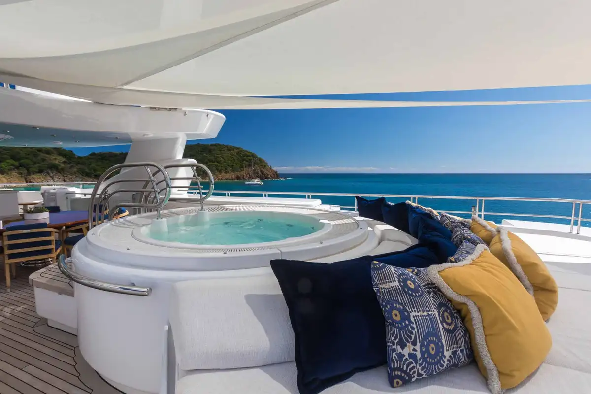 The spacious sundeck is a great outdoor social hub with dining, sitting, lounging and sunbathing zones in sun and shade plus a bar and jacuzzi, so everyone can find a perfect place to relax.