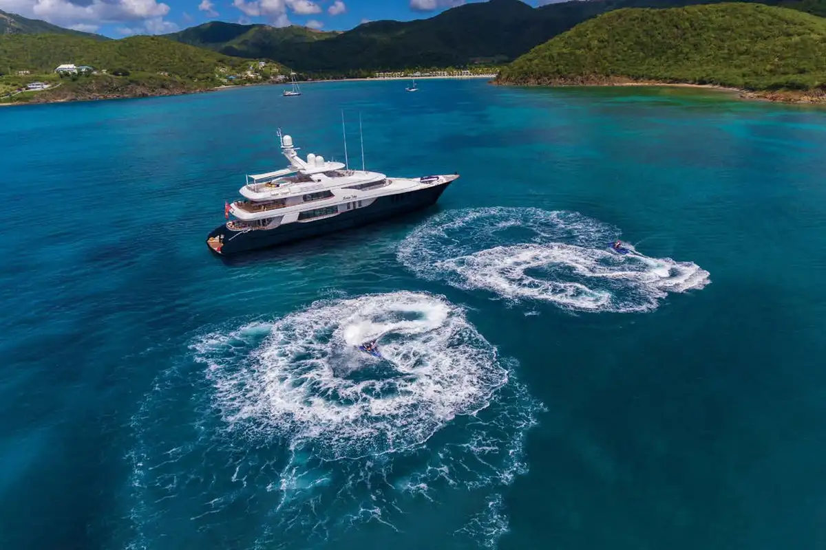 Designed for up to 11 guests in five beautifully crafted cabins, her special features include an excellent range of watersports, a skylounge movie theatre, a massage and gym room, powerful stabilisers at sea and at anchor, and a stunning contemporary interior.