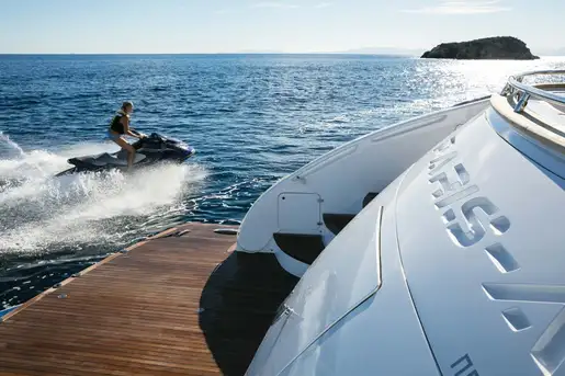 At the bow, a serene sun lounge invites quiet moments under the Mediterranean sky. And when it’s time to dive in, the large swim platform provides effortless access to turquoise waters and ANASA’s full suite of water toys.