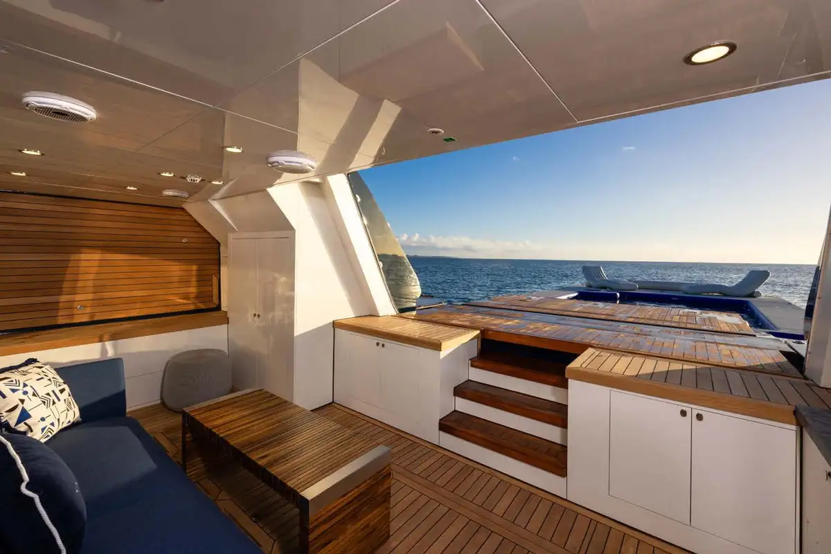 - Balconies off the main deck lounge & master cabin