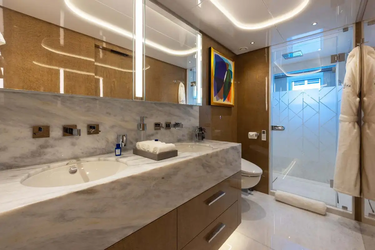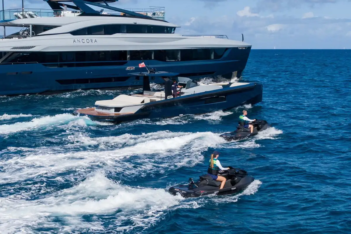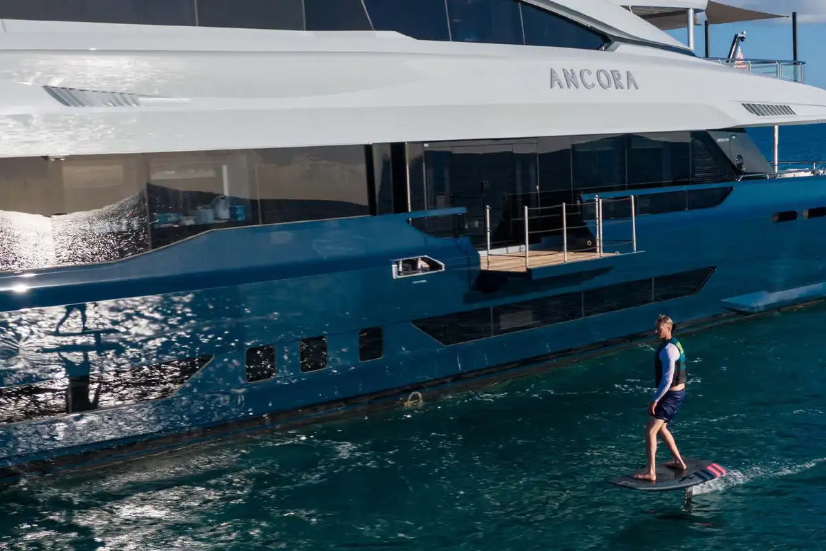 Adventure and play are central to ANCORA’s charter experience. Her toy collection includes jetskis, SeaBobs, stand up paddleboards, kayaks, snorkelling gear, and wakesurfboards, perfect for exploring turquoise bays or making the most of a sunny afternoon. A 14M Wally tender chase boat ensures sleek and stylish transfers, whether you’re heading ashore for lunch or discovering a hidden cove.