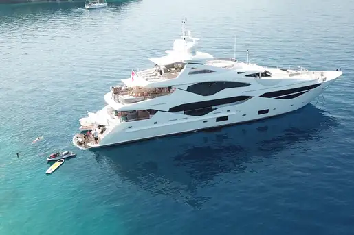 Swift and spacious with her own distinctive contemporary style, the 40-metre (131ft) AQUA LIBRA is a Sunseeker 131 – the current flagship model of the iconic British brand. She has tri-deck accommodation for up to 11 guests with very ample living space inside and out, plus the benefit of remarkable performance for a yacht of this size.