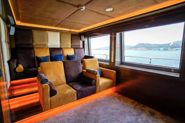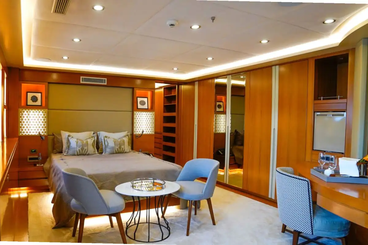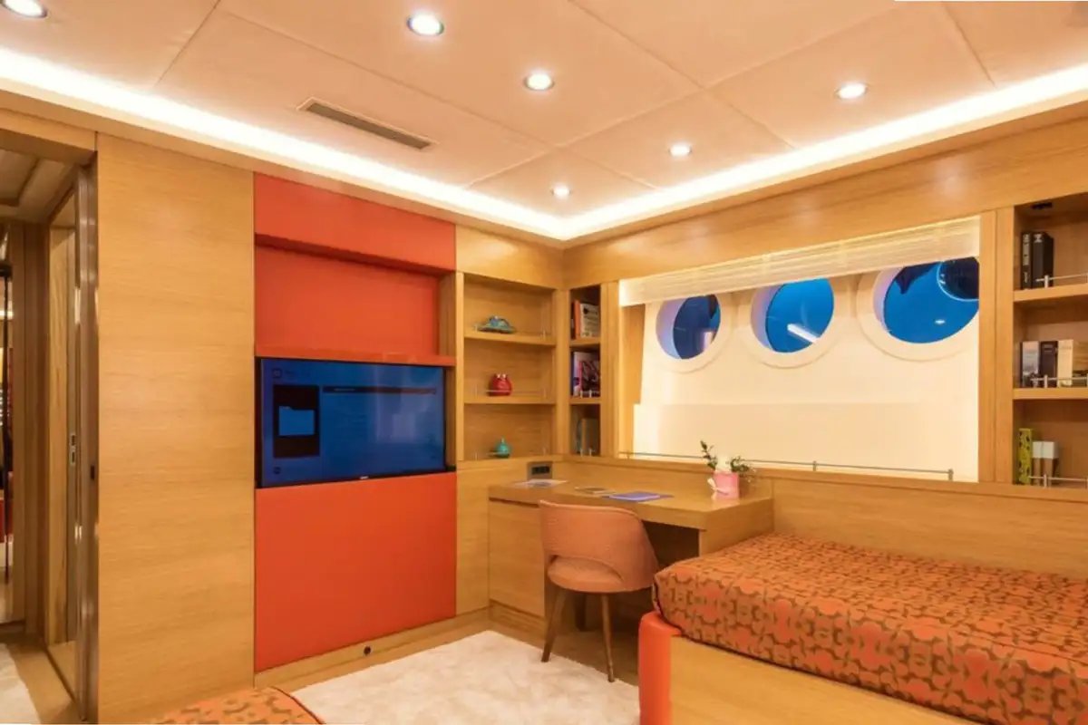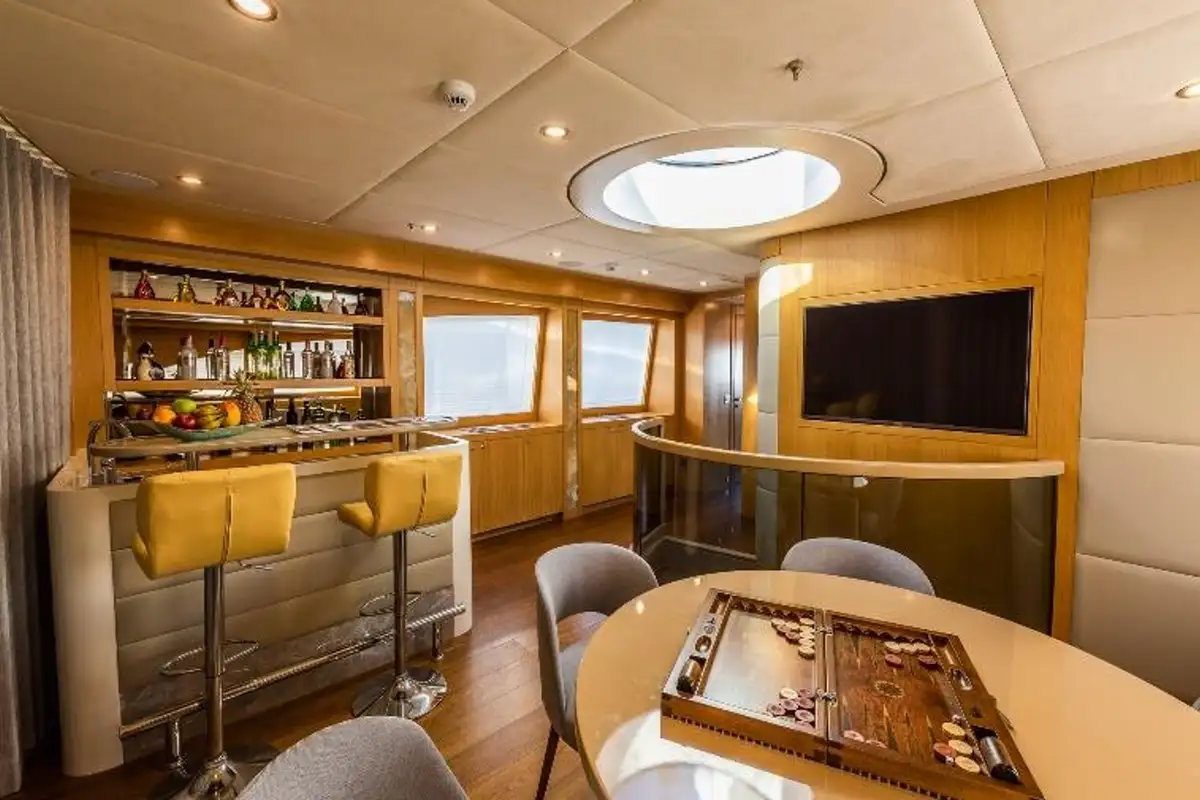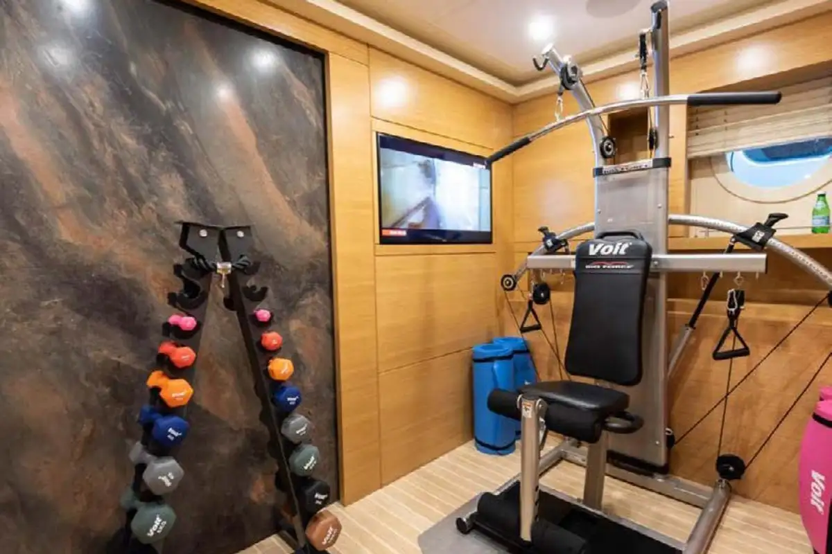 For those seeking entertainment, a private cinema invites intimate movie nights catching up on the later blockbusters, while a gym and on board spa with a sauna offer the perfect balance of wellness and indulgence.
