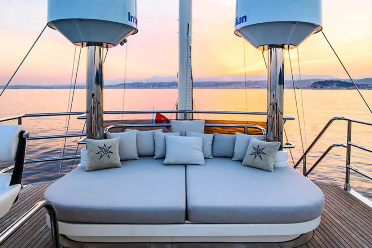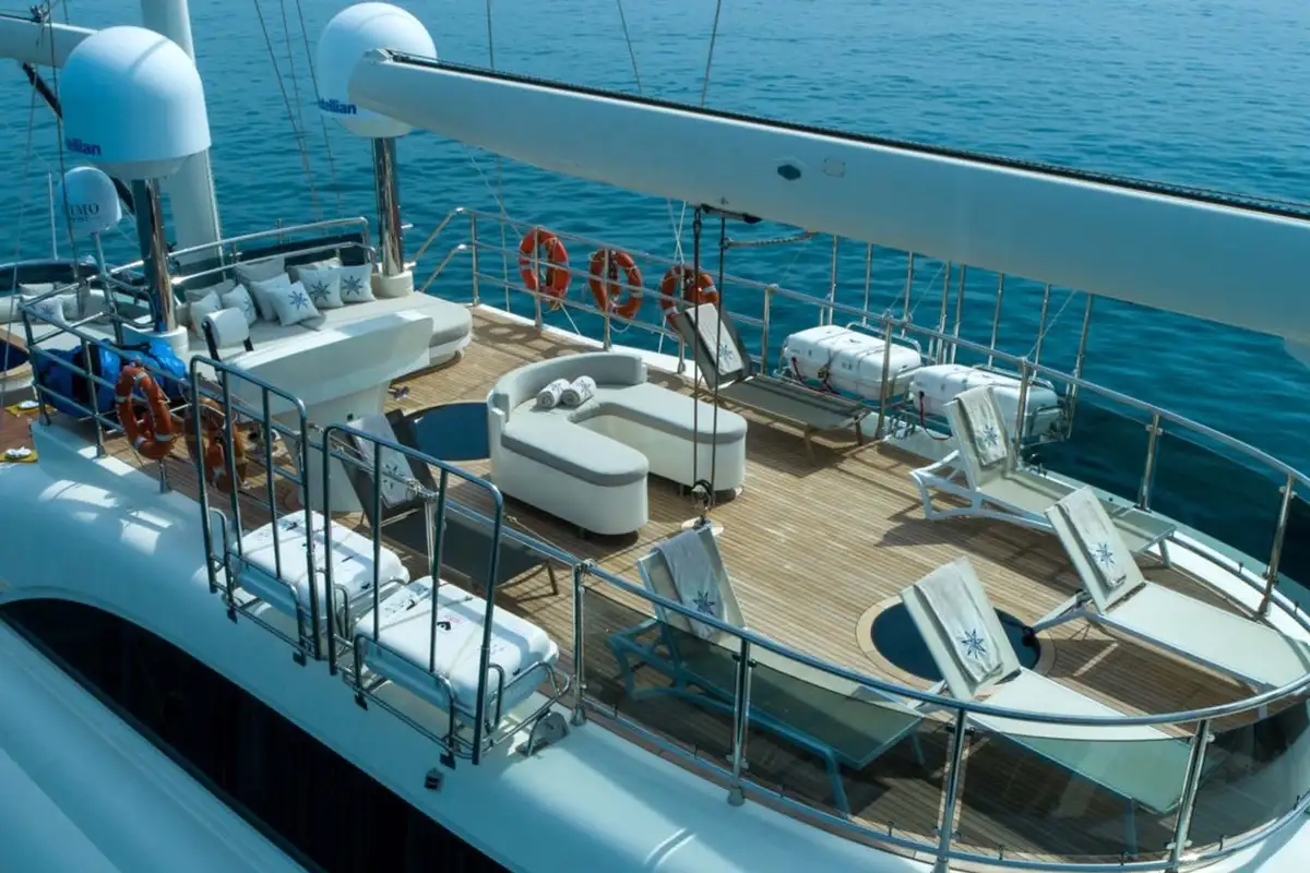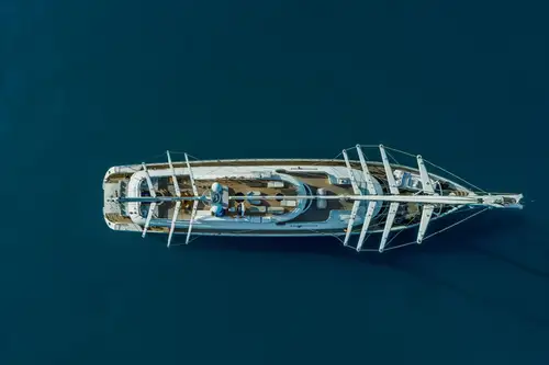 Drift effortlessly between adventure and indulgence on board the 50.8m (166.5ft) sailing yacht ARESTEAS, where timeless elegance meets modern luxury. Designed to blend the romance of sailing with the spacious comfort of a 50m motor yacht, she offers the perfect setting for an unforgettable escape with family and friends. With six beautifully appointed cabins accommodating up to 12 guests, ARESTEAS is a haven of relaxation. The full-beam owner’s suite, positioned on the main deck, commands breathtaking forward-facing views through an arc of windows. Additionally, you will find two VIP suites – each with a private lounge – along with a guest double and two twin cabins, offering unbeatable comfort for all on board.