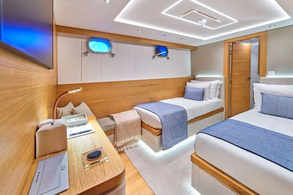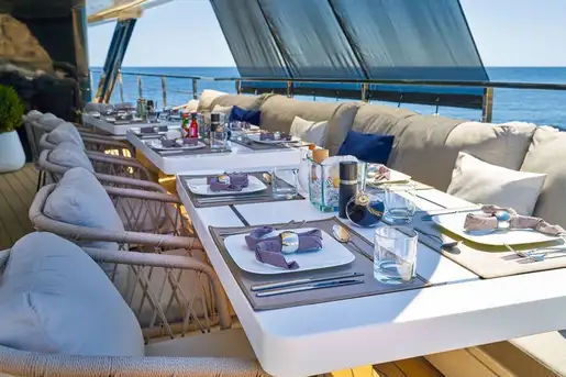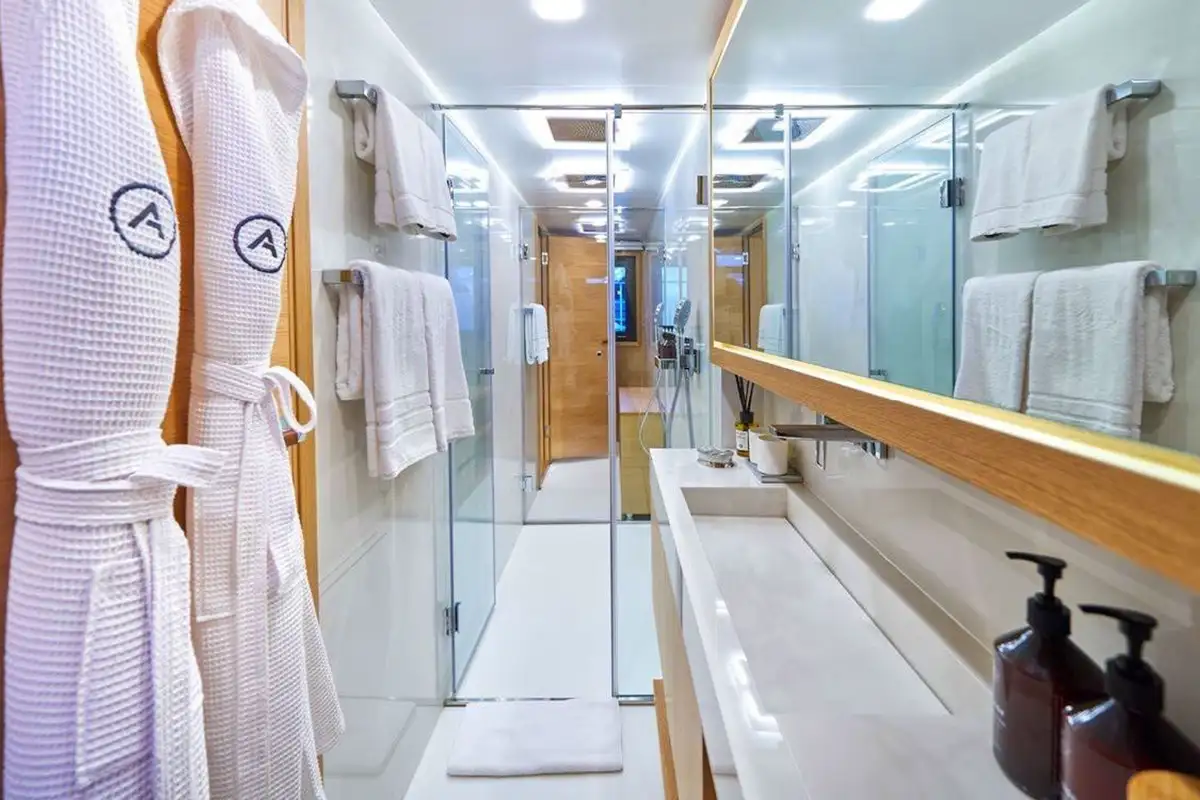 Argo’s guest accommodations are places of total privacy and for complete relaxation. She has 13 luxurious cabins, which can accommodate up to 26 guests in Master Suite, VIP Suite, 9 double and 2 twin cabins. Argo is a remarkable yacht with 15 dedicated crew members that guarantee 1st class service to the guests with complete enjoyment.