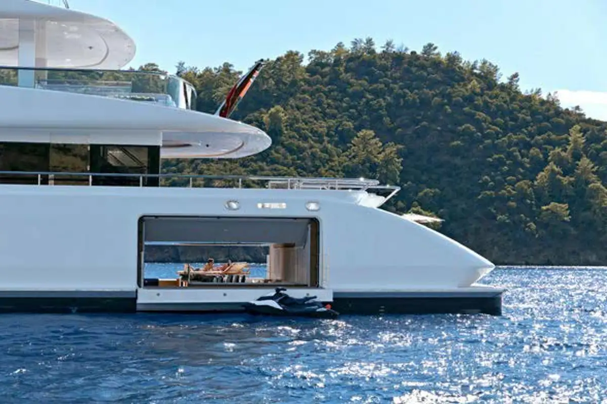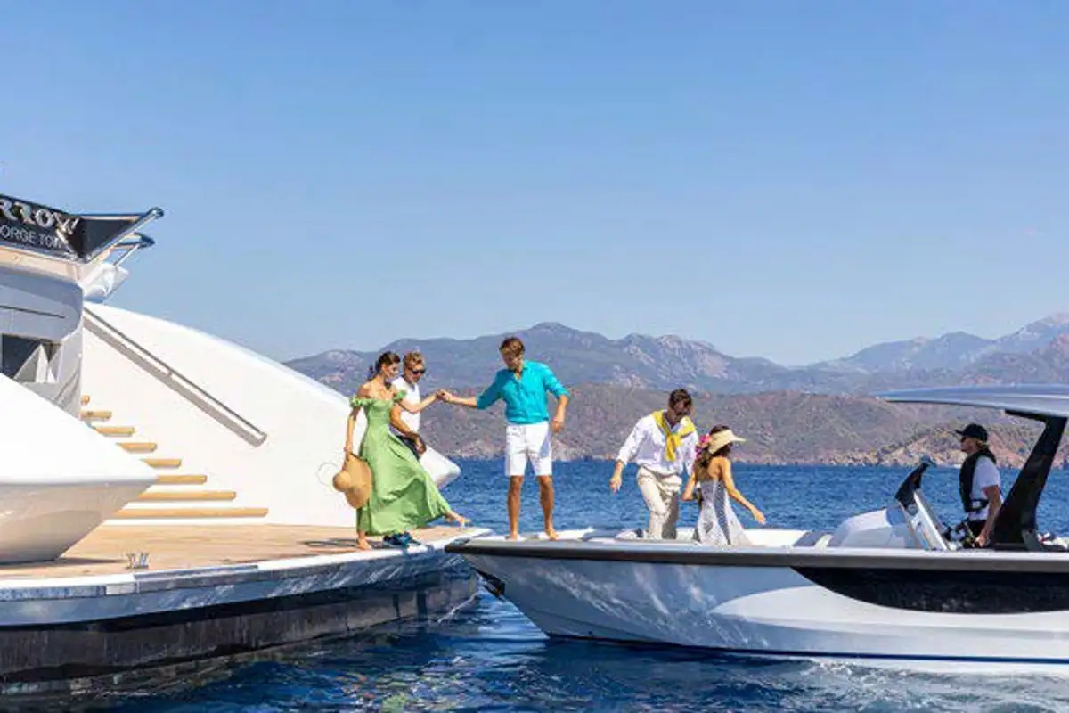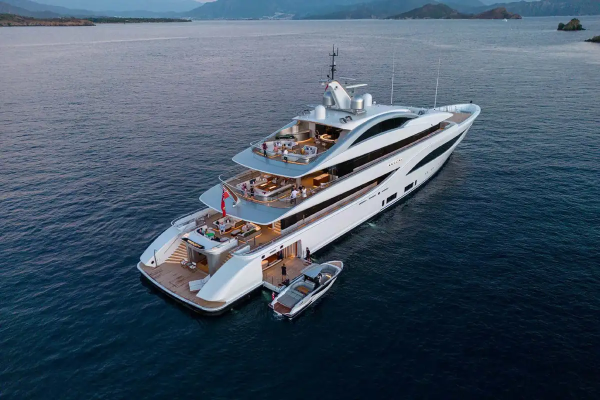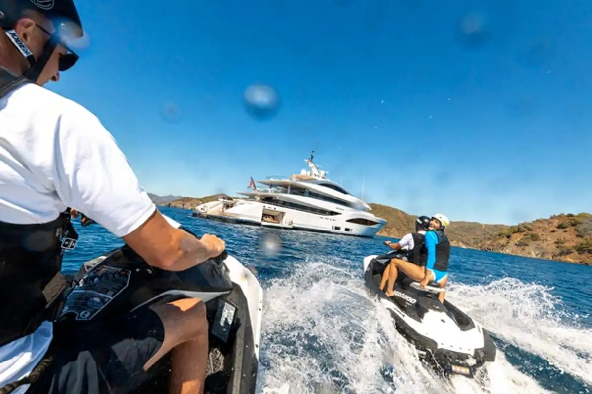 However, ARROW yacht’s standout feature is surely her full-beam beach club, which transforms into a sea-level evening entertaining lounge. There’s a bar, lots of seating and access to the massage room and steam shower. And, of course, during the day this is the hub of activity for guests who want to try out the plethora of water toys or hop aboard one of three tenders. Guests on an ARROW yacht charter can expect the highest levels of quality and service, while a glass elevator from the lower deck to the bridge deck makes it an ideal base for multigenerational charters. With stabilisers at anchor and underway, ARROW yacht assures a smooth charter and your guests will want for nothing.