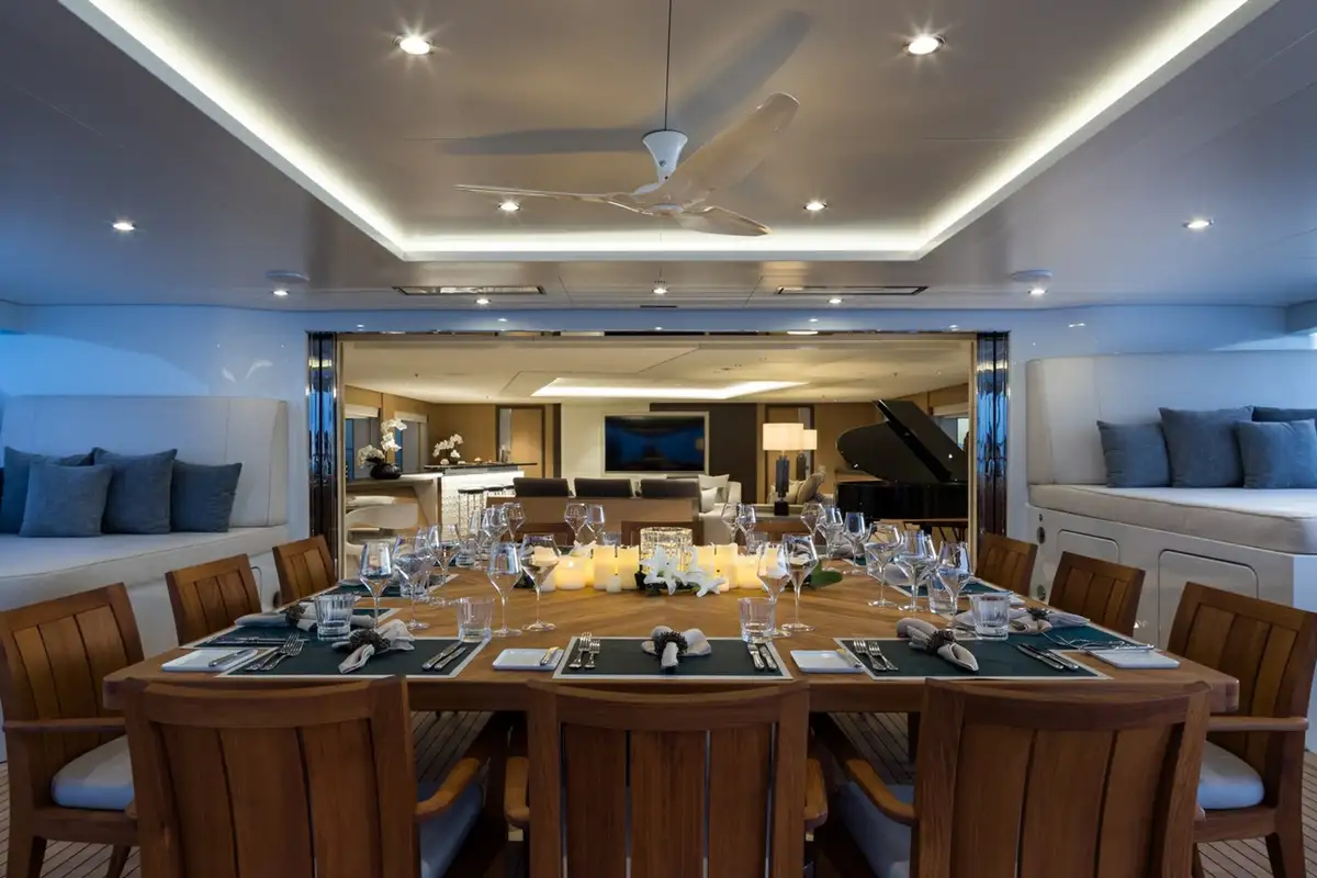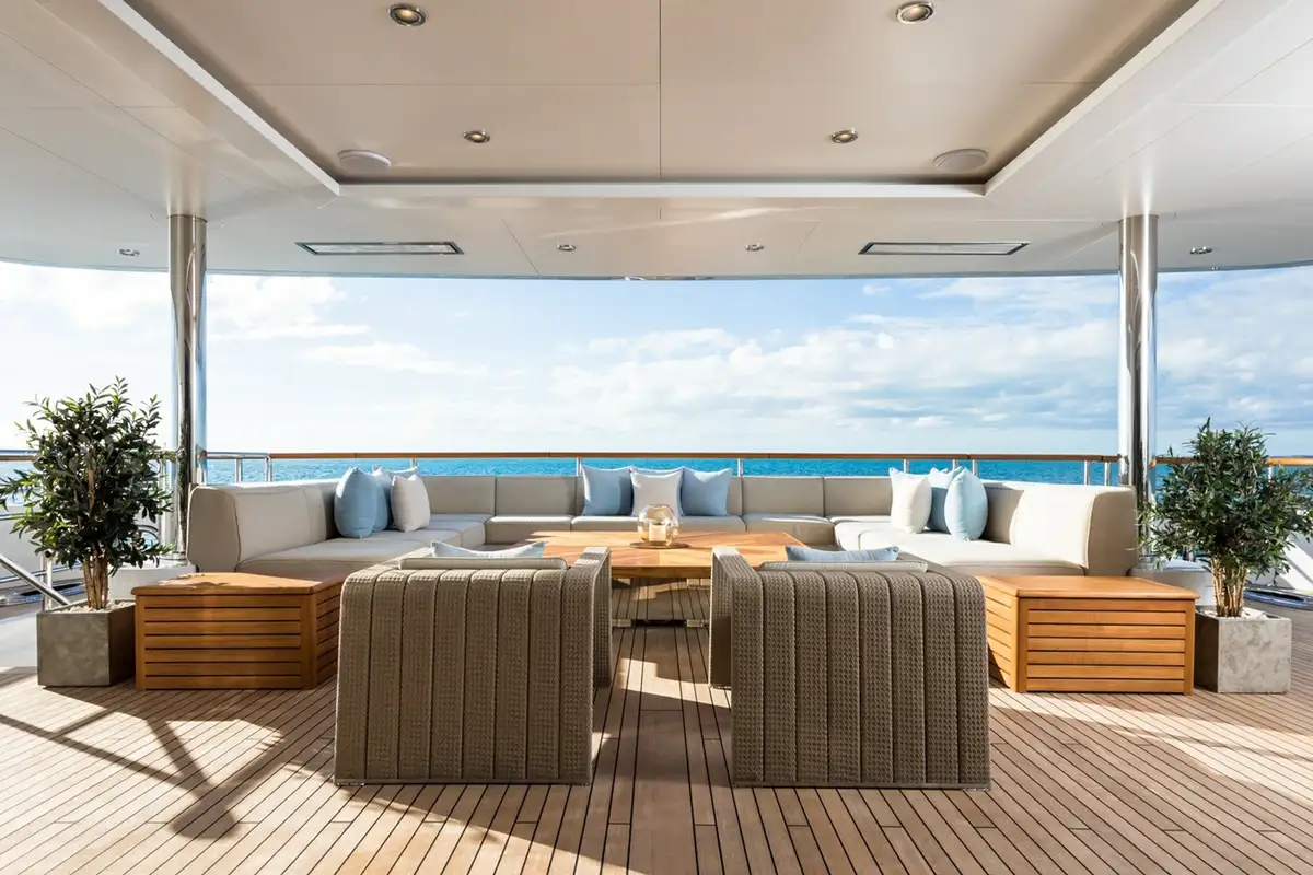 ARTISAN has glorious outside spaces too. The aft bridge deck is 14m-long with a bar and spa pool, spacious sunpads and more. One level down, there’s a powerful heating system on the upper aft deck to ensure you can always dine and lounge outside in comfort, at any time of year.
