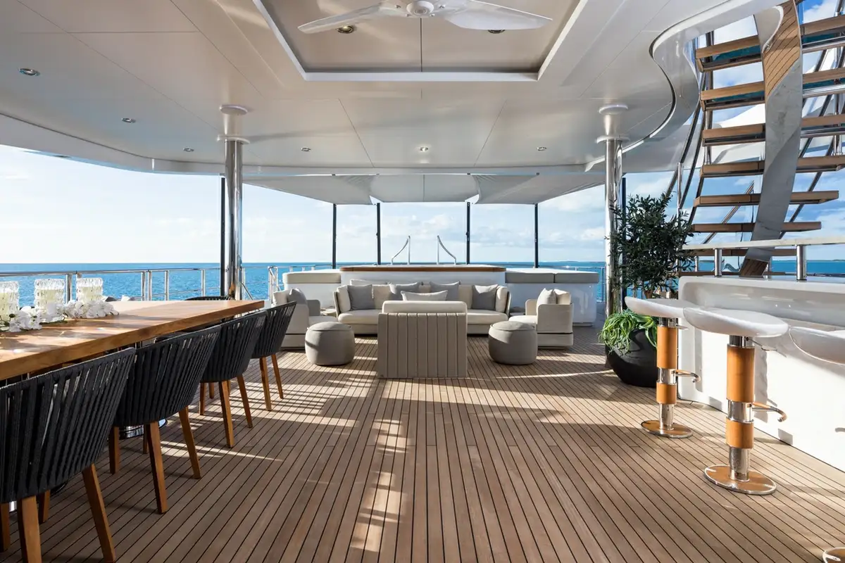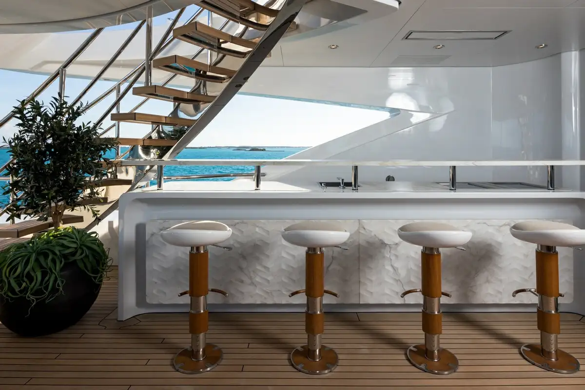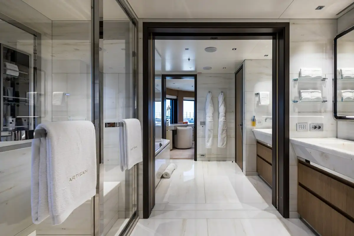 At 63m (207ft) with five decks including a top level gym and yoga deck perched high above the sundeck, ARTISAN is one of the largest yachts built by the Benetti shipyard – arguably Italy’s finest shipyard – with elegant full custom exterior lines drawn by Giorgio Cassetta. Truly unique, she is likely to turn heads in any harbour you might choose to grace with her presence.