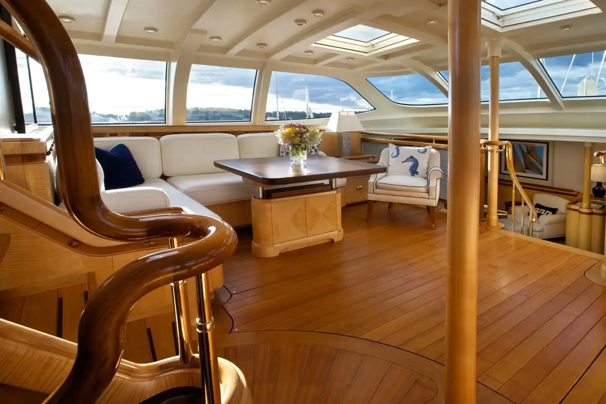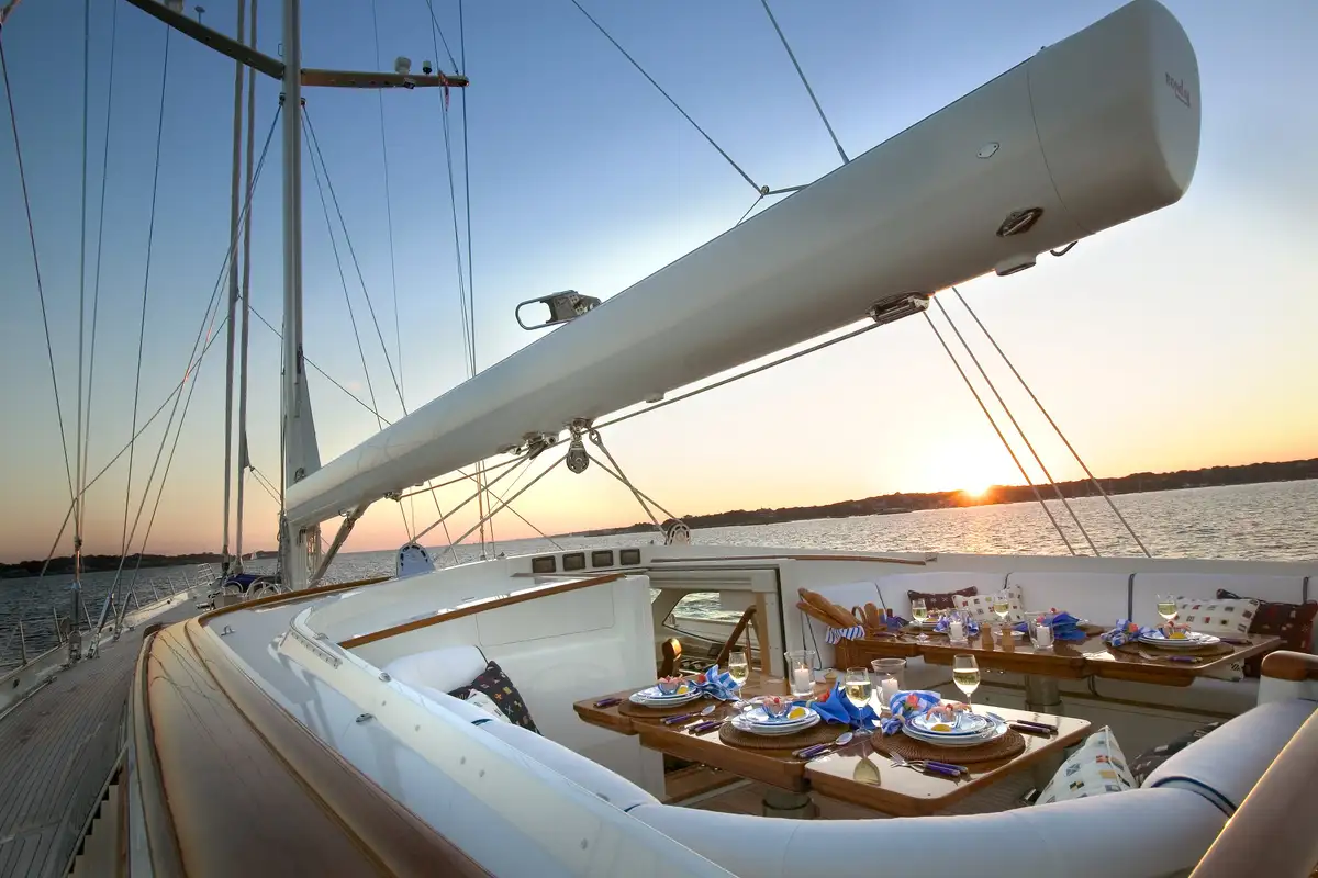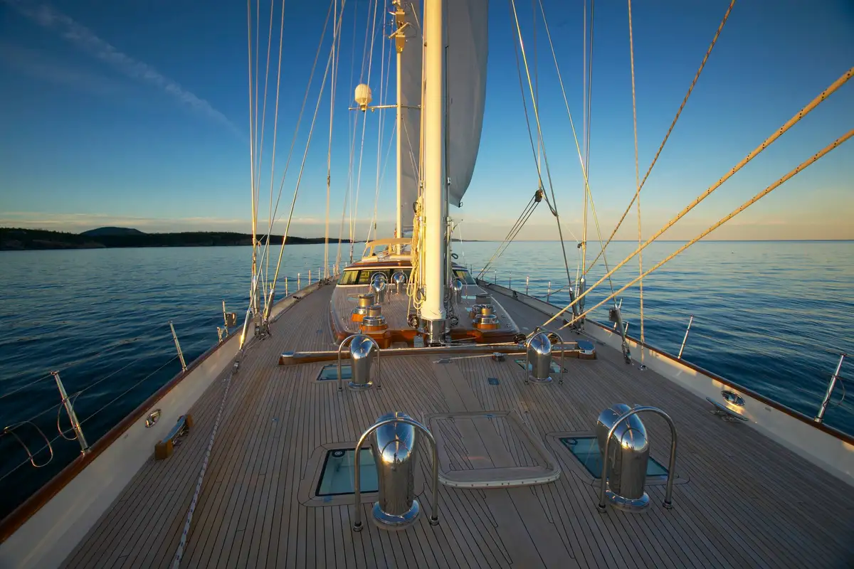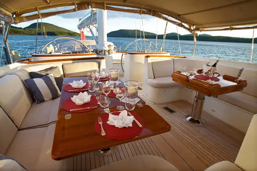 Step out on deck into the spacious guest lounge for an al fresco breakfast as you enjoy the warm, balmy breeze and then gather around a table to plan the day’s cruising with the skipper. Sailing enthusiasts will relish taking the helm of this thoroughbred yacht and revel in her sparkling performance with an expert crew on hand, while non-sailing guests relax in the safe, comfortable deck lounge and take in the view, lounge on cushions the huge foredeck, or try their hand at fishing.