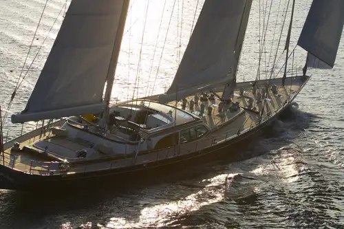 Back on board, it’s time to set sail again and point her beautiful bow towards this evening’s destination and enjoy the unique sensations of a sail-powered superyacht. As the sun slides over the yard arm, the anchor goes down and the evening starts with a cocktail. There’s a hi-spec AV system on board, of course, or you could just watch the sunset.