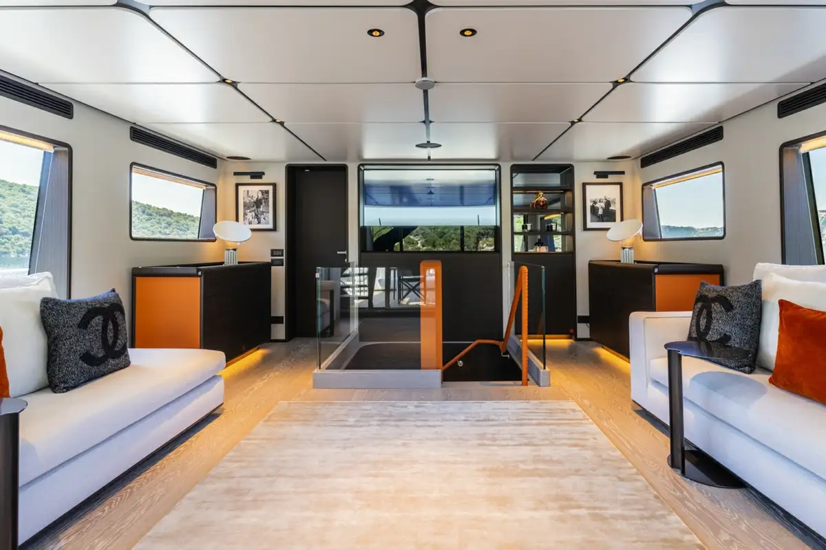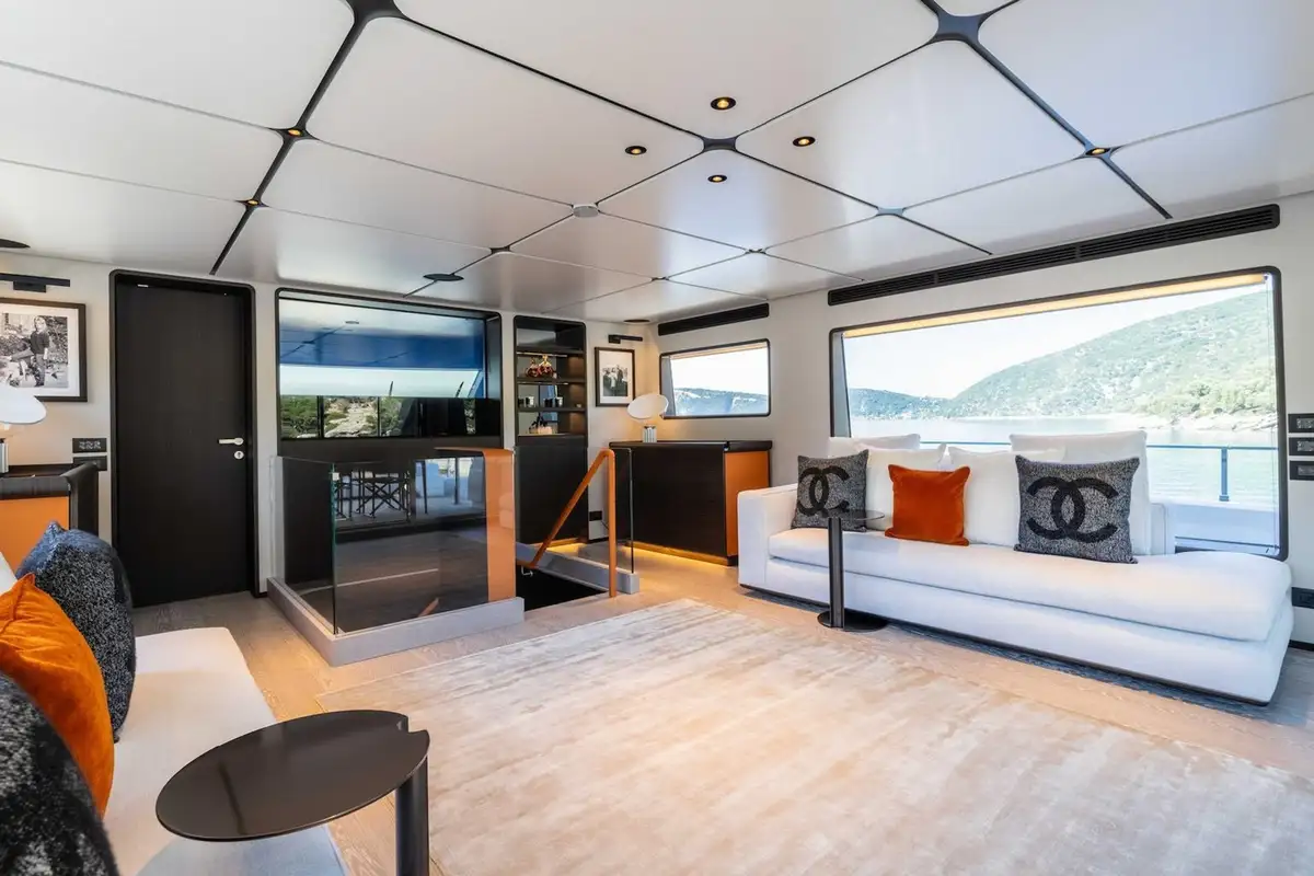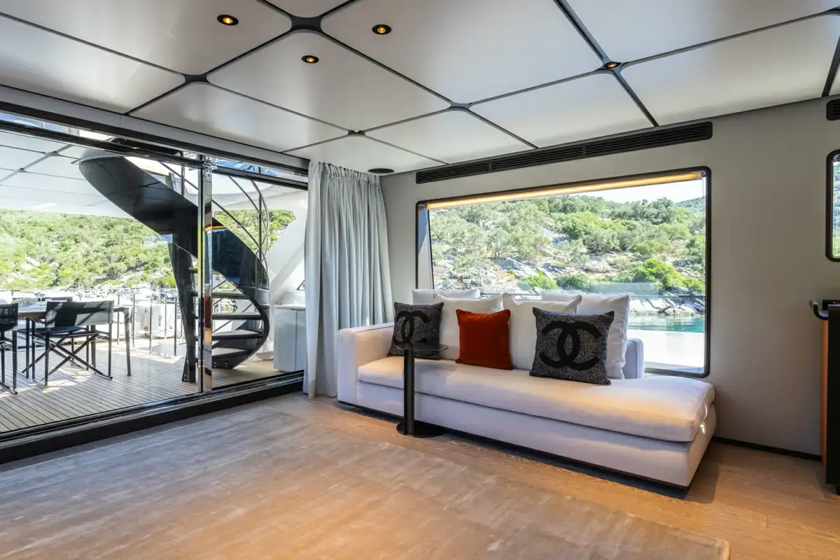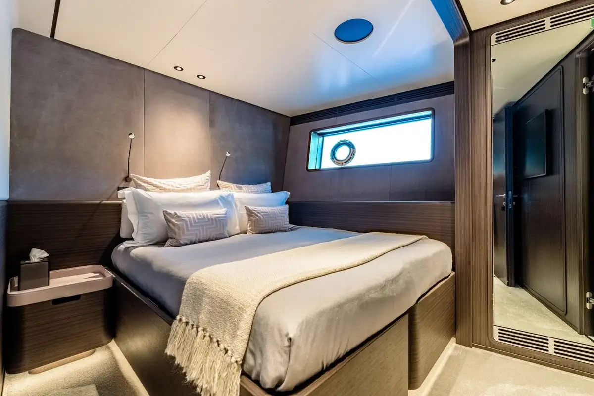 Launched in 2024, AT ONE is as impressive as she is functional. The largest volume yacht for her size to date, she boats a tri-deck structure, accommodating up to 10 guests in five spacious cabins, with spacious shared deck and interior spaces to make her seem even more luxurious than she already is.