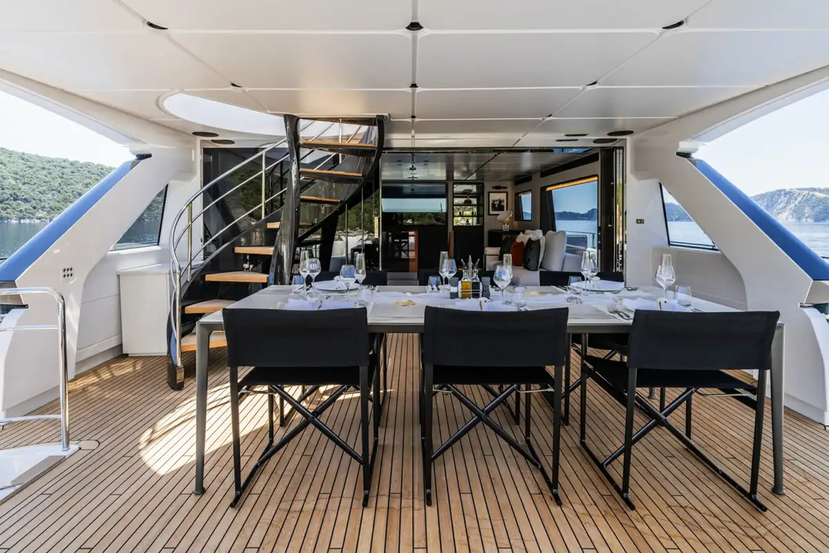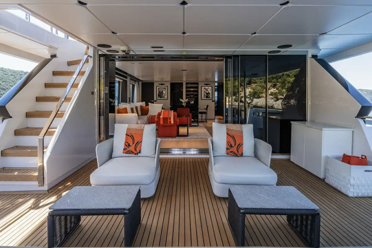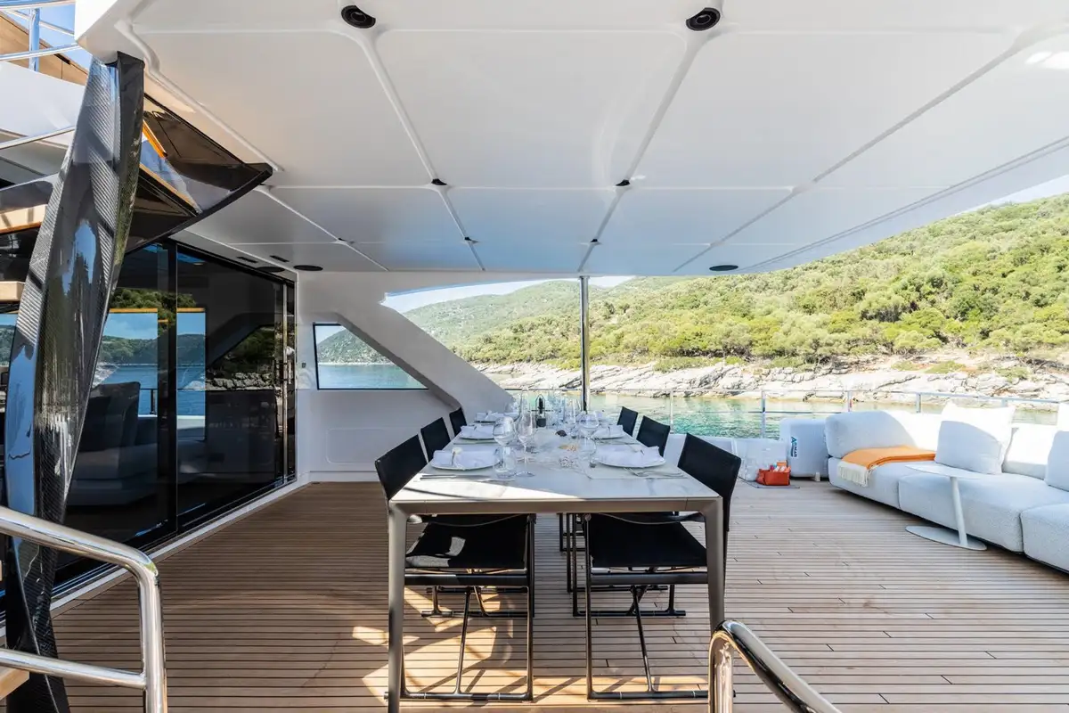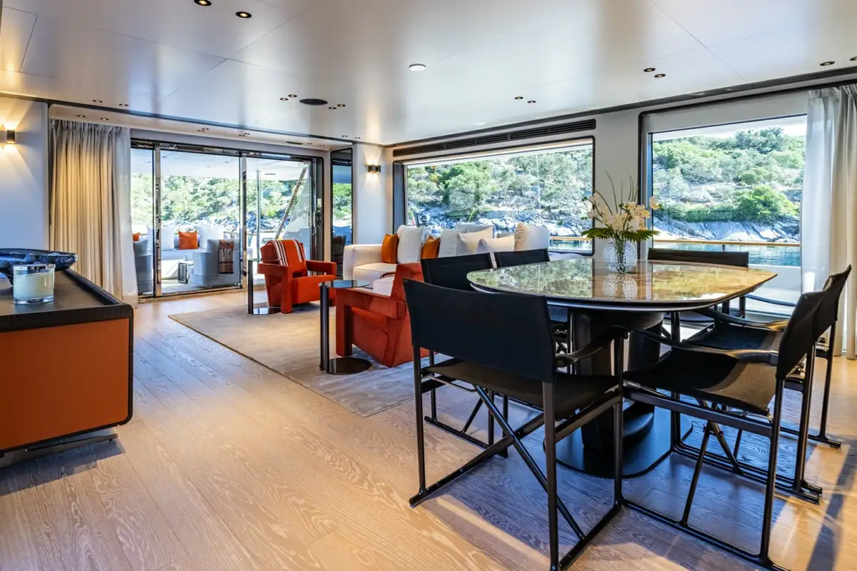 Launched in 2024, AT ONE is as impressive as she is functional. The largest volume yacht for her size to date, she boats a tri-deck structure, accommodating up to 10 guests in five spacious cabins, with spacious shared deck and interior spaces to make her seem even more luxurious than she already is.