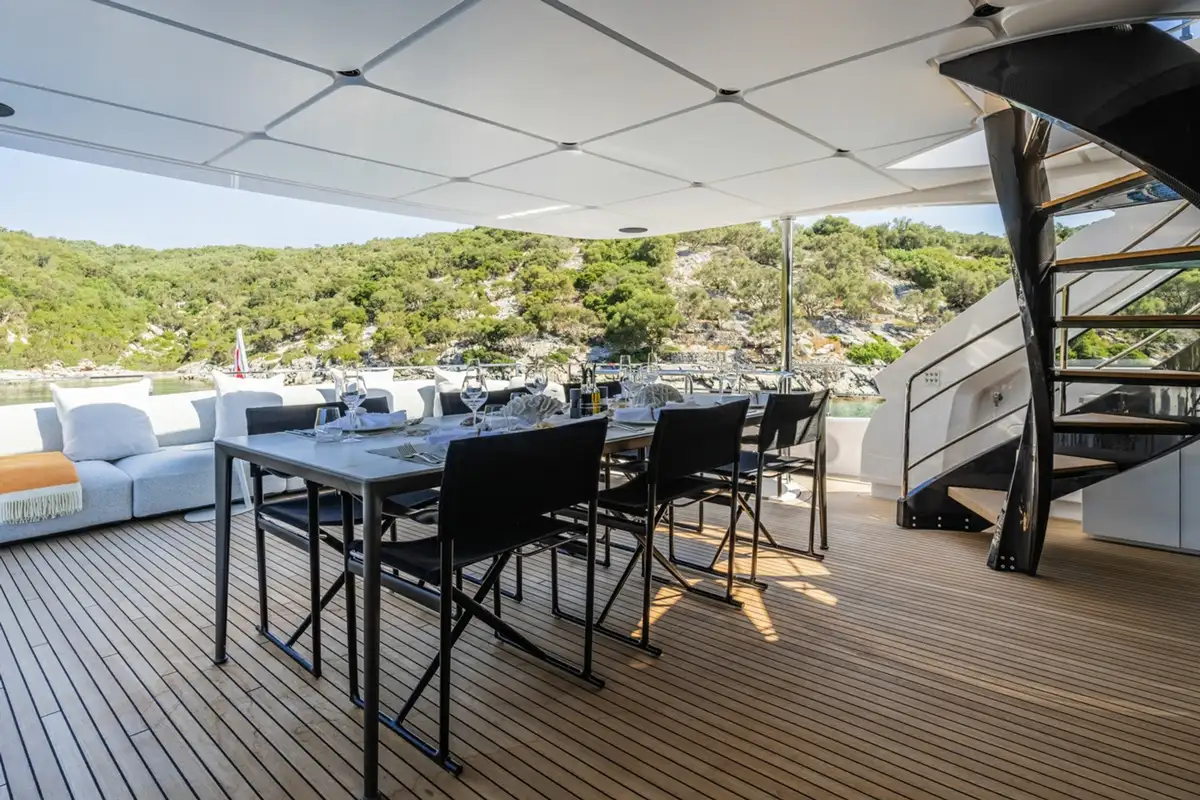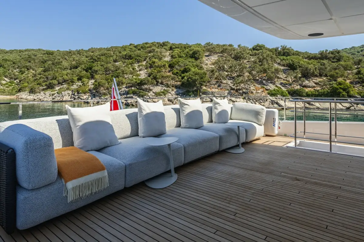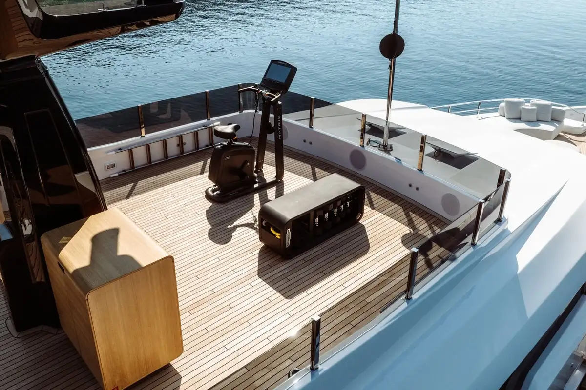 AT ONE has everything to offer when it comes to her outdoor spaces. Awaiting you is a sun deck designed for outdoor workouts and sunbathing, an upper deck for al fresco dining and relaxation, a main deck for shaded and private seclusion, and a swim platform ready to be transformed into a floating beach club paradise. For those unmissable sunsets, head to the foredeck and enjoy the expansive view from the comfort of cosy, plush couches.