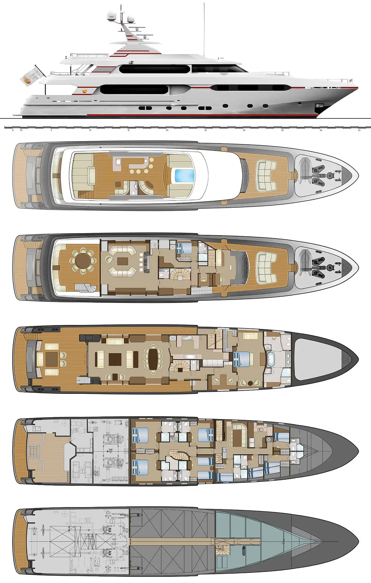 - Zero speed stabilisers to reduce rolling motion while at anchor