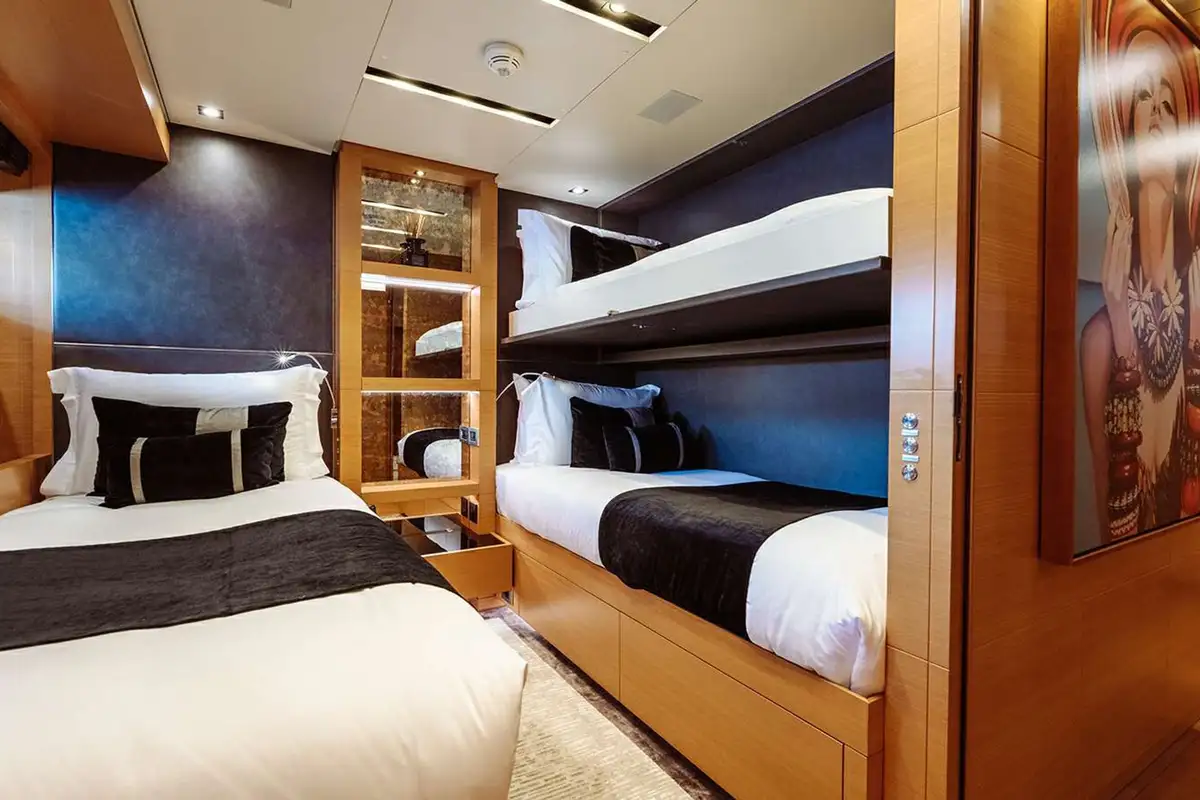 Built by Italian yard Sanlorenzo in 2009, and fresh from a refit in 2023, AWAY has accommodation for twelve with a large master suite, one VIP cabin, two double cabins and two twin cabins with pullmans.