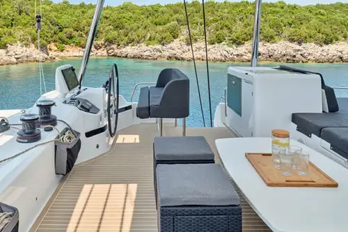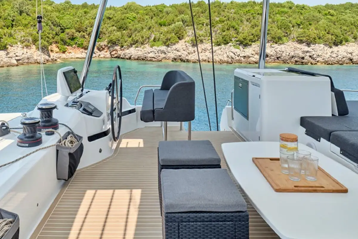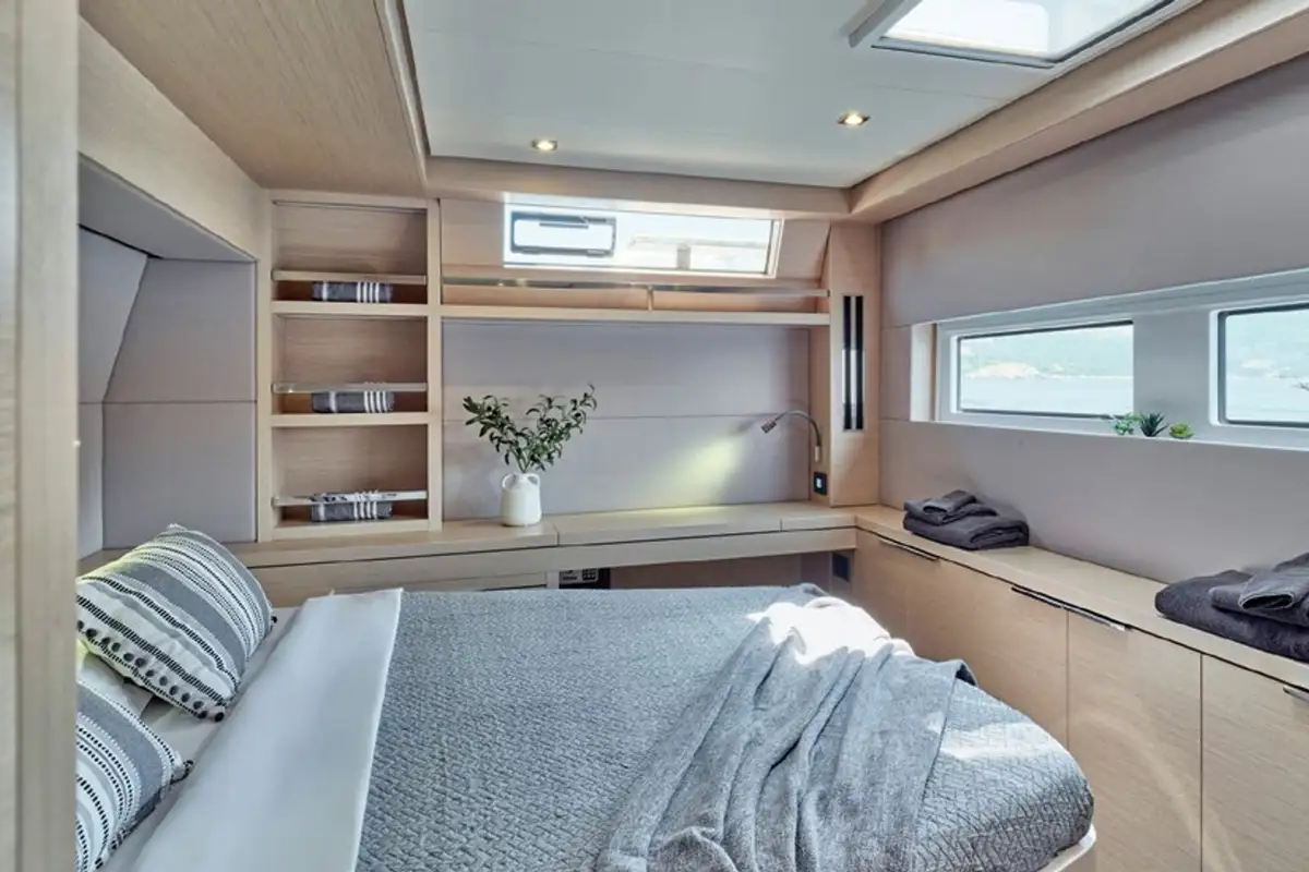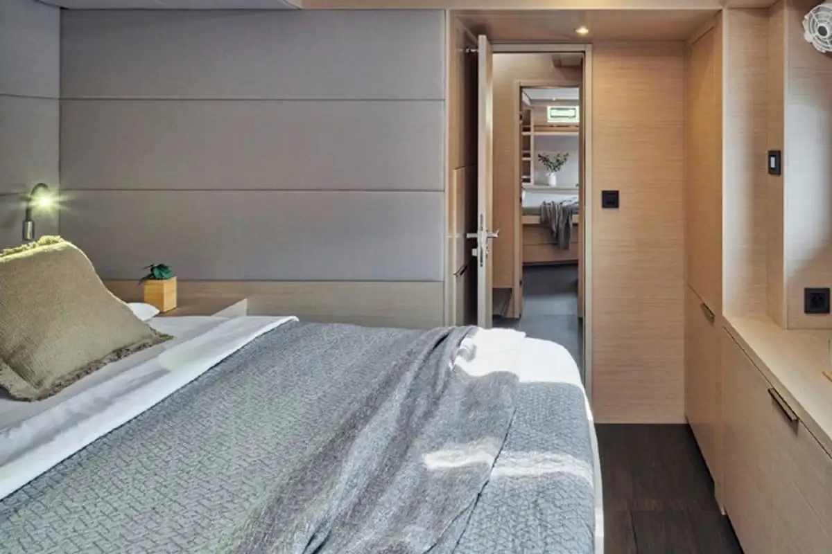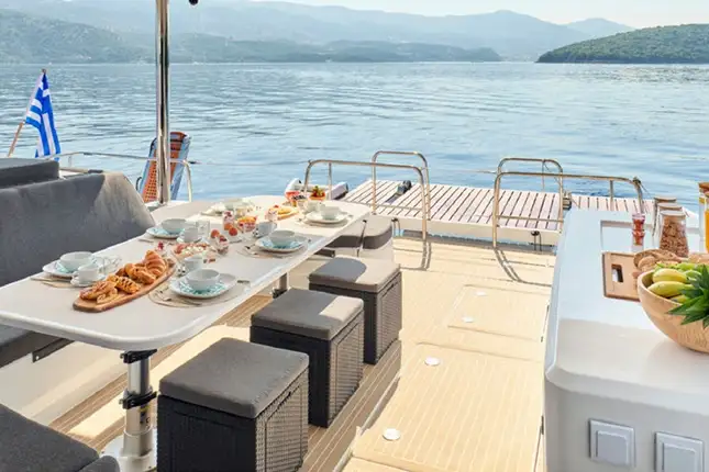 Step onboard AZUL, a 16.6m (55ft) sailing catamaran where you can enjoy her expansive deck space and the superior stability of the catamaran design. Unwind with leisurely afternoons cruising under sail and starlit evenings at anchor. AZUL offers your party four gorgeous en suite double guest suites, which are spread across two hulls in all four corners for greater privacy.