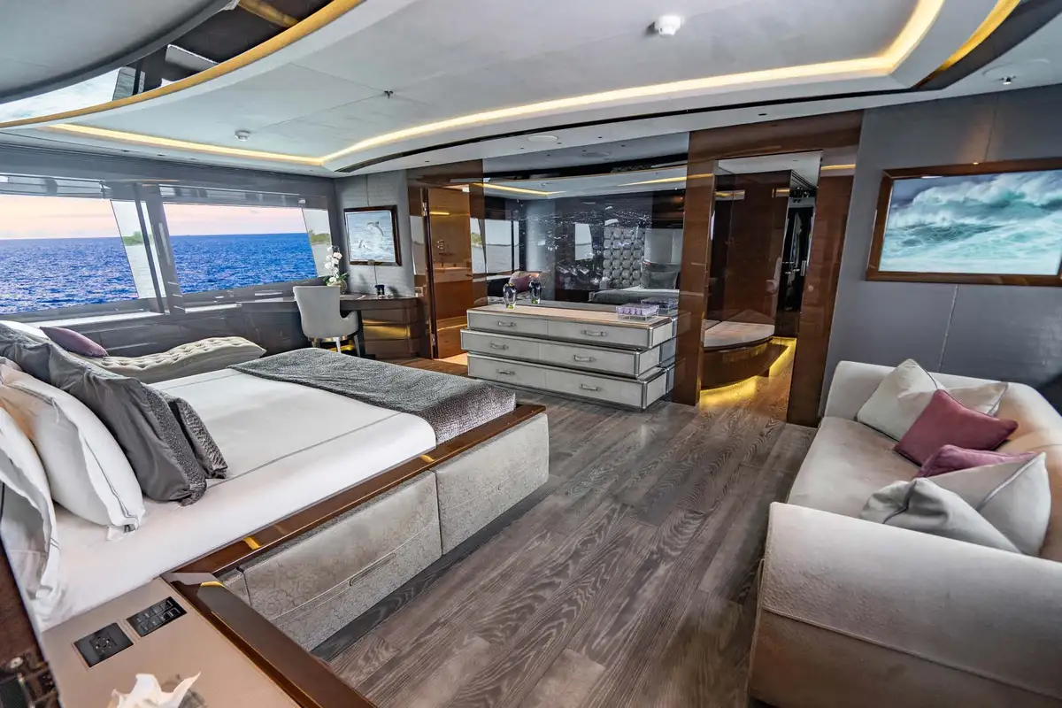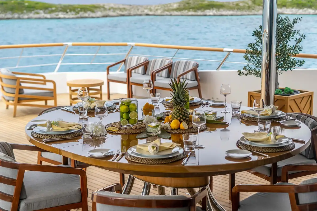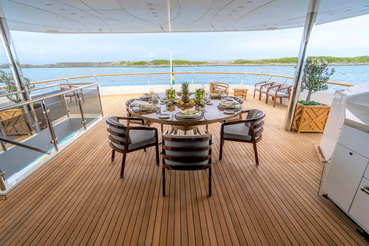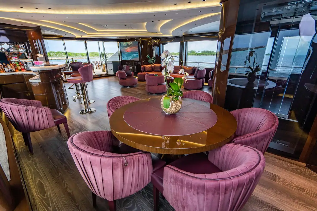 A charter on board the glamorous BABA’S will take you from fun in the sun by day to chic entertainment by night. Enjoy her expansive exterior decks, two jacuzzis, a gym by the water and choice of dining locations, while the interior’s refined decor adapts to your mood, from relaxation to celebration.