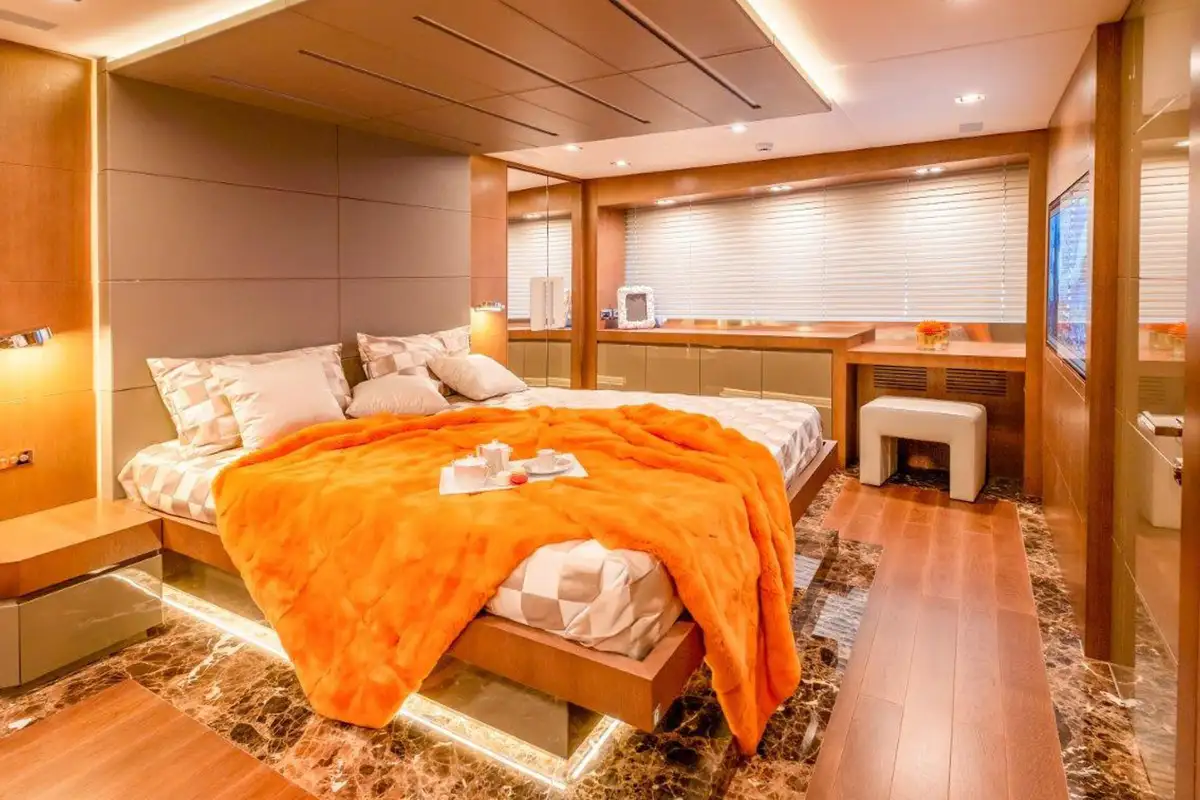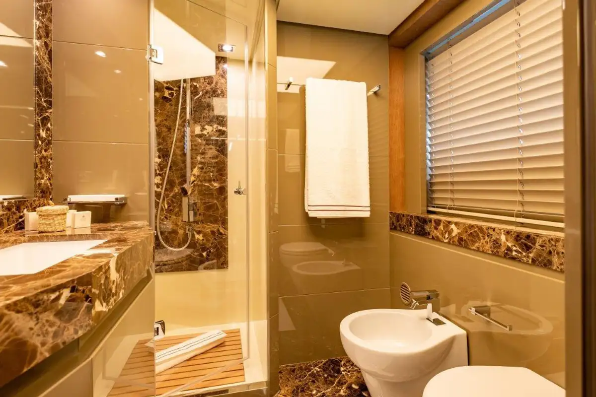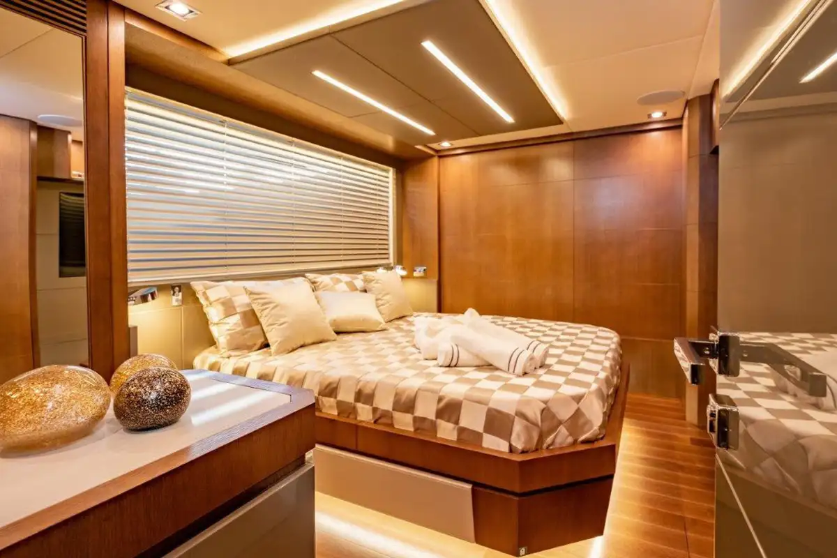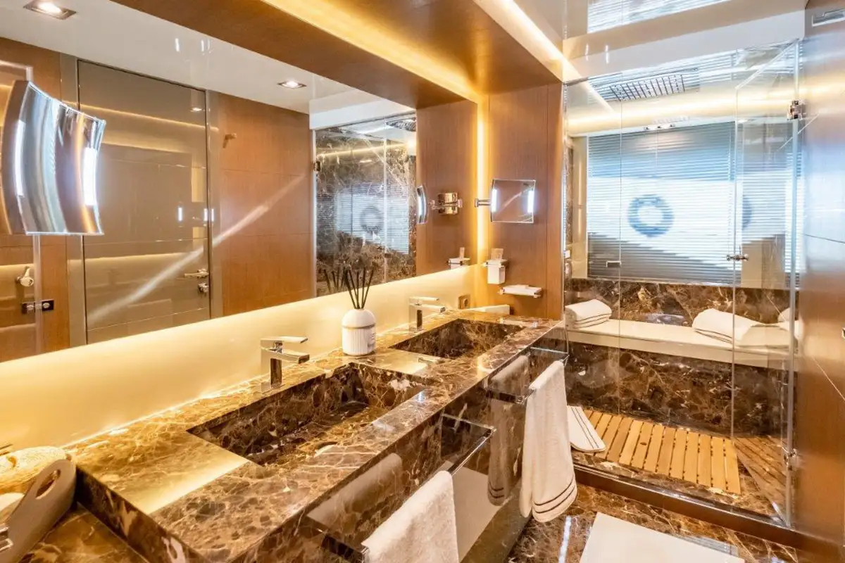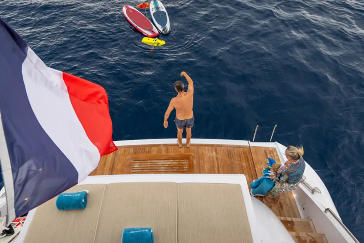Every detail on board BACCARAT is crafted with elegance and ease in mind. Her thoughtfully designed outdoor spaces invite relaxation, whether you’re unwinding in the jacuzzi, soaking up the sun on the foredeck loungers, or enjoying a slow lunch on the aft deck. Inside, expect chic interiors, modern amenities, and a light, open feel throughout.