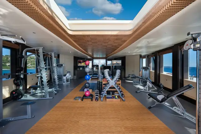 BARBARA features a distinctive layout split over six decks and an elegant, sweeping curved exterior, making extensive use of structural glass. With interior and exterior design by the renowned Sam Sorgiovanni, the versatile living area, comprises of deck spaces that easily convert into entertainment areas with a vast 'wellness' centre on the sundeck, complete with jacuzzi, fully equipped gym and a large sunbed relaxation area. The lower deck boasts a well-equipped massage and beauty salon and a generously sized cinema.