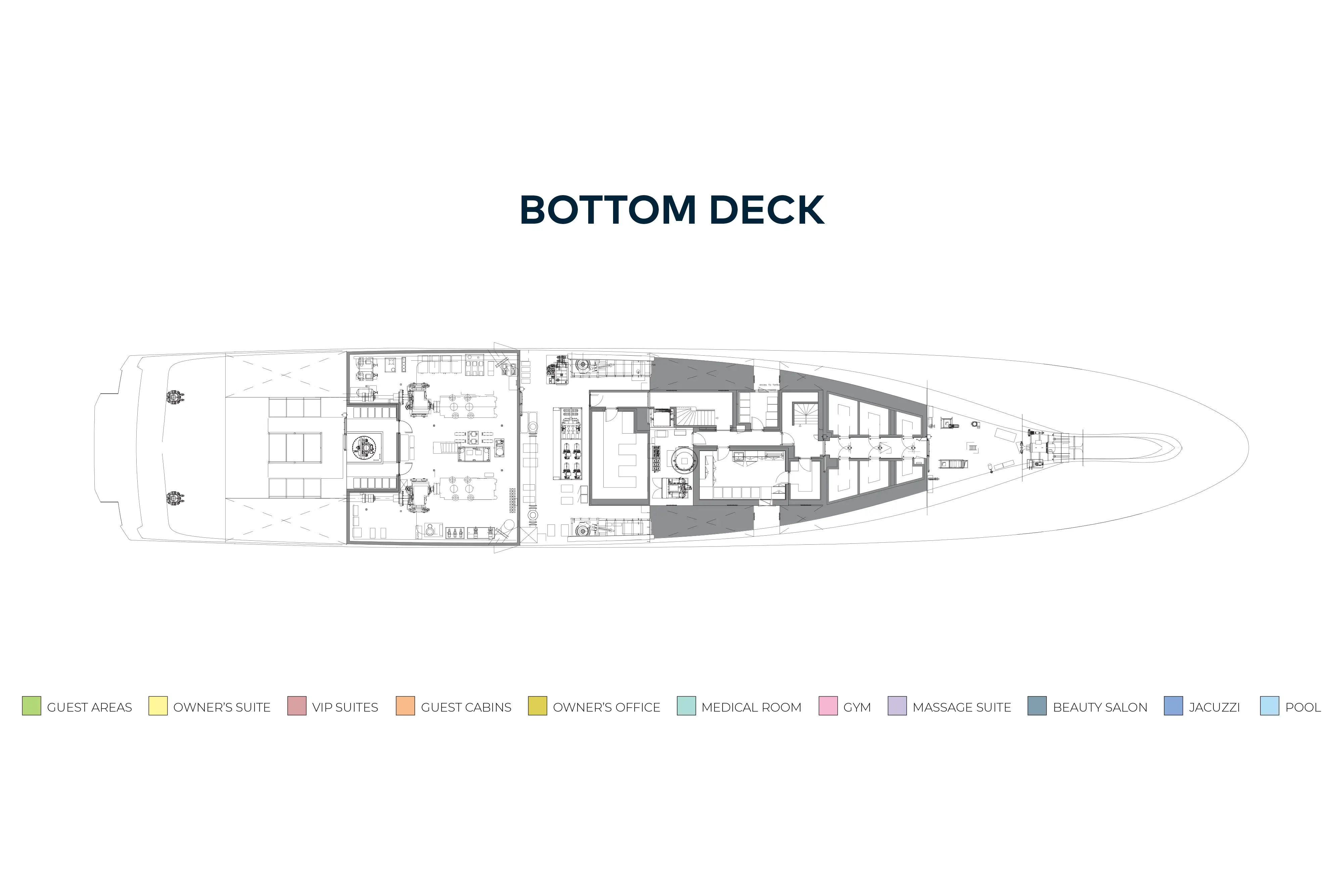 - An elevator from bridge deck to lower deck, serving all interior spaces