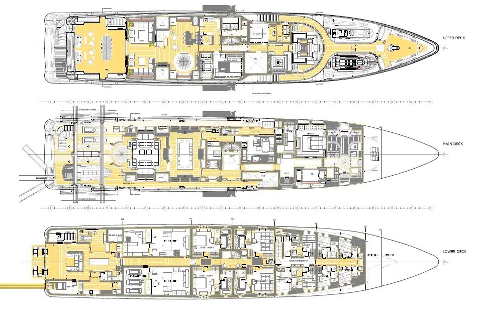 As you would expect from a luxury superyacht, BATON ROUGE has impeccable accommodation for 12 guests in seven en suite cabins, spread across three decks. The vast, 100sqm master suite is forward on the main deck and comprises of two private offices, a dressing room and separate vanity, and a huge bathroom with frosted glass rainfall shower and blue marble bath. Two VIP suites are located on the upper deck and four further double cabins are on the lower deck, two of which convert to twins.