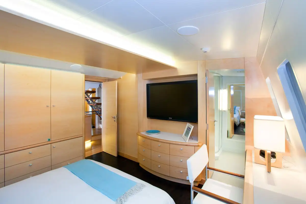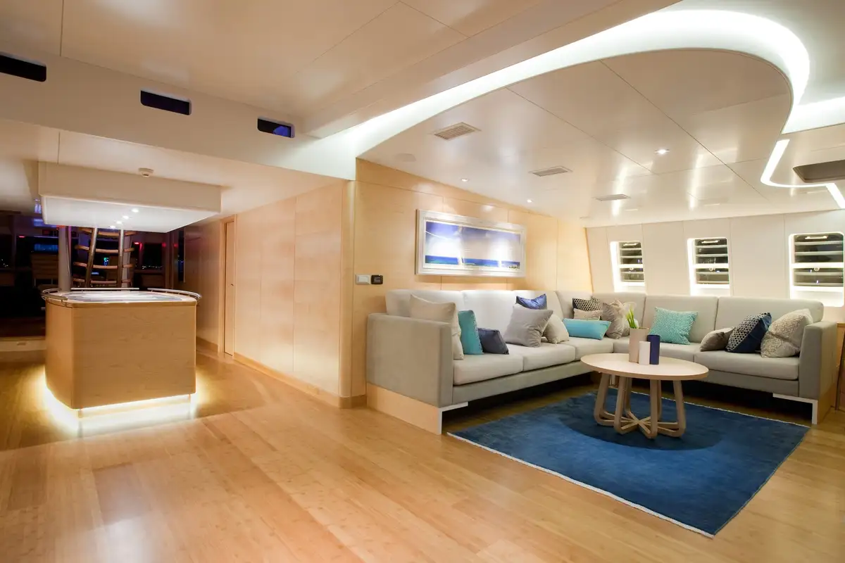 She has four cabins on the main deck, all with plenty of natural light: one master cabin, one double cabin and two twin/double cabins, ideally suited to families and groups of friends.