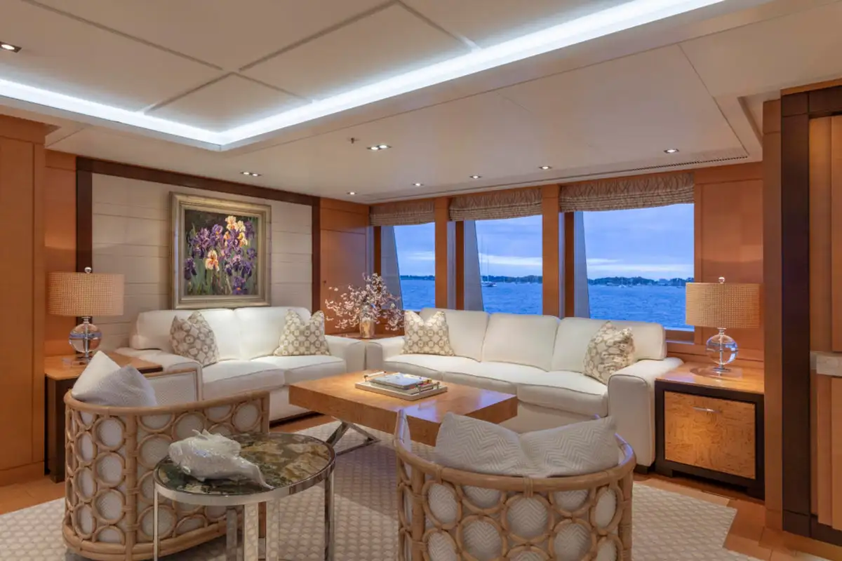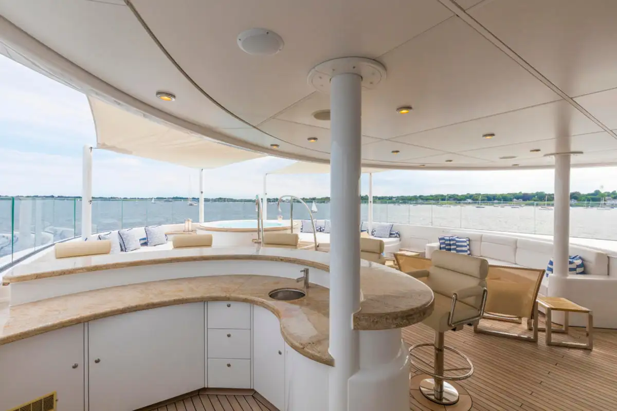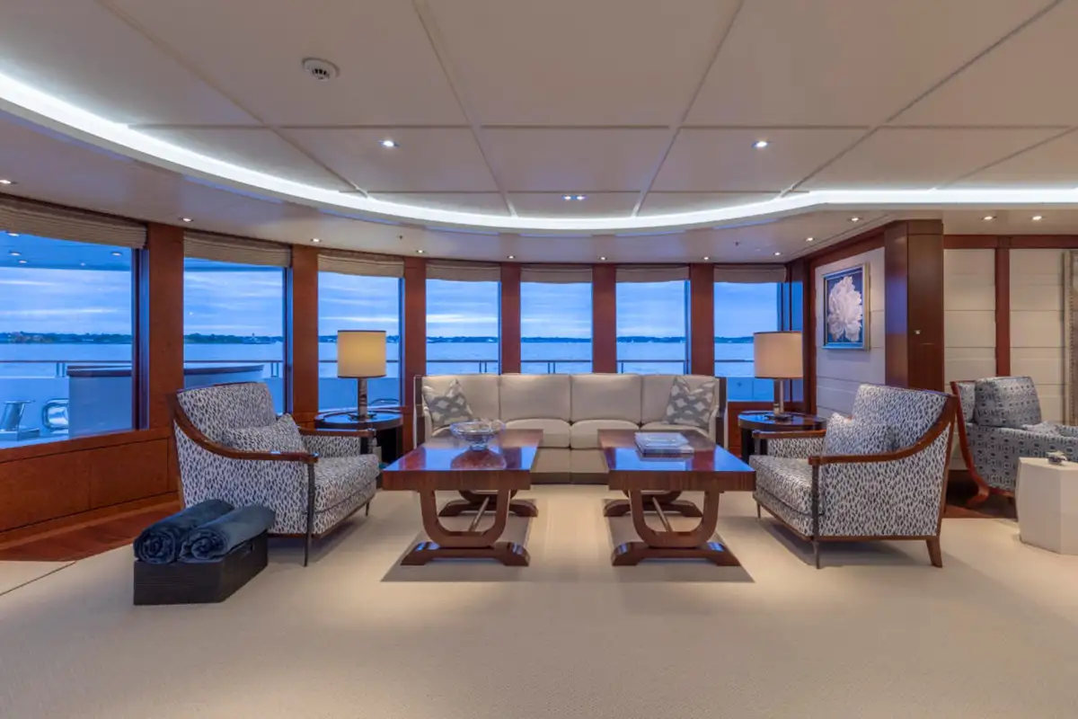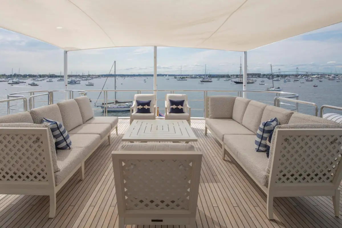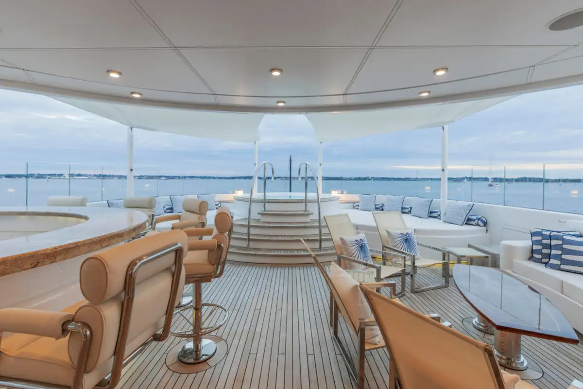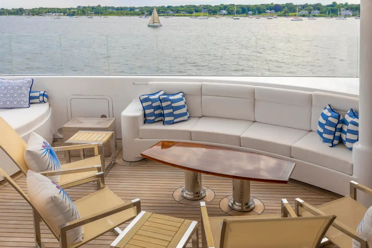 Outdoor spaces are as inviting as the interiors. The upper aft deck features a beautifully al fresco lounge to port and a dining area to starboard, offering spectacular ocean views with every meal.