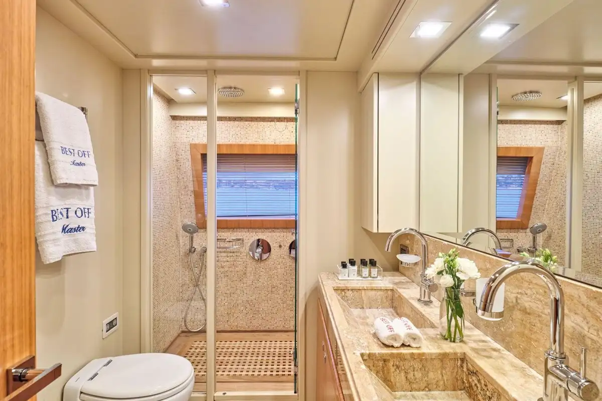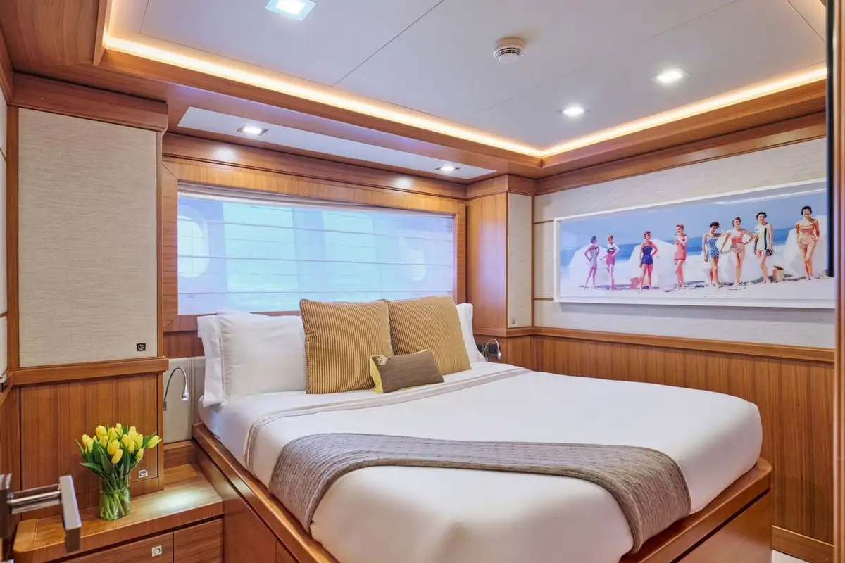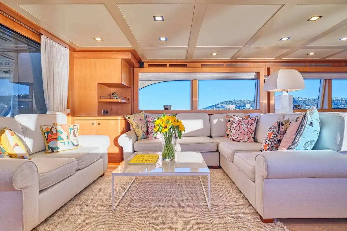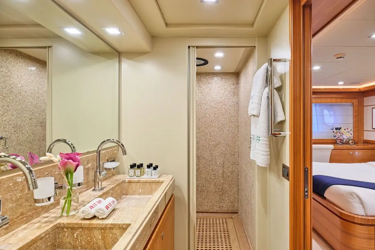 Designed to host up to 11 guests on board in a versatile and flexible five-cabin layout, she’s equally ideal for a family group or a charter shared between two couples. The spacious, full-beam master suite on the lower deck is as large and luxurious as the main deck master suite above. But her charm and style is an equally perfect fit for a romantic escape with a great abundance of luxury living space for just you and your partner to enjoy.