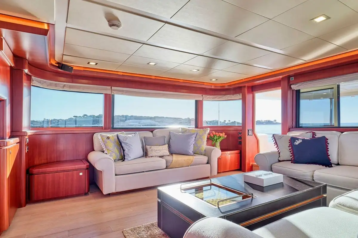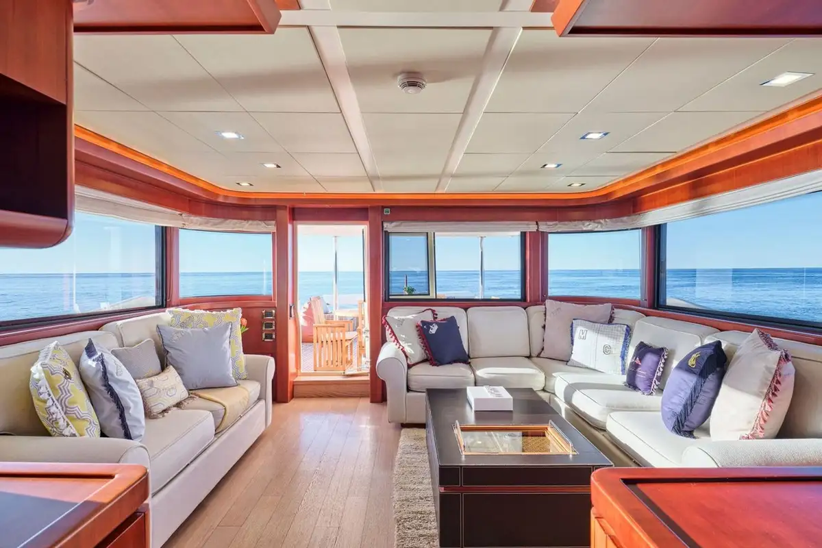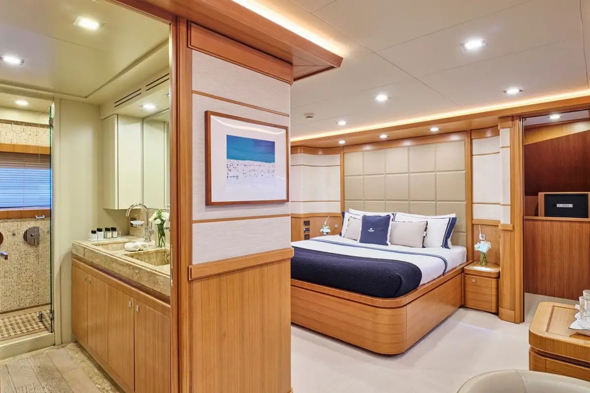 Her two interior lounges bring a touch of timeless elegance into the mix, with smart and crisp modern-classic styling and an easygoing vibe. The skylounge is a cosy living room and the main deck lounge is an inviting space with an open plan layout, ideal for larger gatherings. Wherever you choose to be, you’re guaranteed a great view out over the sea.