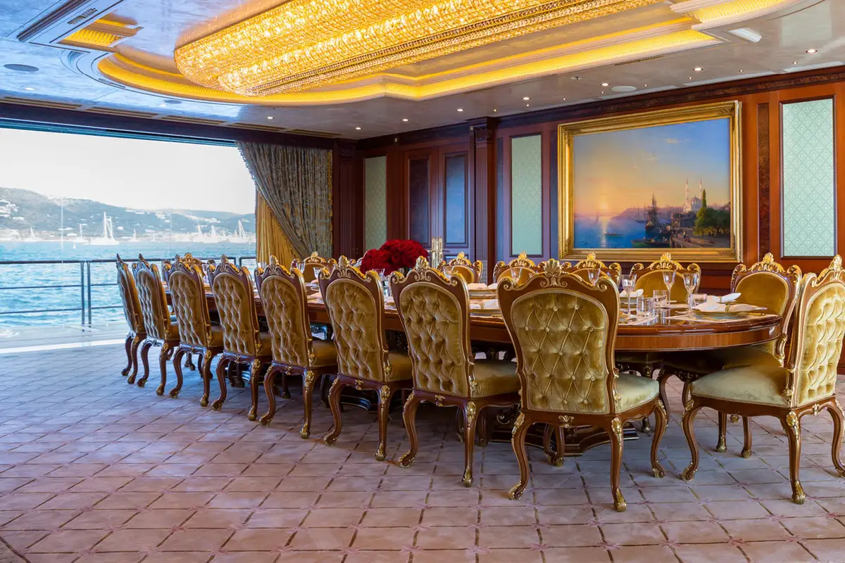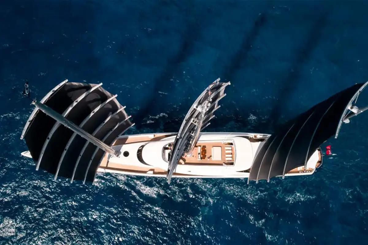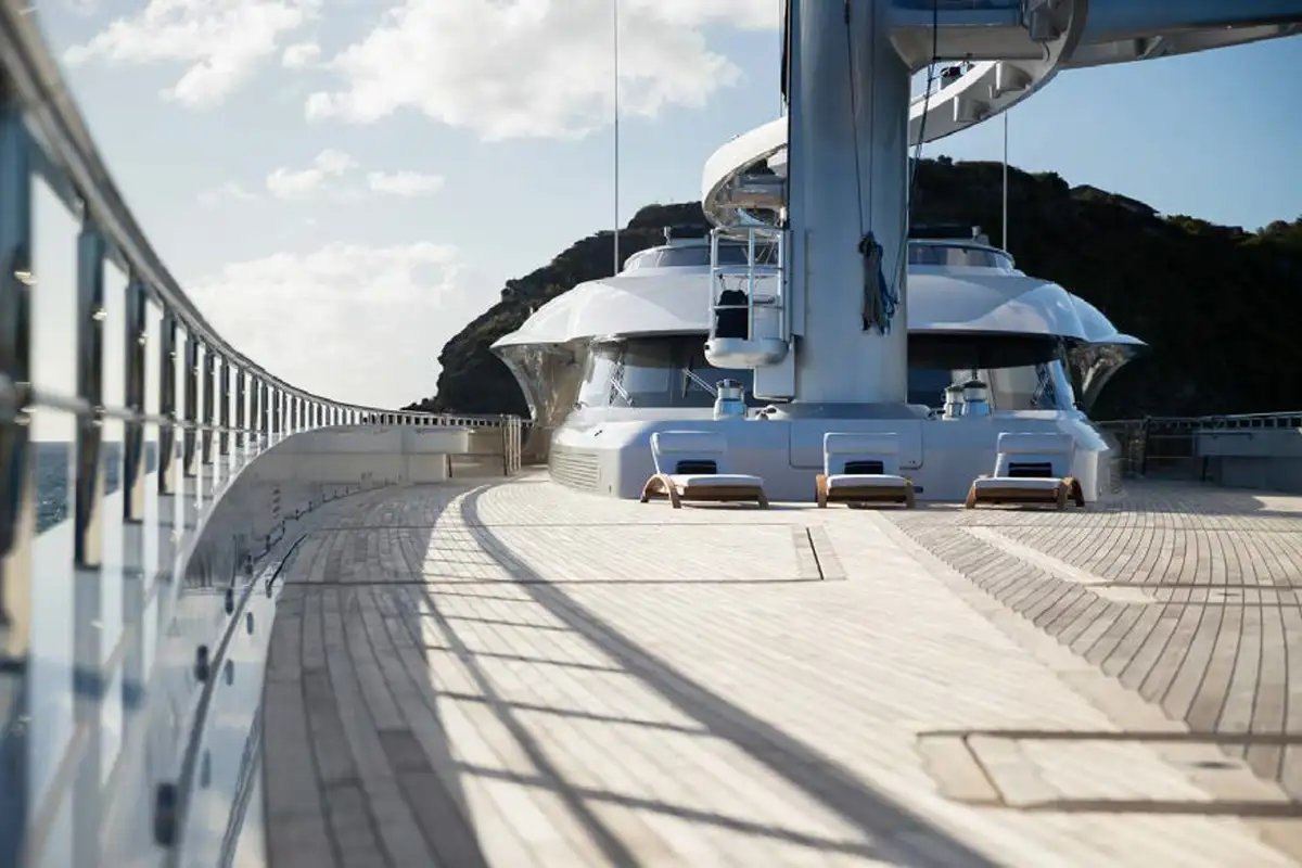 First, she is a genuine sailing yacht. At the push of a button, her three state-of-the-art DynaRig masts can unfurl nearly 3,000sqm of sail in just seven minutes, achieving a top speed of 24.5 knots. Under sail, her motors turn into hydro-generators to top up her battery bank, allowing for zero fossil fuel consumption and silent operation with no generators running at anchor.