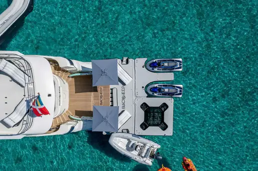 Her main guest tender is a 10m (32ft) high-speed motor launch with 600hp of outboard power. And with an inventory of toys that includes SeaBobs, jetskis, paddleboards, inflatable tows, spearfishing gear and more, there’s plenty of scope for watersports fun on board.