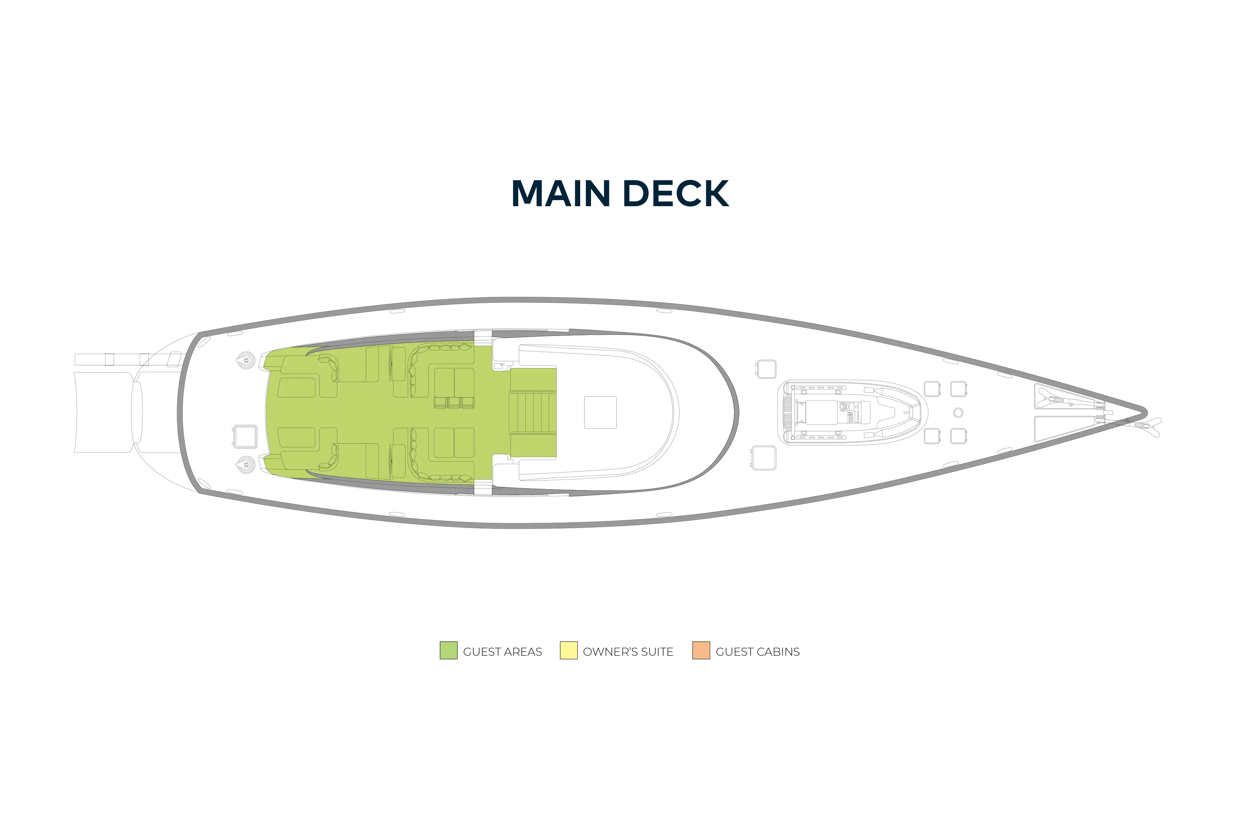 - Spacious lounge/dining area in the cockpit and main lounge