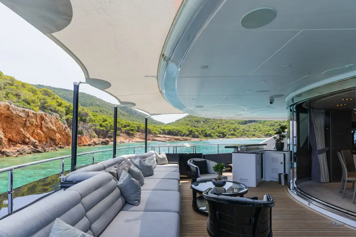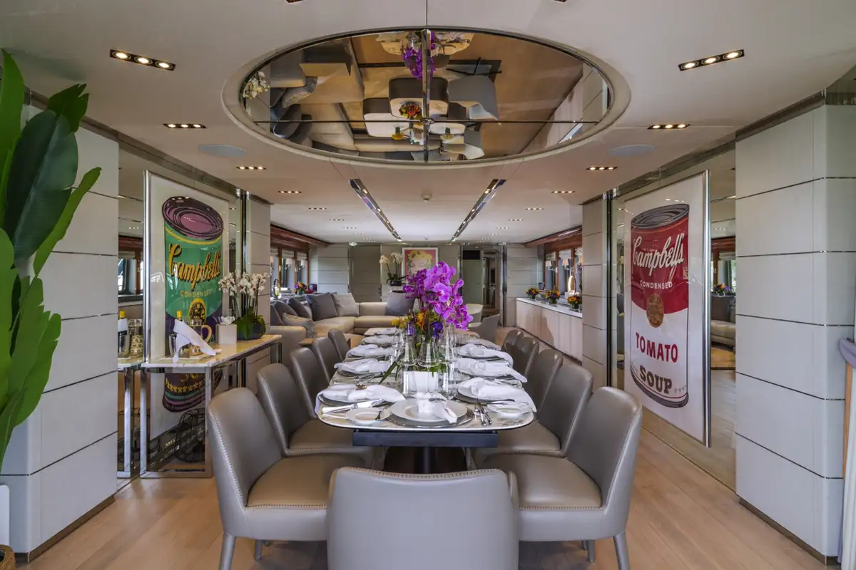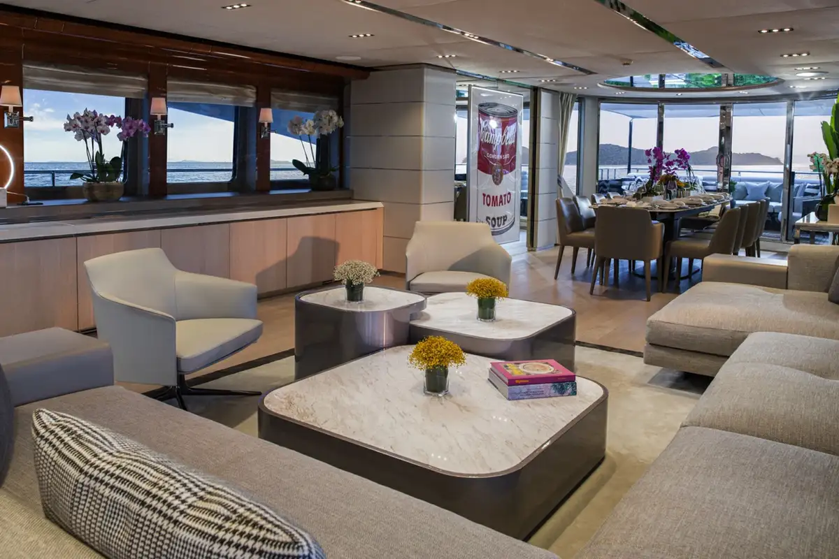 If you’re looking for a smart, spacious, swift and stylish yacht for your charter holiday, BLISS ticks all of those boxes and more. Built by the elite Heesen shipyard and comprehensively upgraded in a total refit very recently, she’s a 44-metre tri-deck vessel with a generous amount of living space, inside and out. Her bright and fresh interior is a delight, with iconic 1960s pop art and a finely crafted finish in luxury materials throughout. Her 25-knot top speed offers twice the cruising range of a typical displacement yacht.