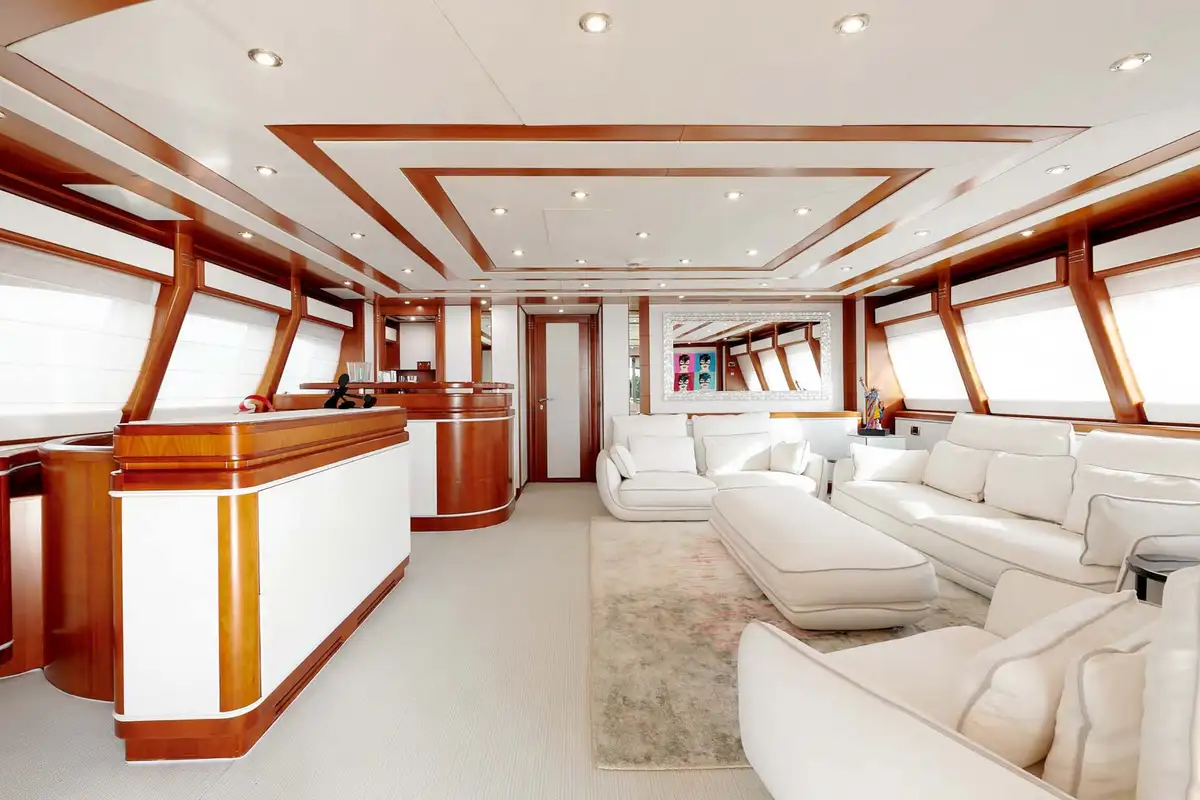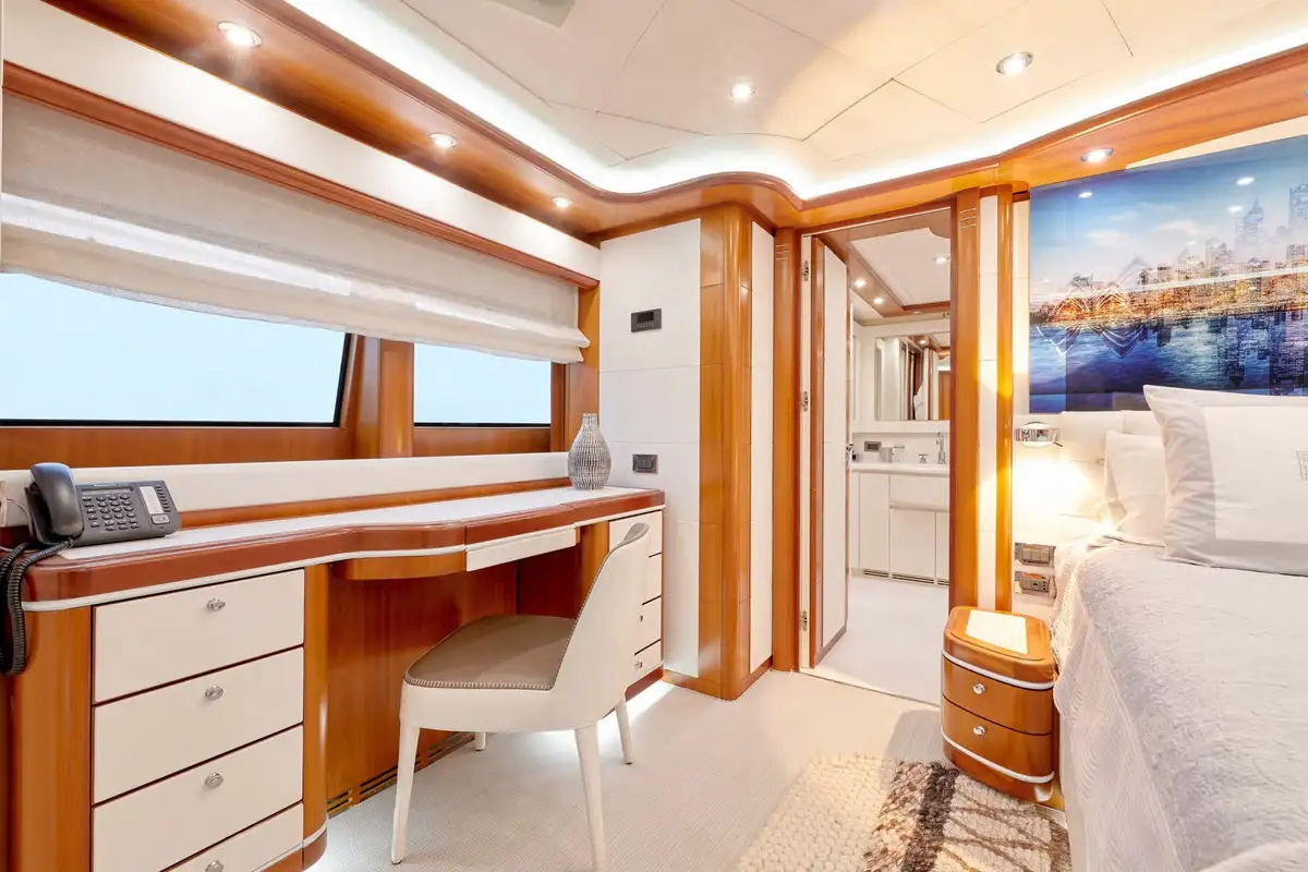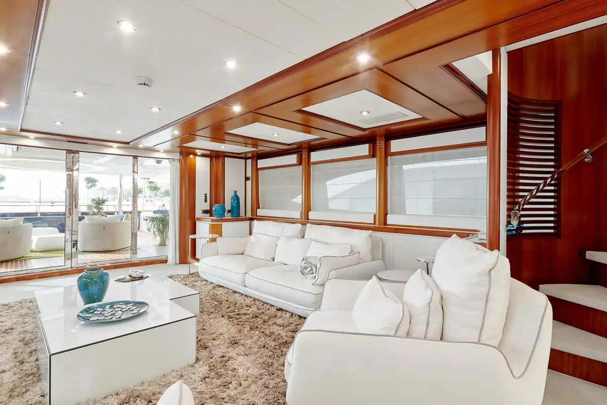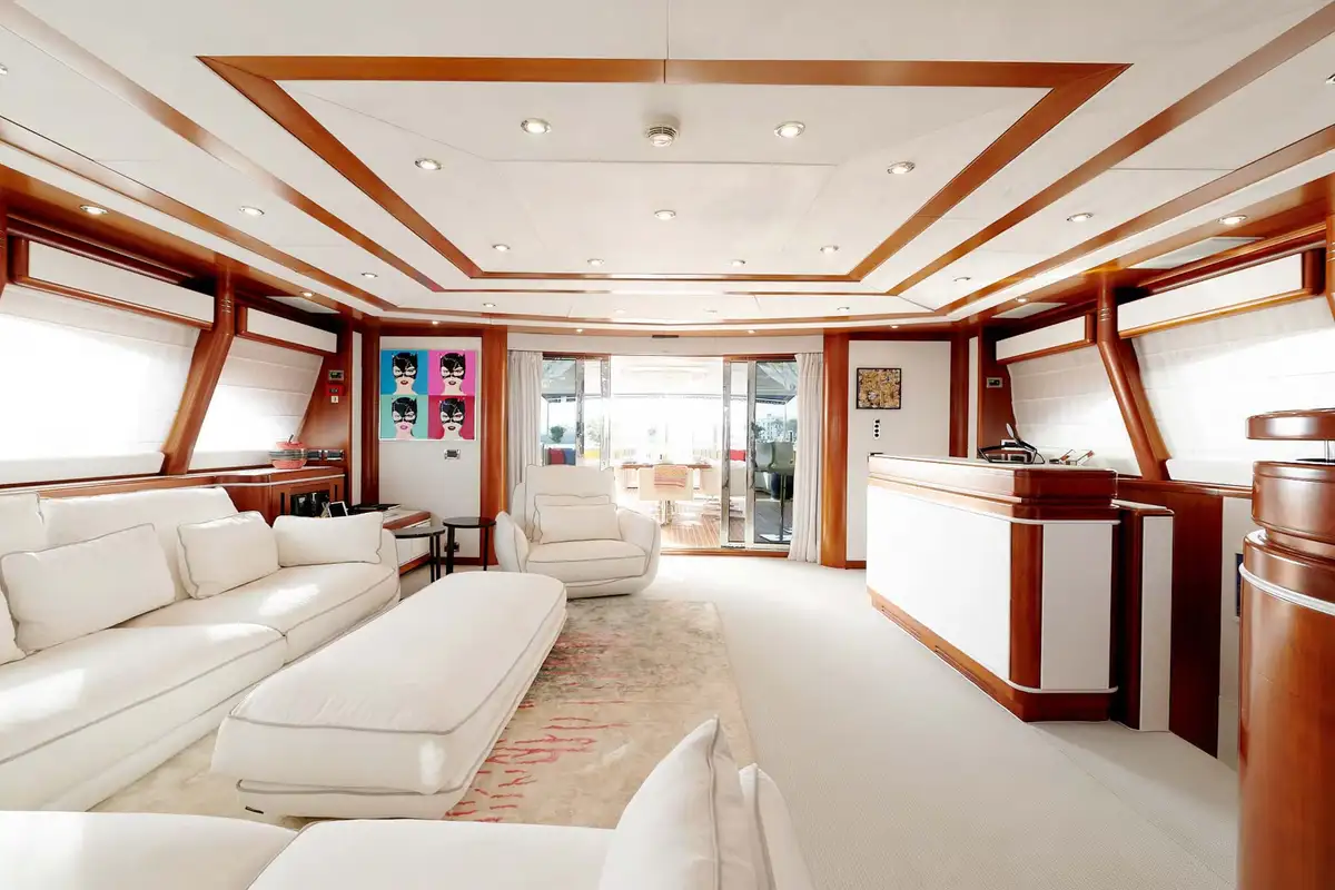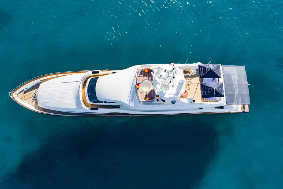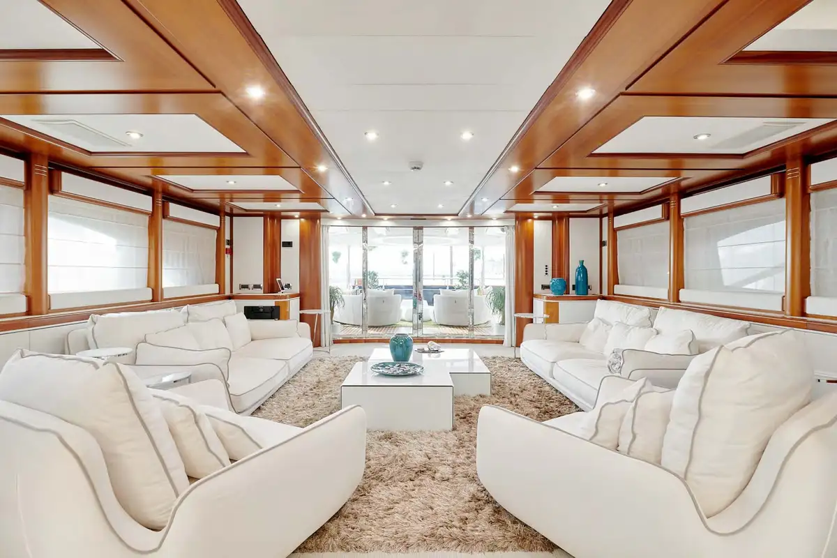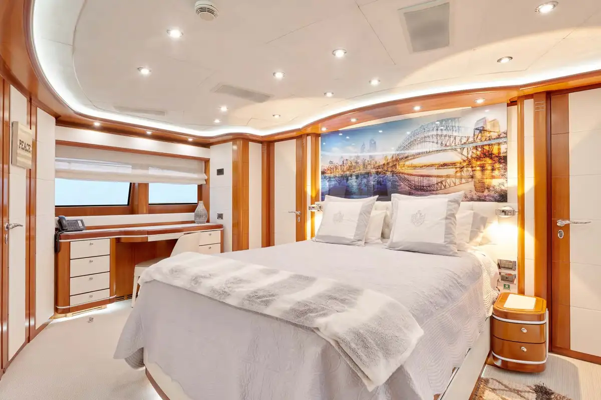 The master suite, located on the main deck, provides a calm retreat for your relaxation. The yacht’s modern amenities, including individual sound systems for each cabin and a brand-new internet system, ensure that every guest can stay connected and entertained throughout their stay.