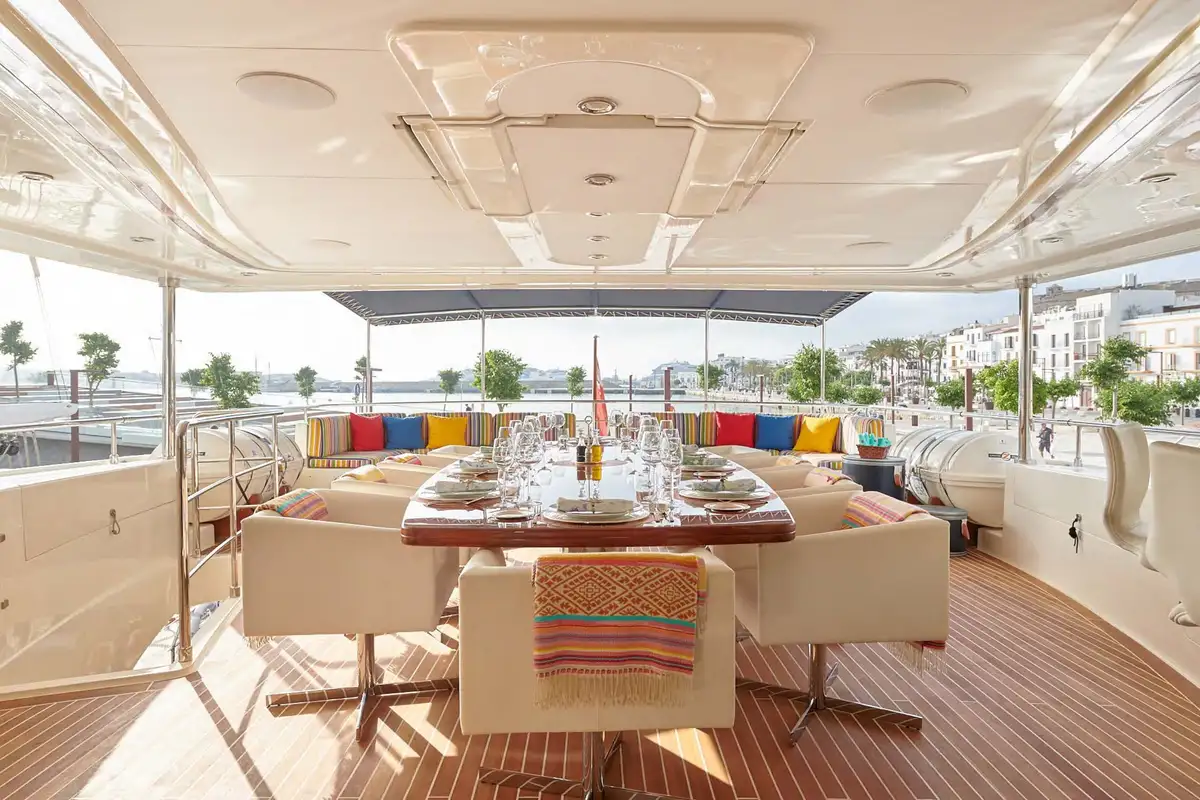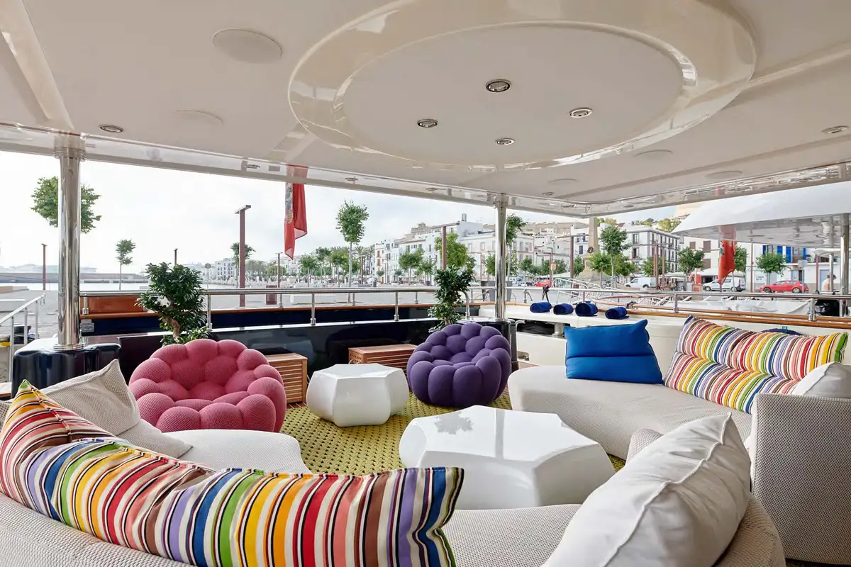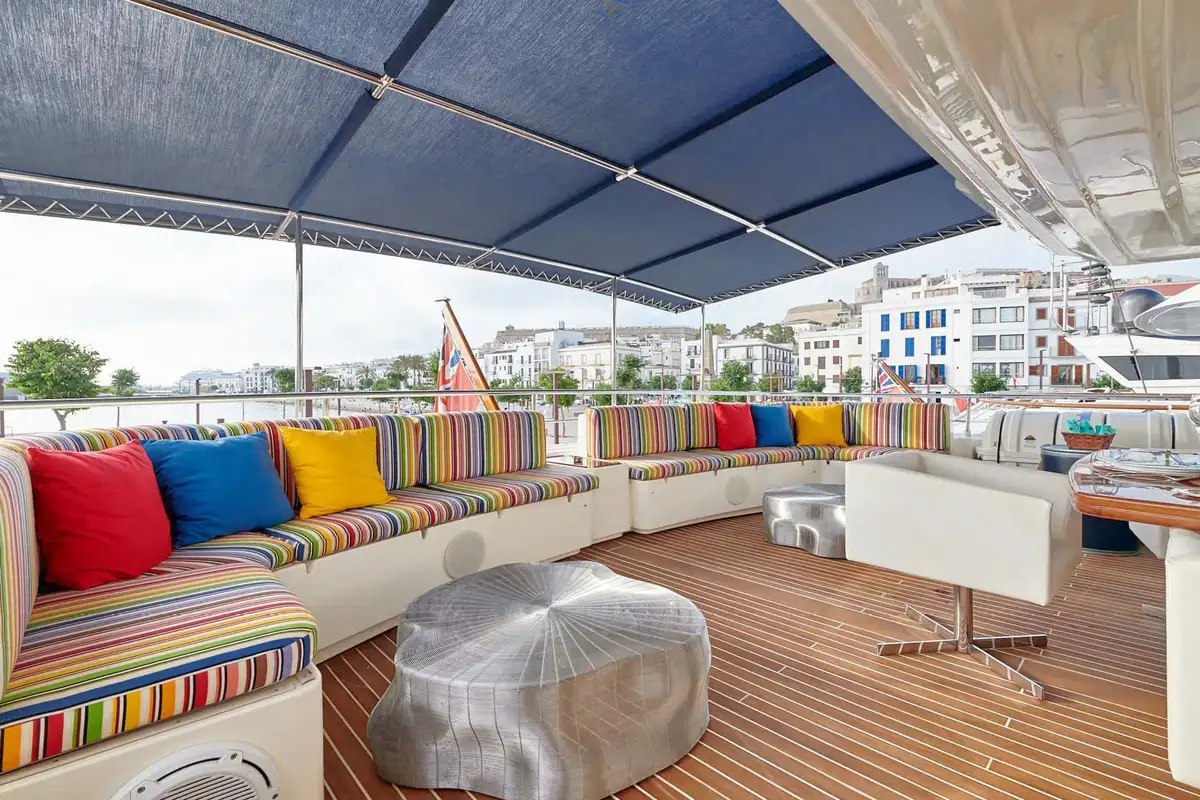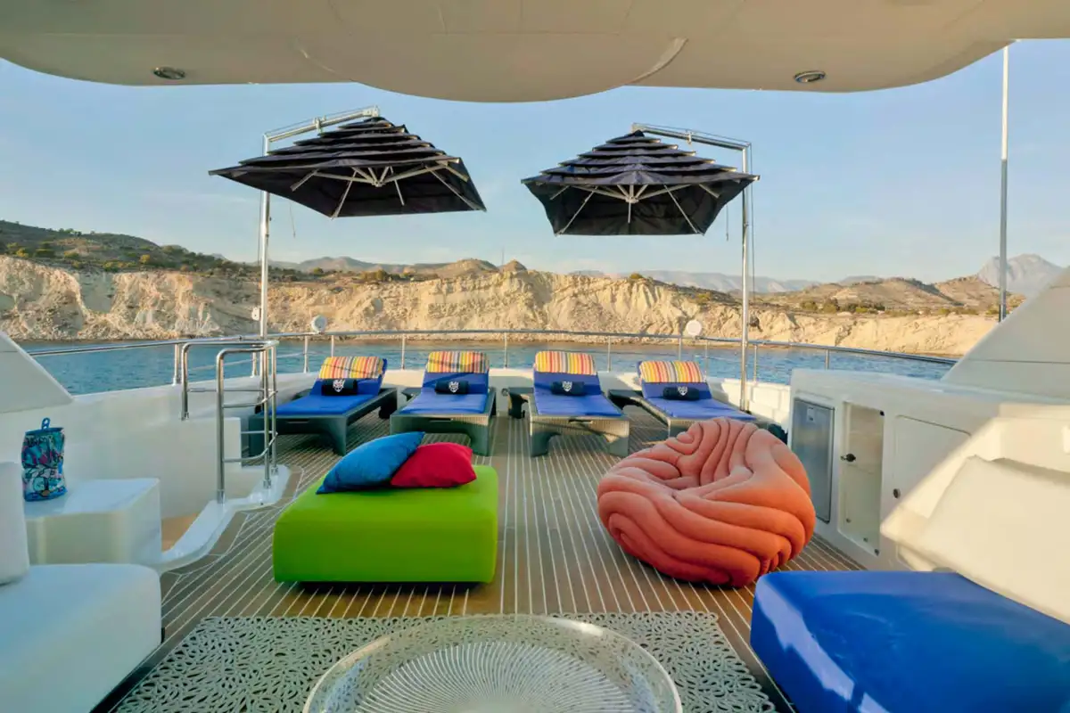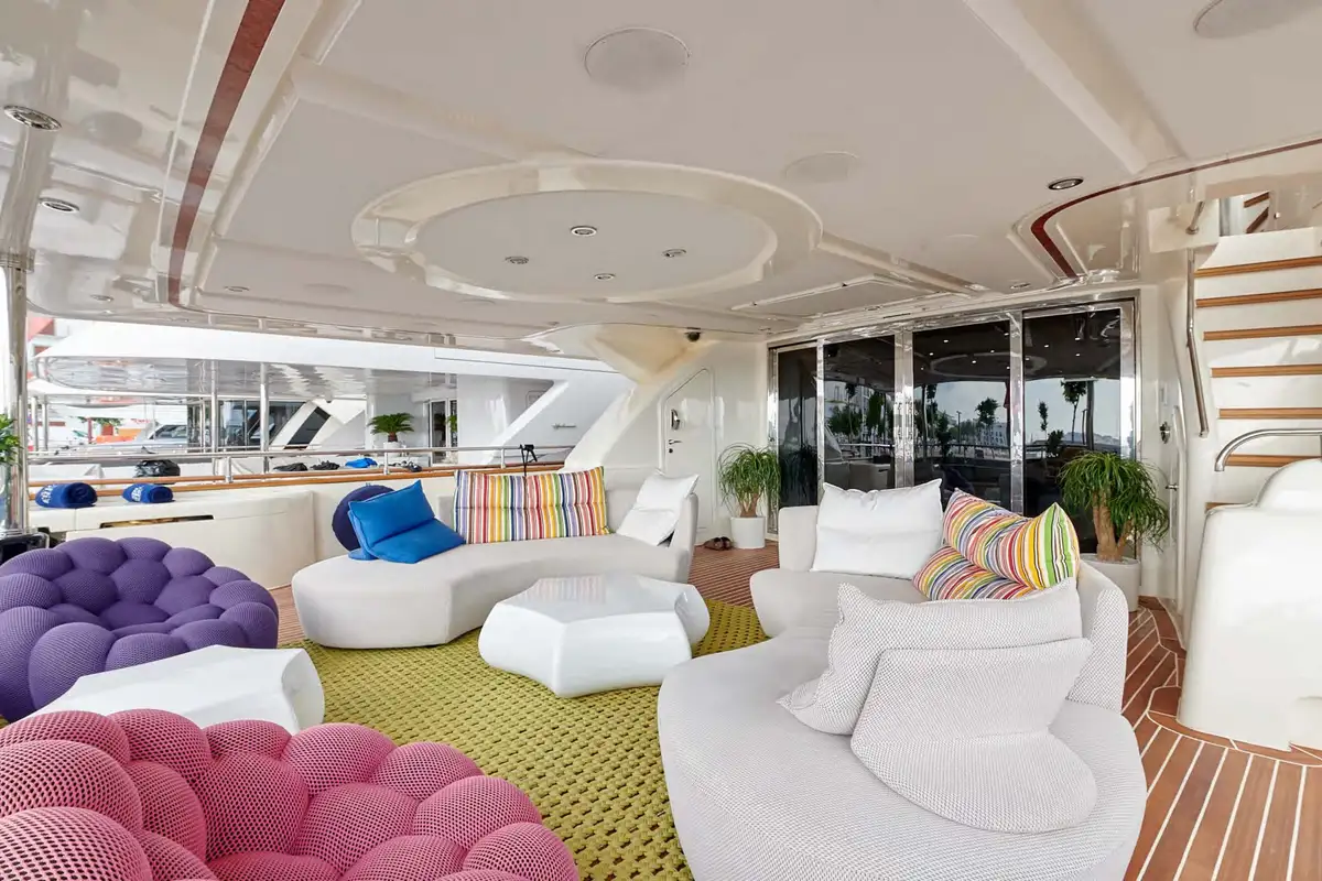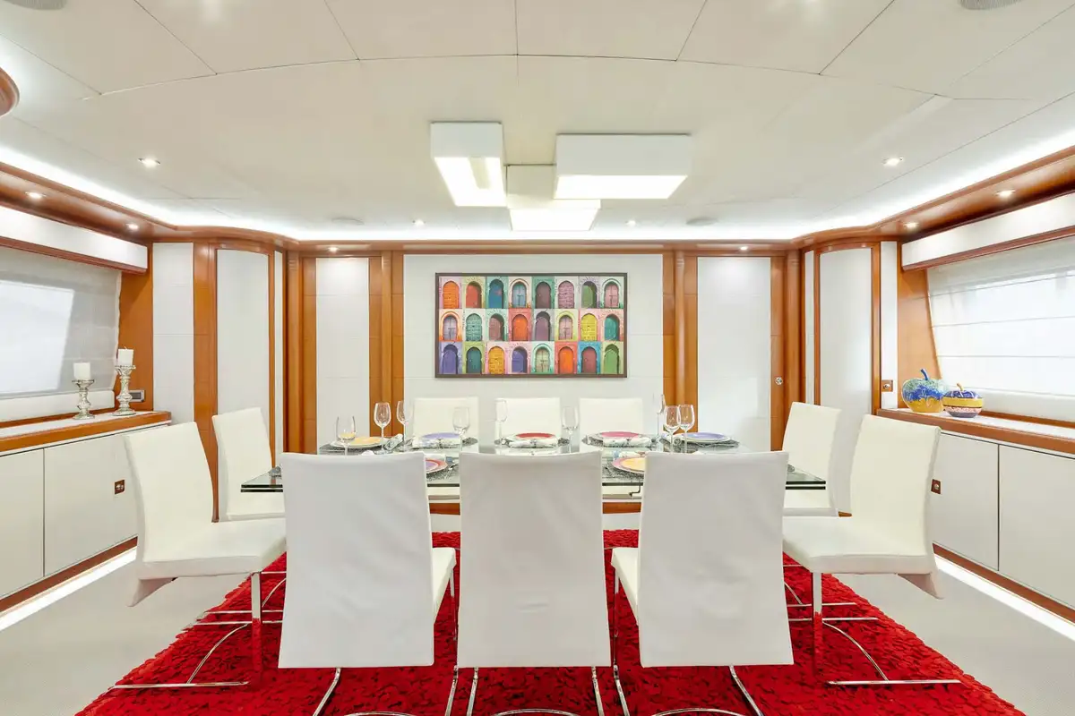 The master suite, located on the main deck, provides a calm retreat for your relaxation. The yacht’s modern amenities, including individual sound systems for each cabin and a brand-new internet system, ensure that every guest can stay connected and entertained throughout their stay.
