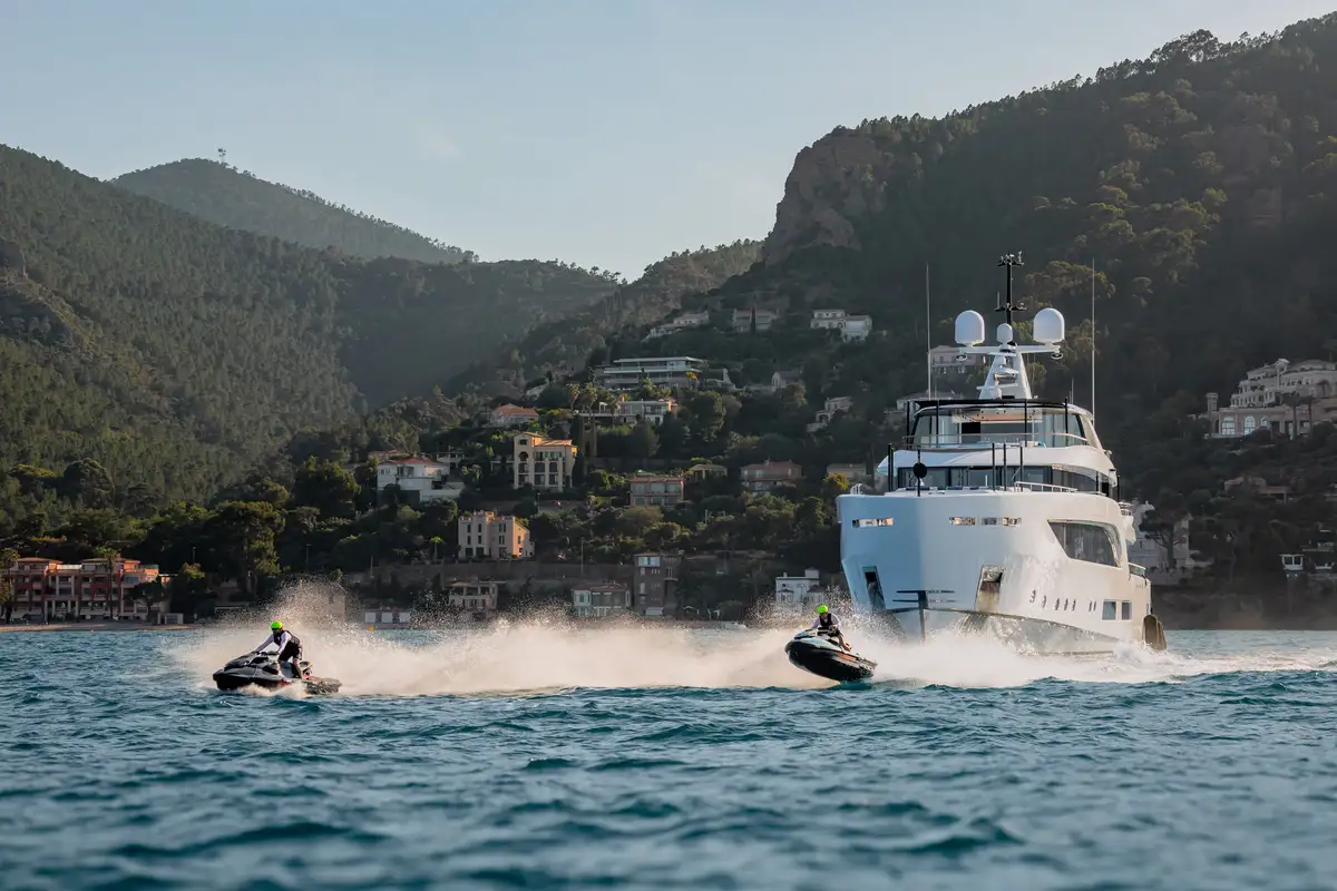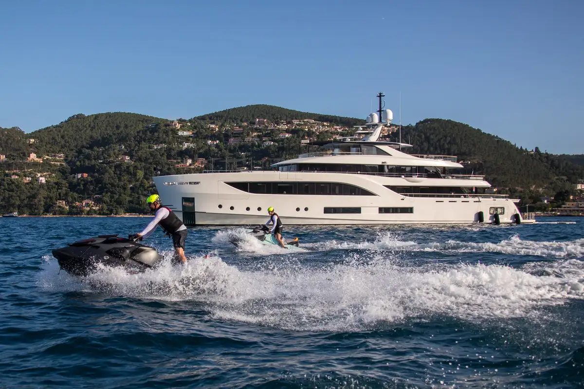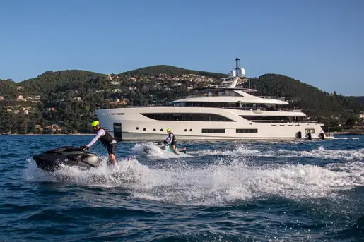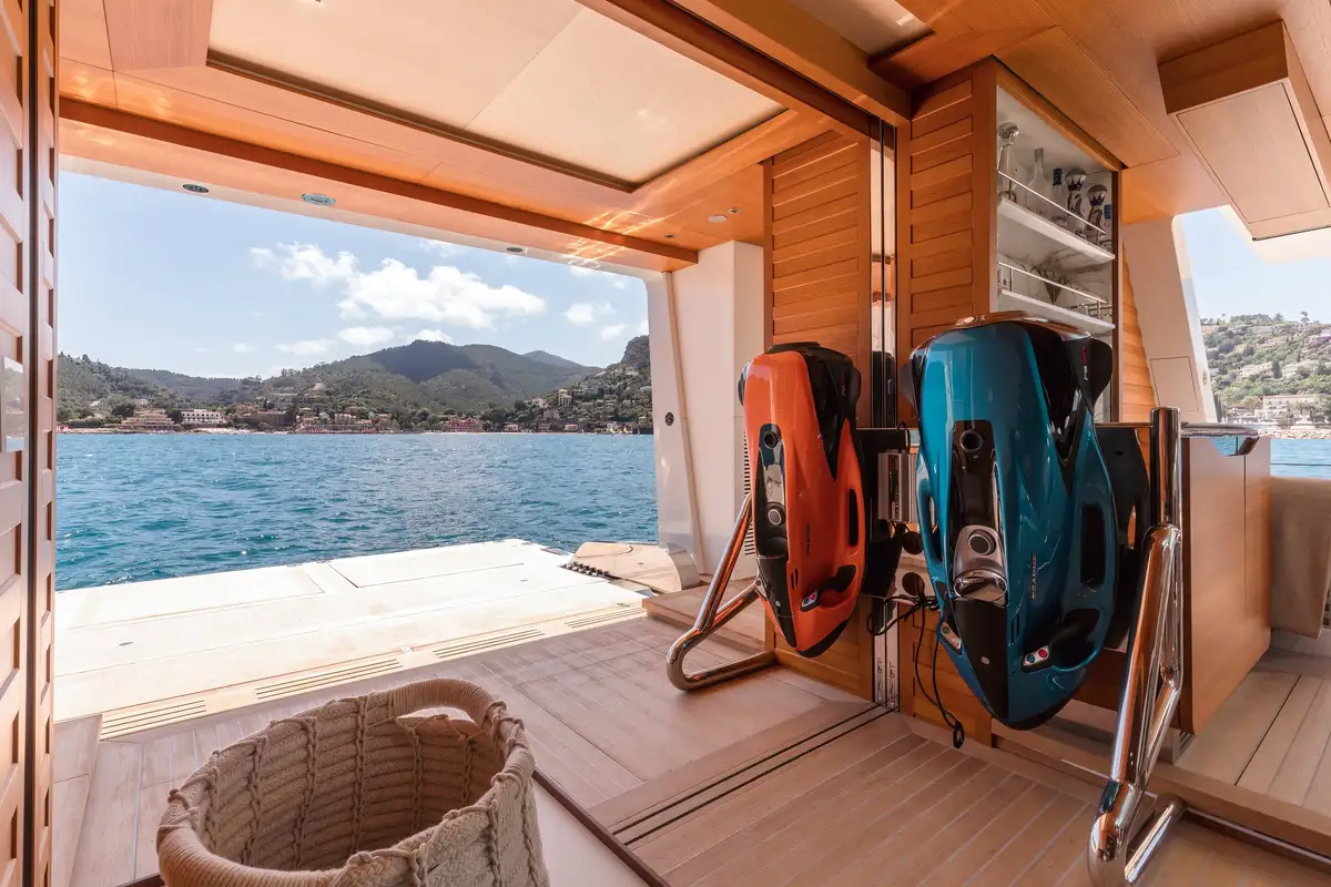 Naturally, the toy and tender collection on C aligns with its exceptional features, with a 12.5m Novamarine BS120 luxury chase tender, capable of carrying 14 passengers, ready to go on any excursion, large or small. SeaBobs, Sea-Doo jetskis, eFoils, and a floating beach are some of the highlighted toys ideal for a watersports day.