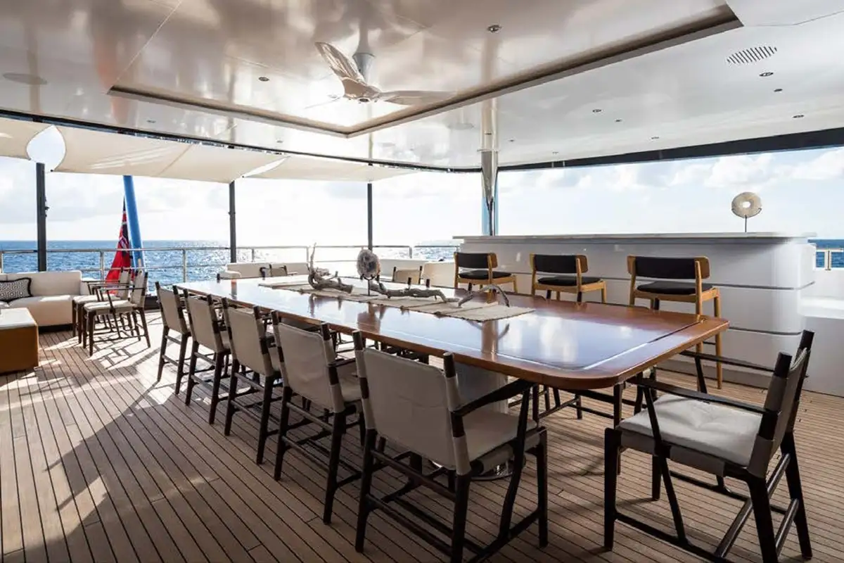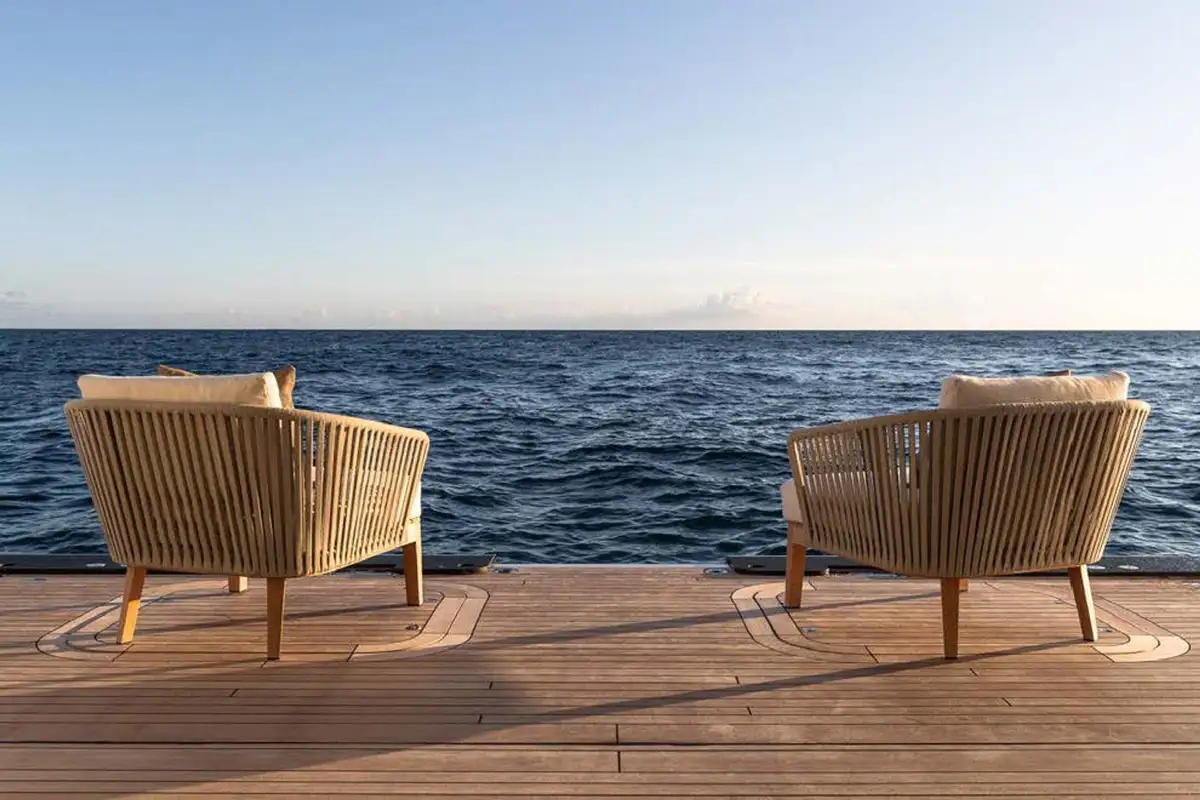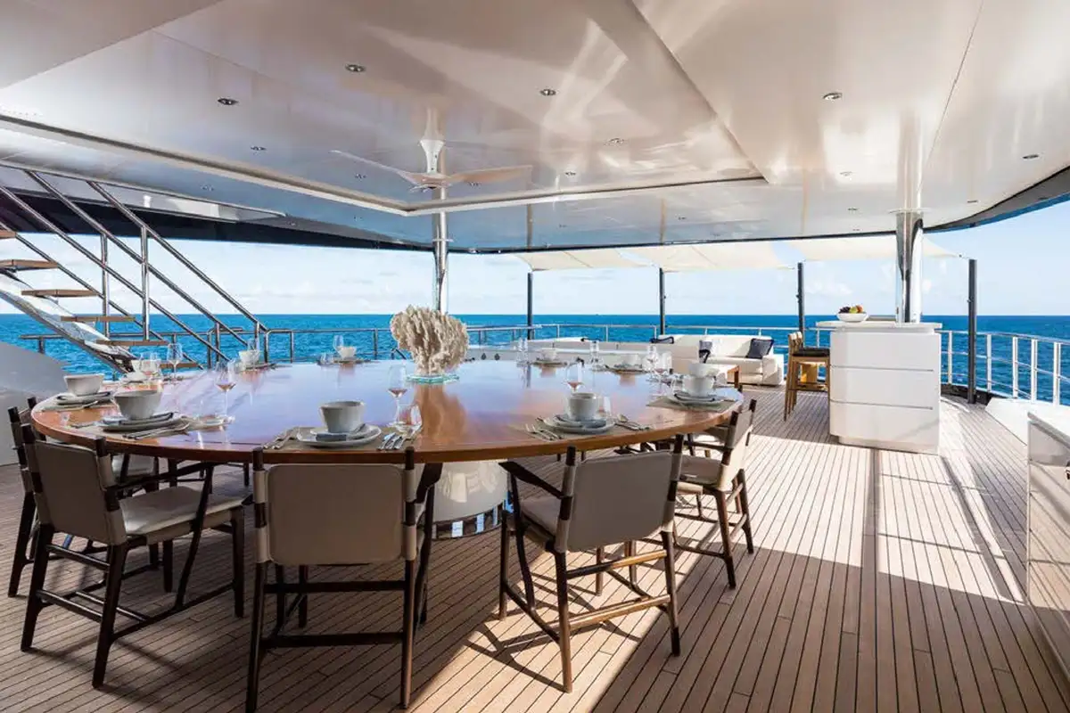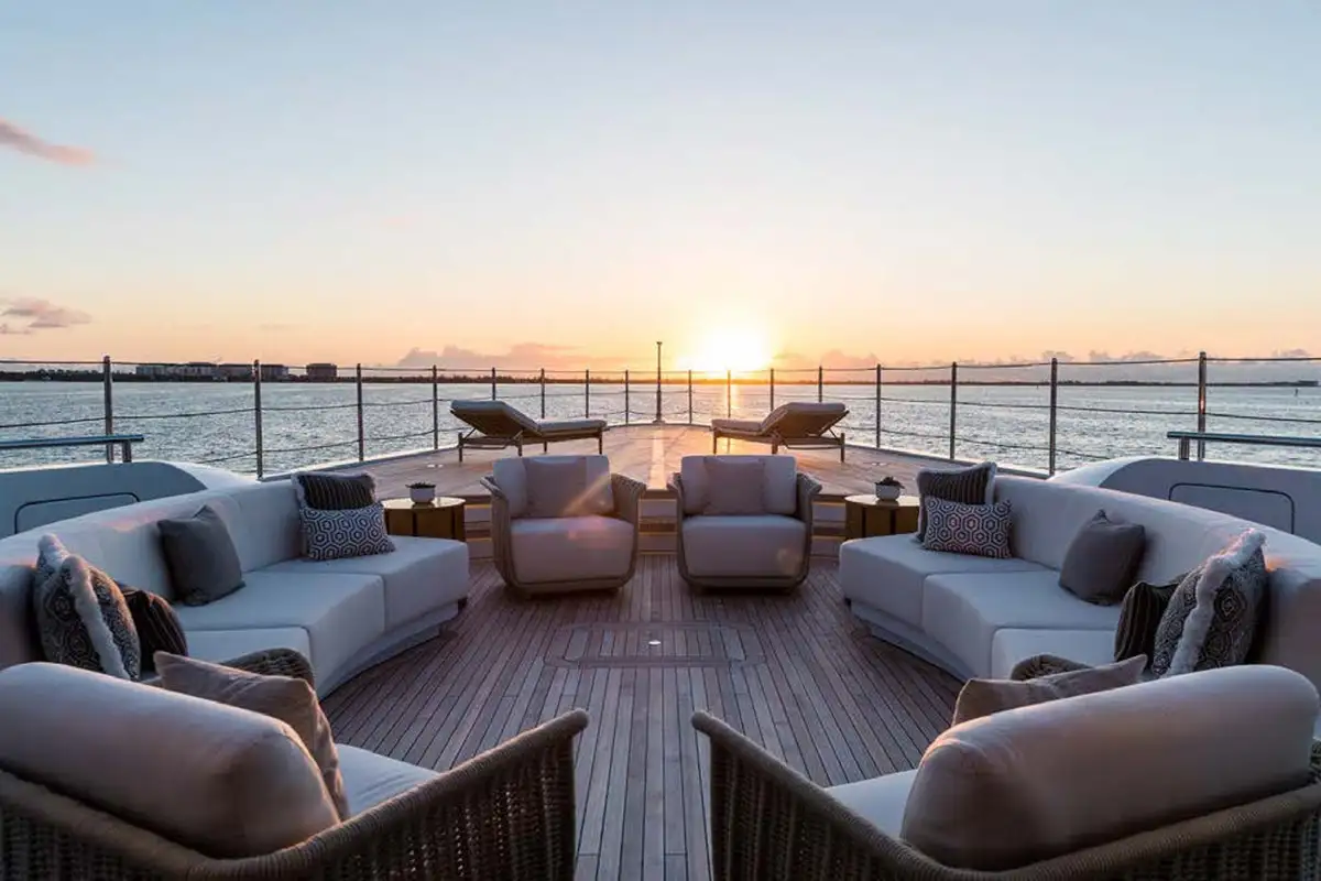 Outdoor living is at the core of the CALEX experience. Her sun deck offers a complete wellness escape with a jacuzzi, open-air gym and yoga area, while the upper and main aft decks provide shaded dining and lounge spaces for meals and celebrations under the stars. The bridge deck, too, transforms into an inviting entertainment zone, featuring a full-service bar and panoramic vistas.