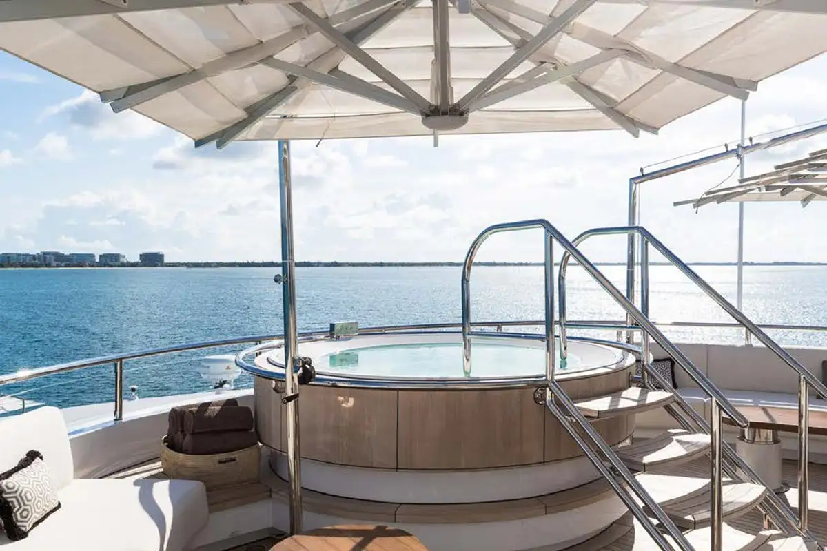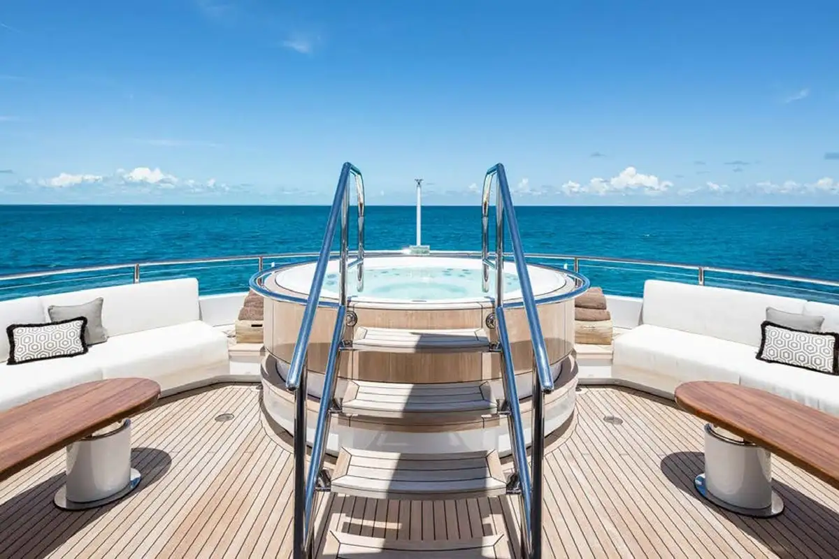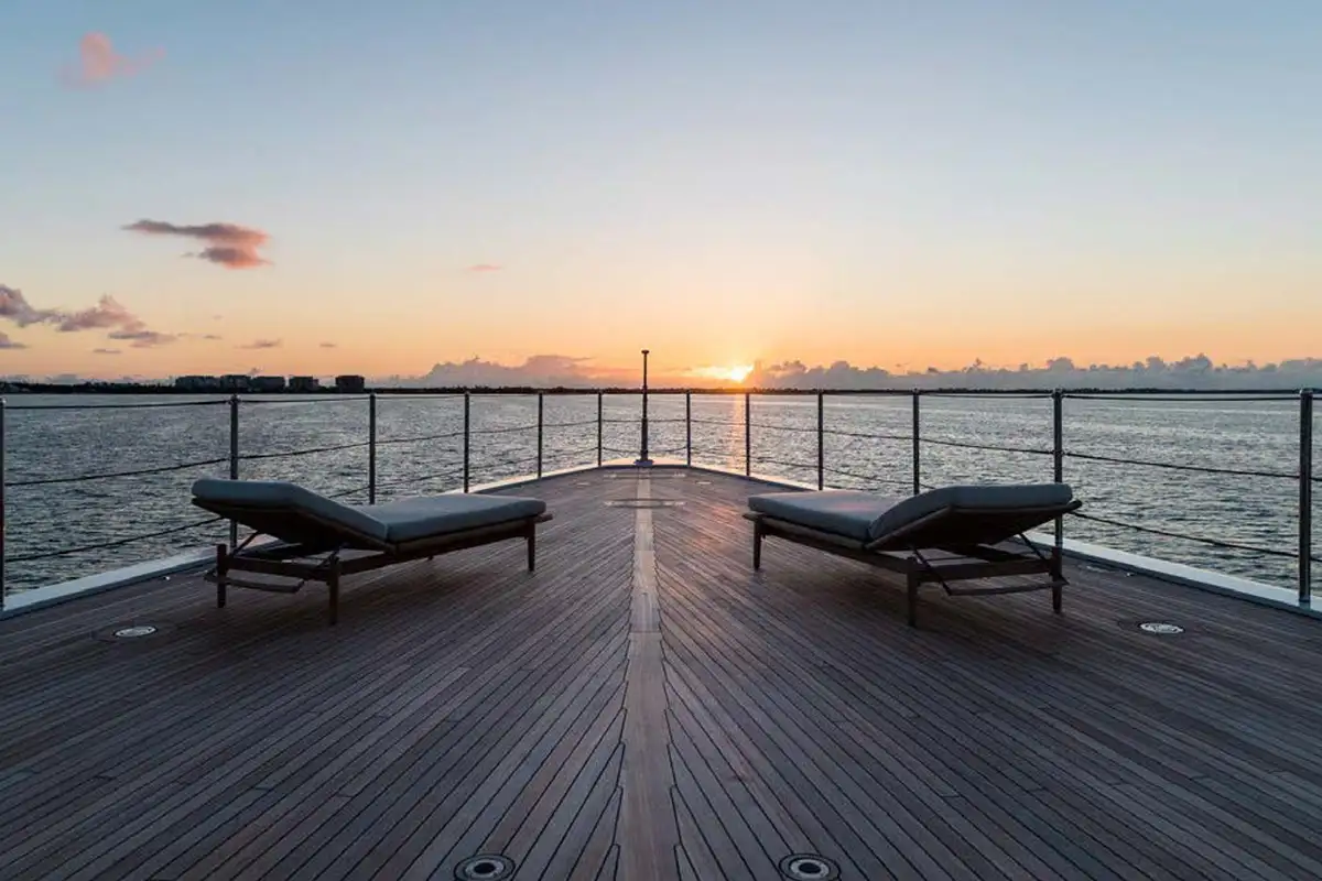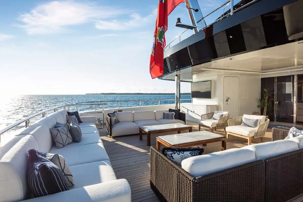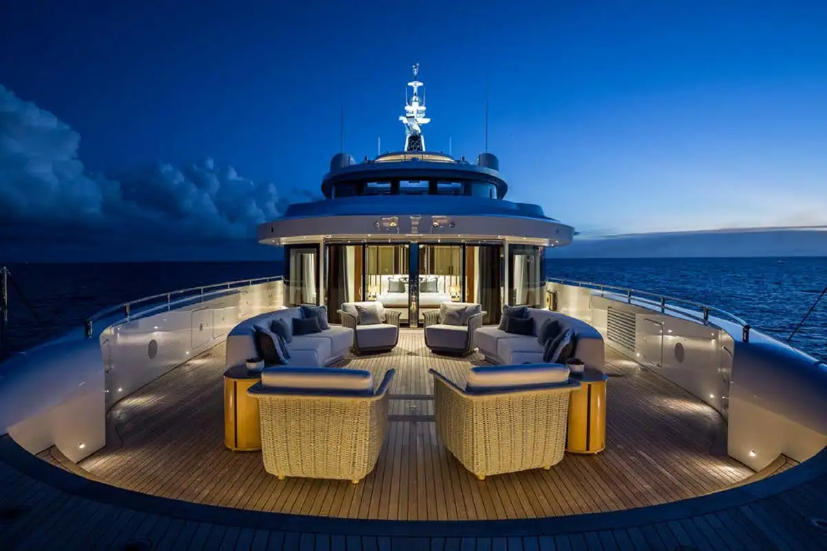 Outdoor living is at the core of the CALEX experience. Her sun deck offers a complete wellness escape with a jacuzzi, open-air gym and yoga area, while the upper and main aft decks provide shaded dining and lounge spaces for meals and celebrations under the stars. The bridge deck, too, transforms into an inviting entertainment zone, featuring a full-service bar and panoramic vistas.
