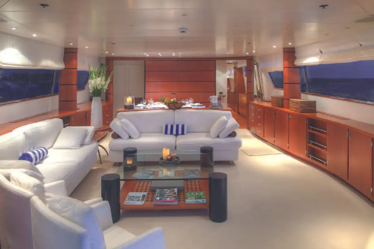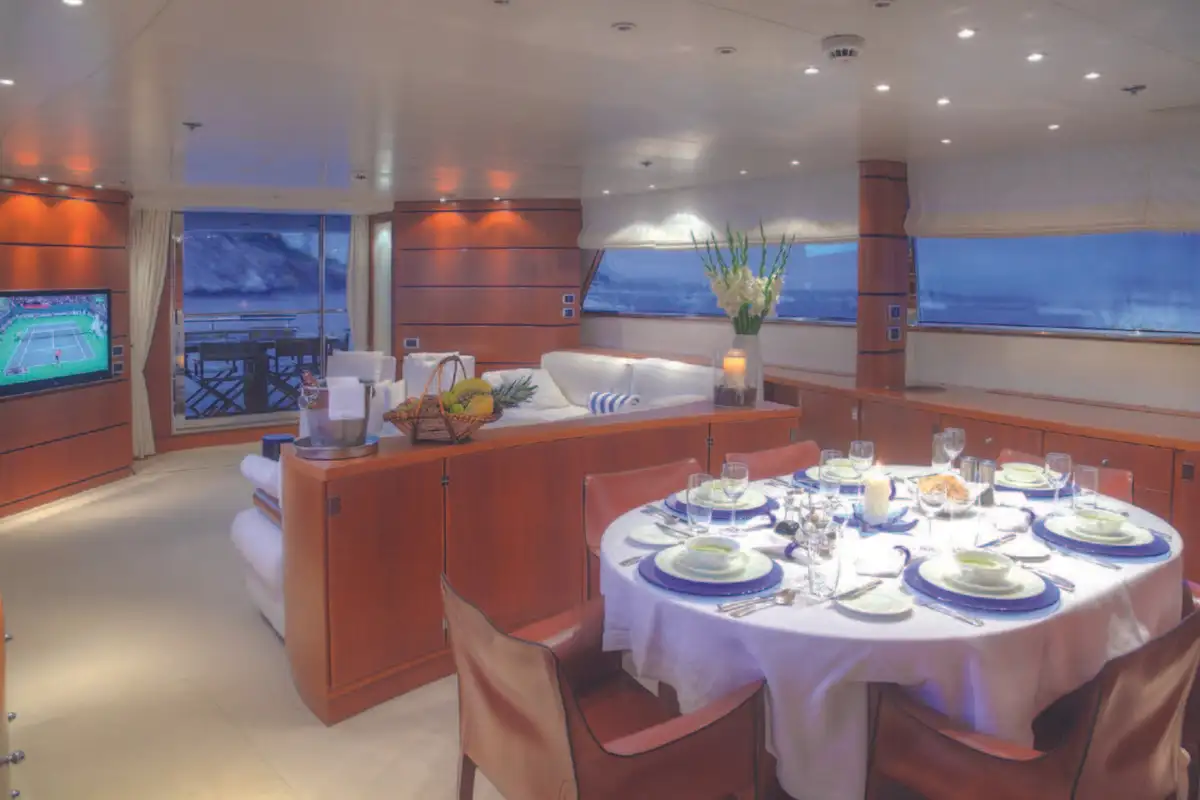 Boasting plenty of living space both inside and out, her guests will definitely find a suitable place for their every mood. She offers accommodation for up to 10 guests in 4 double cabins, all with en-suite facilities. The Owners’ stateroom boasts a full-width bathroom with separate Jacuzzi and shower.