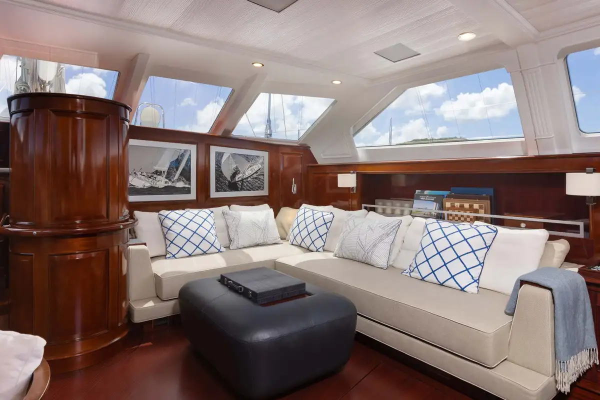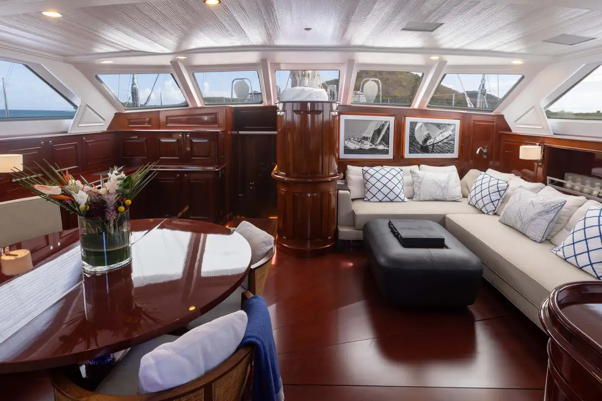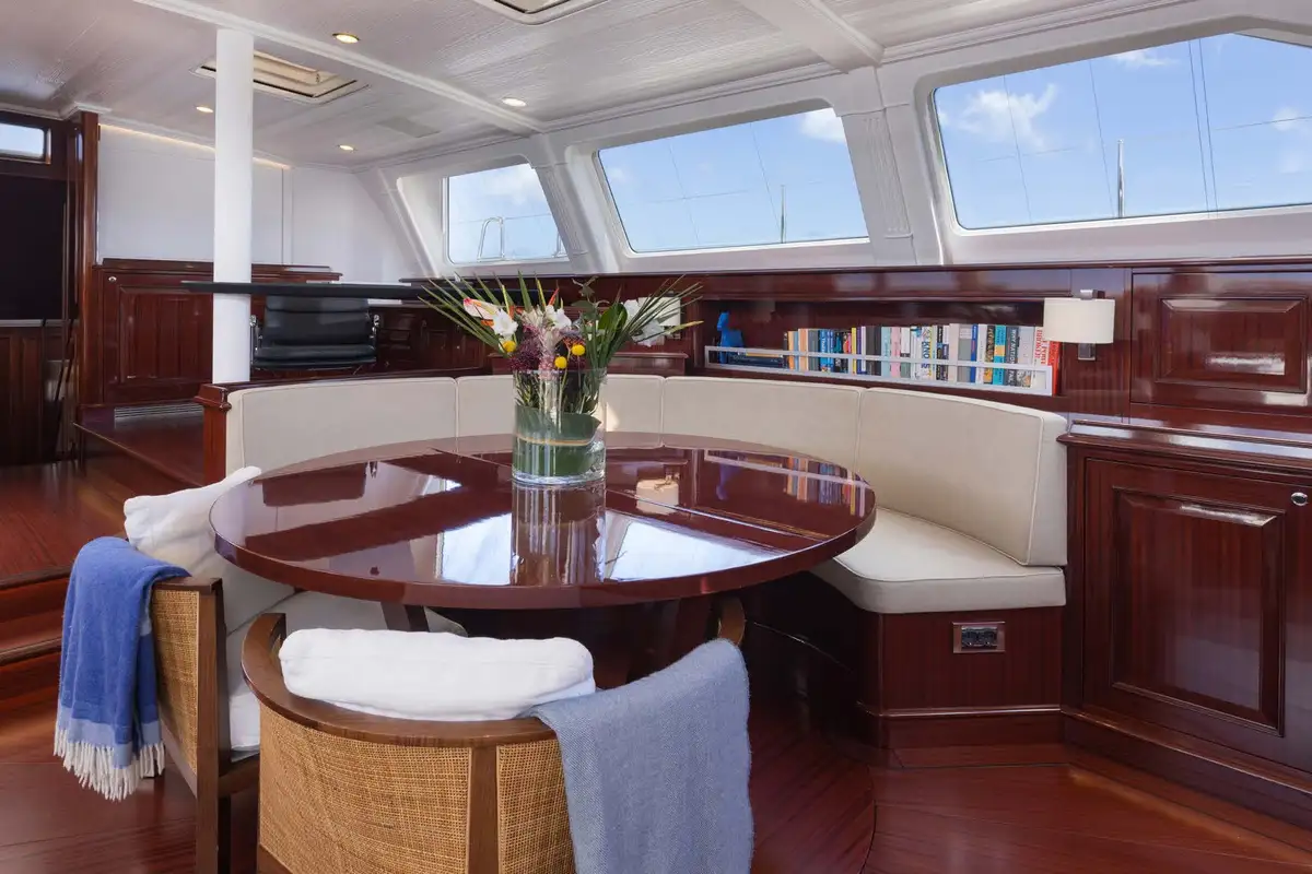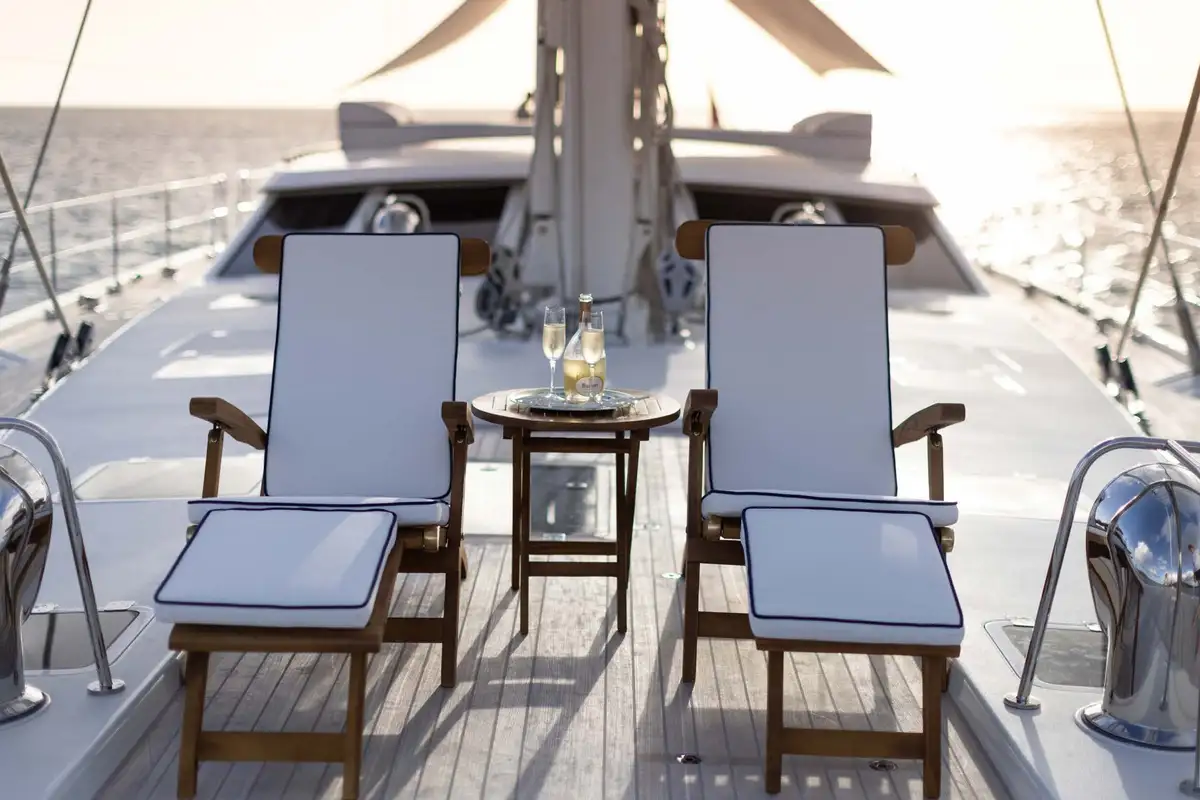 Under sail, the guest cockpit is a family-friendly place, free from any sail-control lines, where you can feel the exhilarating power sheltered from the elements by the pilot house. Head up to the bow to experience the sheer magic of dolphins weaving in and out of the bow wave or stretch out on the aft deck, where you can tan listening to the roar of the yacht’s wake.