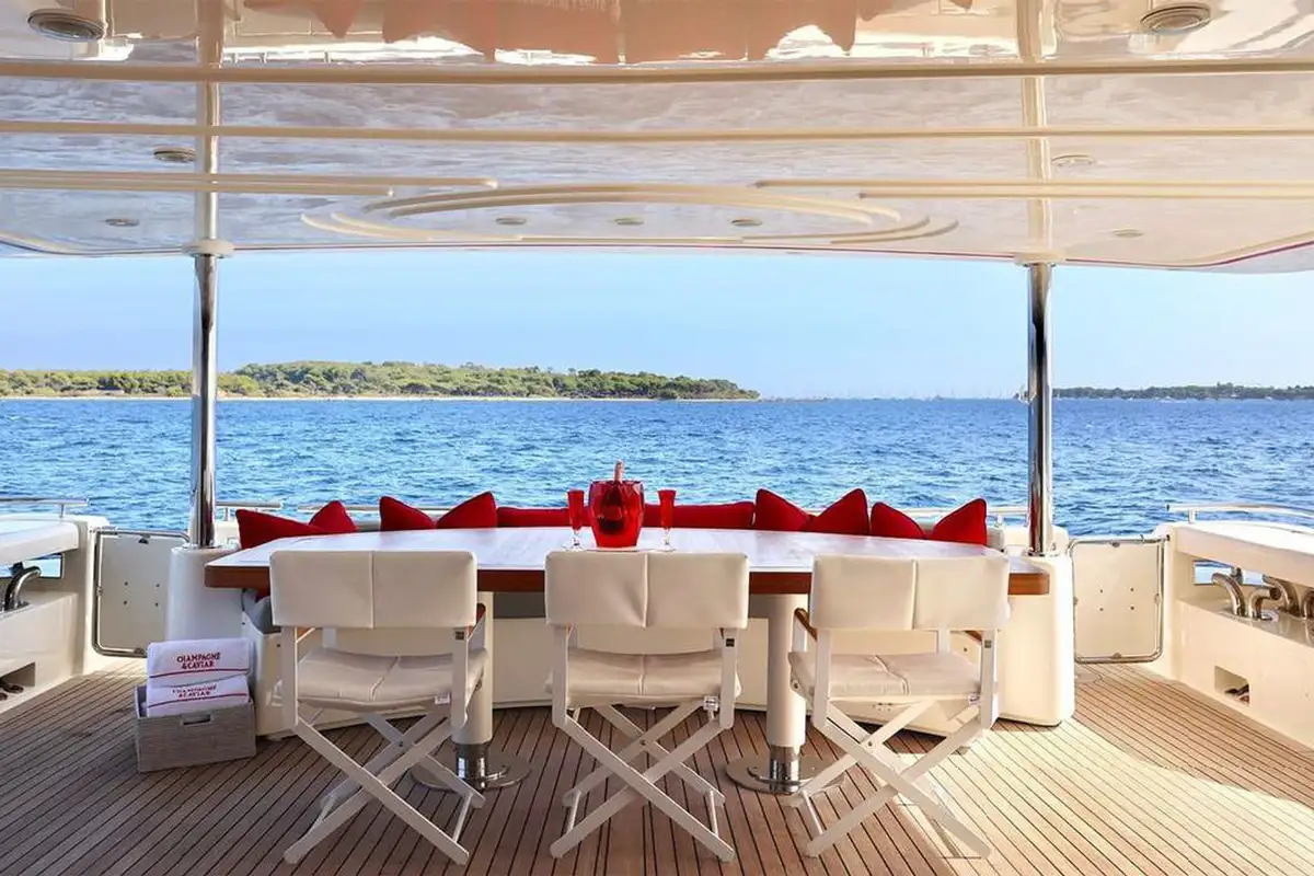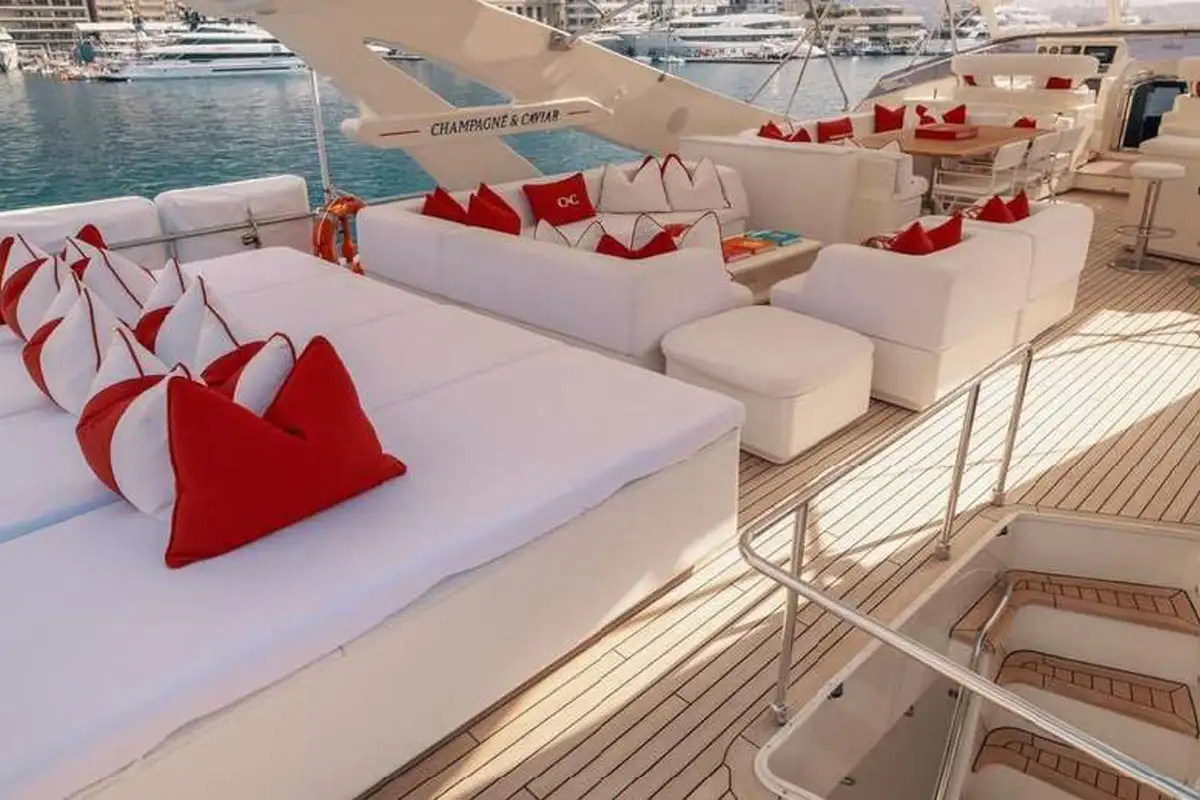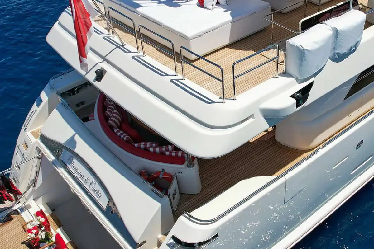 Built in 2004 by Custom Line and last refitted in 2024, CHAMPAGNE AND CAVIAR welcomes up to 12 guests aboard, with a professional crew of six on hand to anticipate every need. With generous outdoor spaces, stylish interiors, and excellent social areas, she’s the perfect charter choice for families or groups of friends.