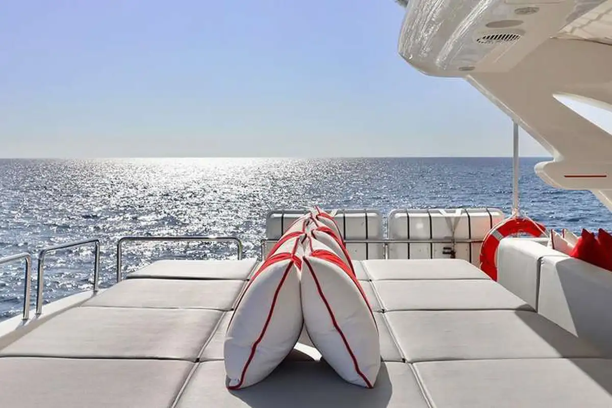 But, for the best views, head forward on the main deck where sun pads offer the perfect spot for unwind with a cocktail in hand and drinking in the views.
