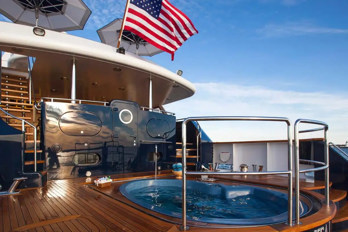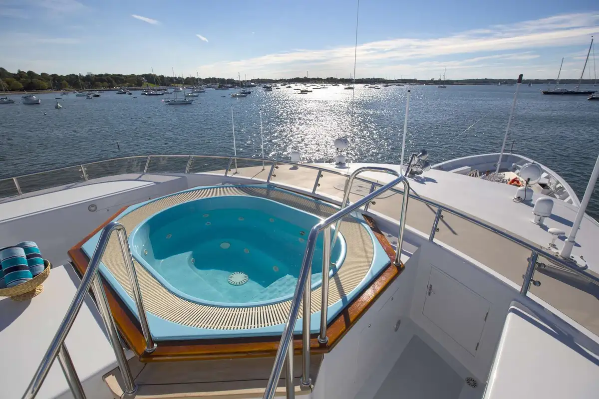The crew also have the 180hp jetskis tethered astern, and anyone interested in a quieter pursuit has the option of a paddleboard or kayak. Sun worshippers will head to the large open top deck to catch the rays and dip in the jacuzzi – up here you will truly get away from it all. The second jacuzzi is just inches from the waterline on the swim platform – from there you can watch the antics in the water in real style.