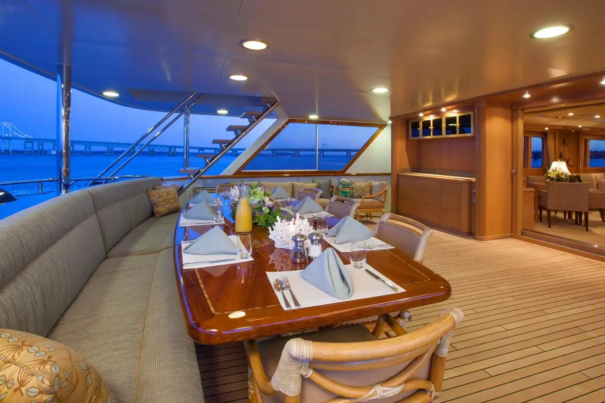 Talk around the table turns to the day ahead. Some are keen to take a fishing trip and others have their eye on the watertoys. The yacht has two tenders - the 9.45m (32ft) chase tender with inboard engine is set up for fishing, and the crew use their local knowledge to find the best spots. The other 7.32m (24ft) Nautica is ready to take out the waterskis and wakeboard or entertain you with the towable banana.