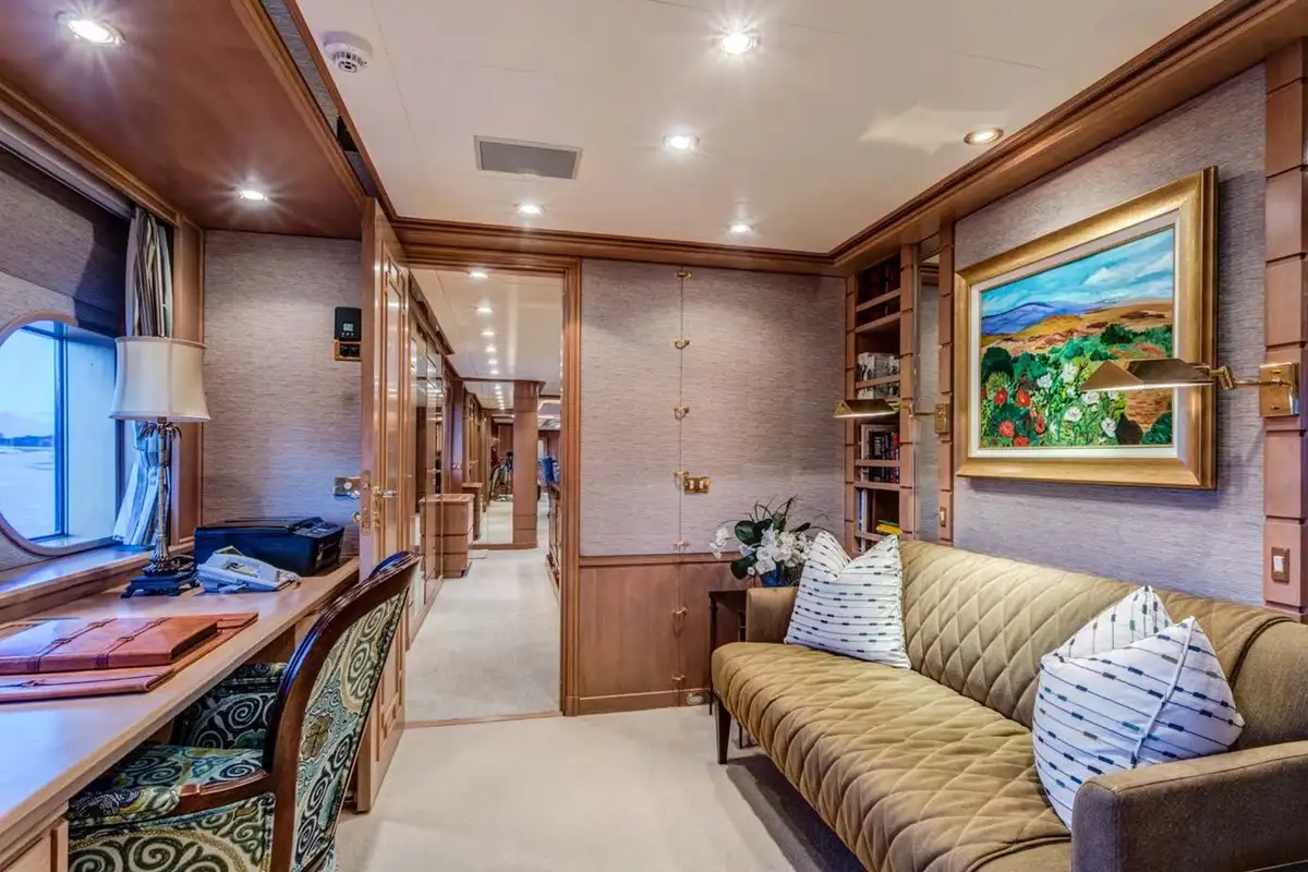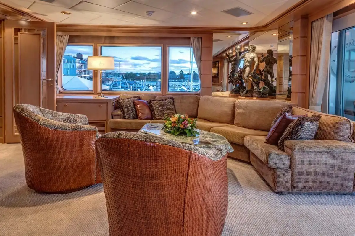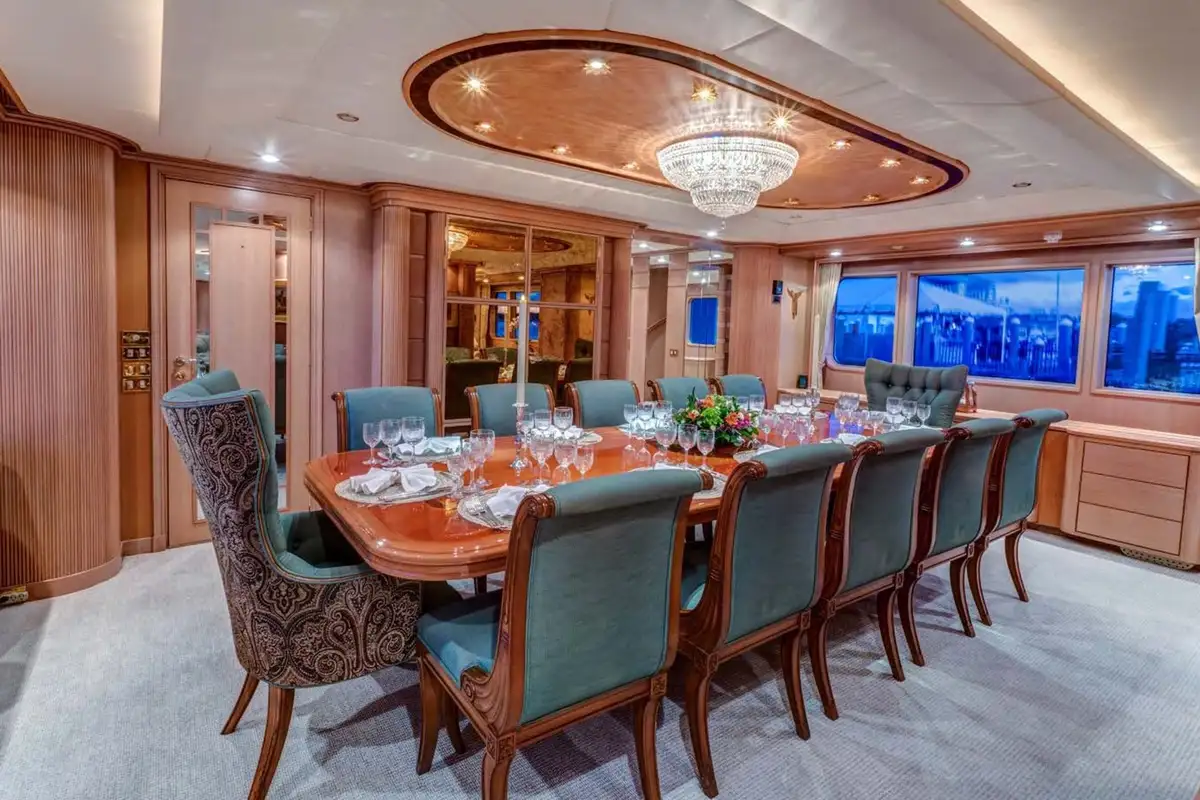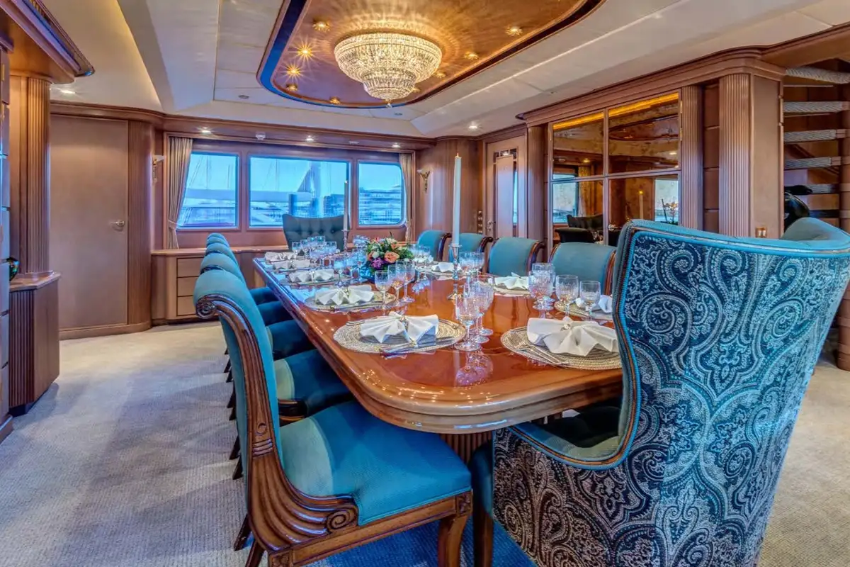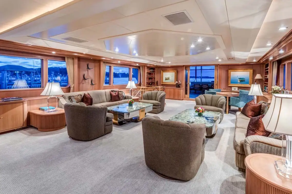 With living space for 12 guests, CHANTAL MA VIE gives you a full beam master suite made up of the cabin, his and her en suites with a full sized bath and a separate office. Situated forward on the main deck, this gives you peace and privacy. Your guests are accommodated in four double guest suites and a VIP suite on the lower deck, all generously sized.